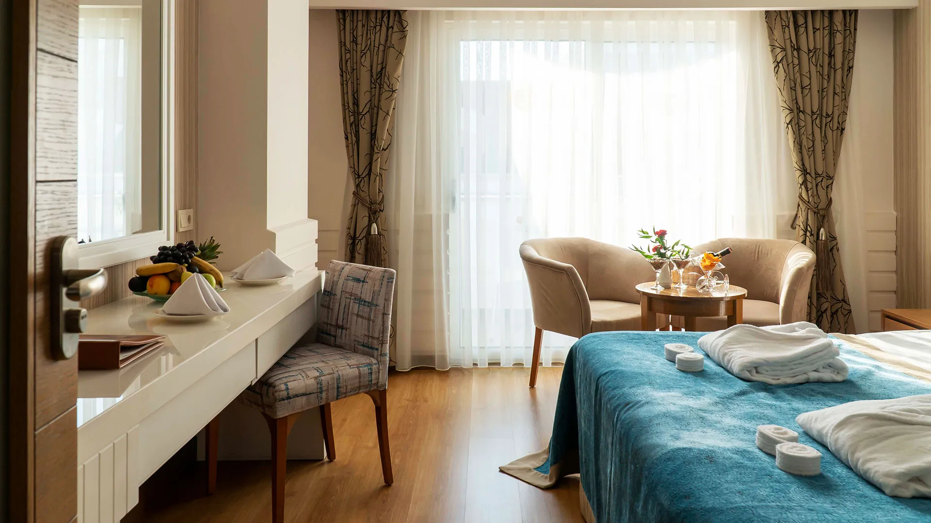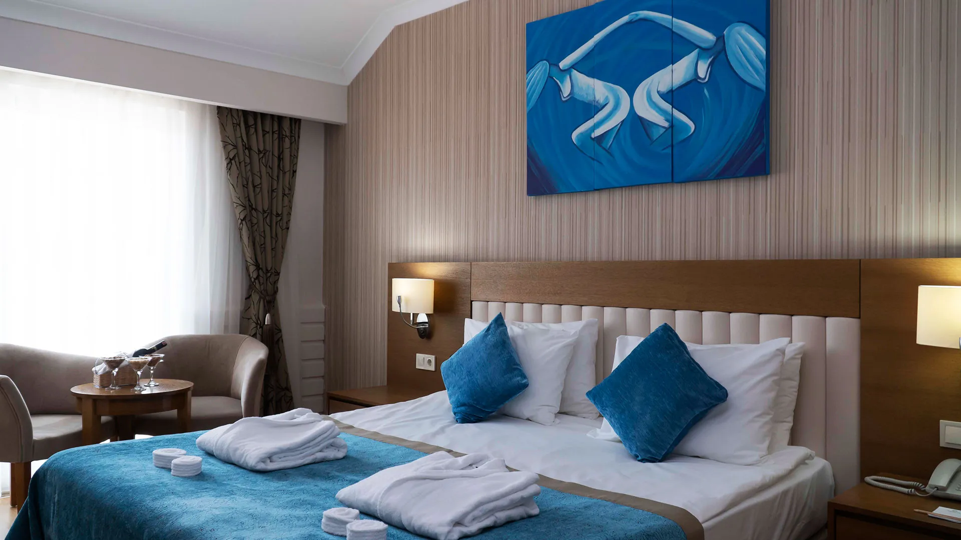 Просторните и модерно обзаведени стаи в Adalya Ocean Deluxe са мирни оазиси, където можете да се отдадете на пълноценен отдих. Някои от тях предлагат пленителен изглед към морето, който допълнително увеличава удоволствието от престоя.