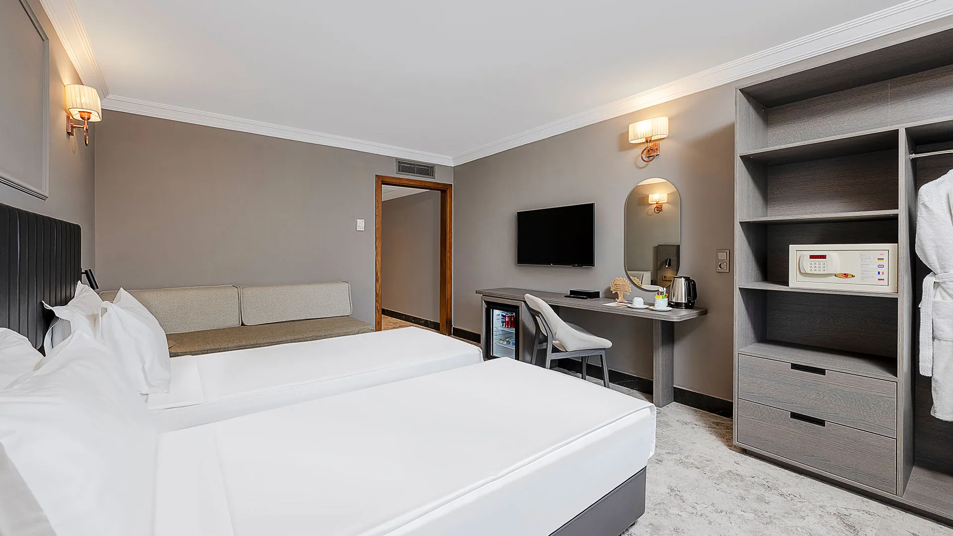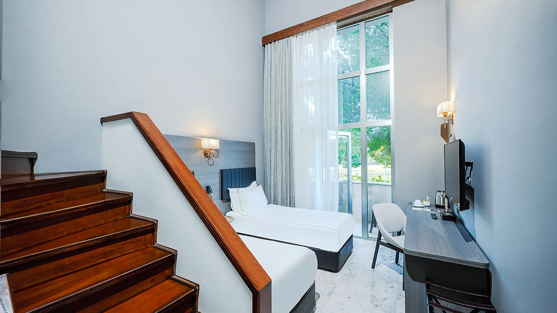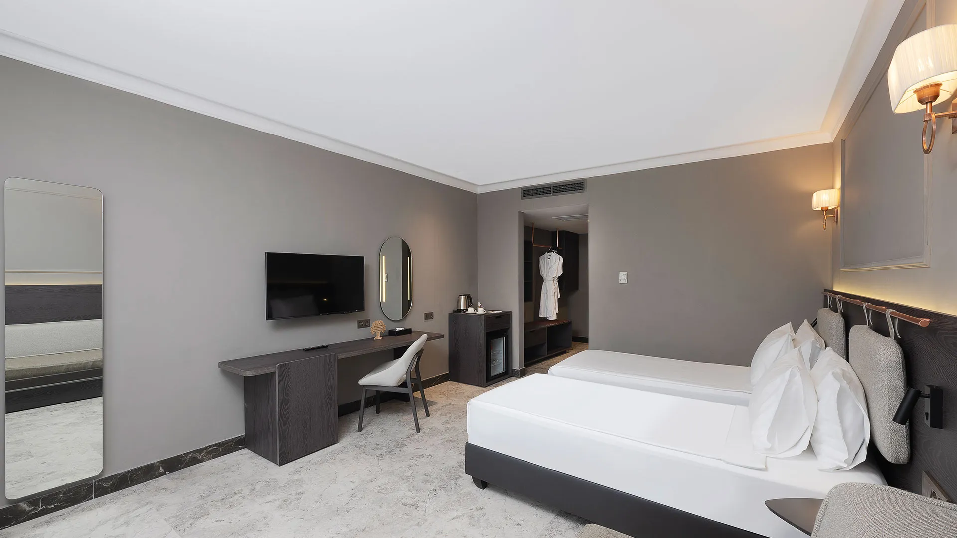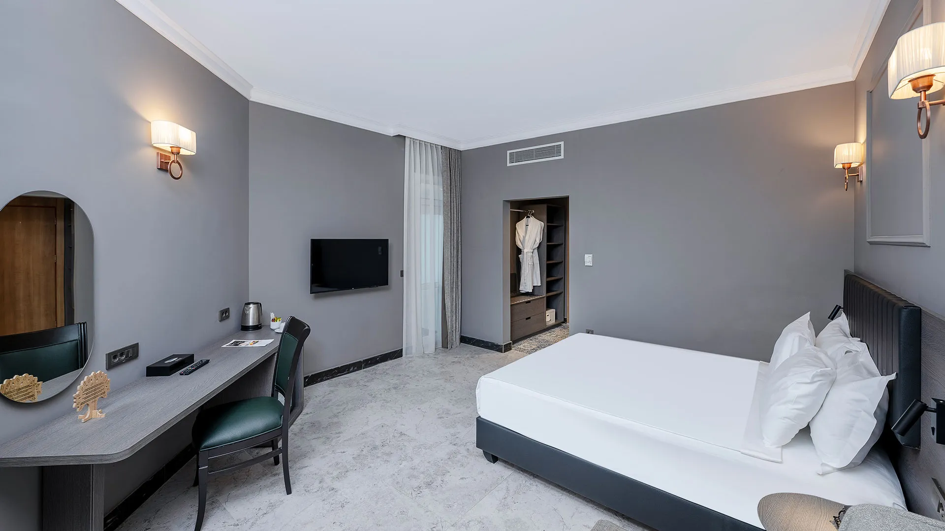 Стайните помещения в Adora Resort са обзаведени с внимание към детайлите и предлагат изключителен комфорт за гостите си. Всяка стая е оборудвана с климатик, минибар, LCD телевизор със сателитни канали, безплатен WiFi интернет, сейф, балкон или тераса с изглед към морето или градината и просторна баня с душ или вана, сешоар и козметични принадлежности.