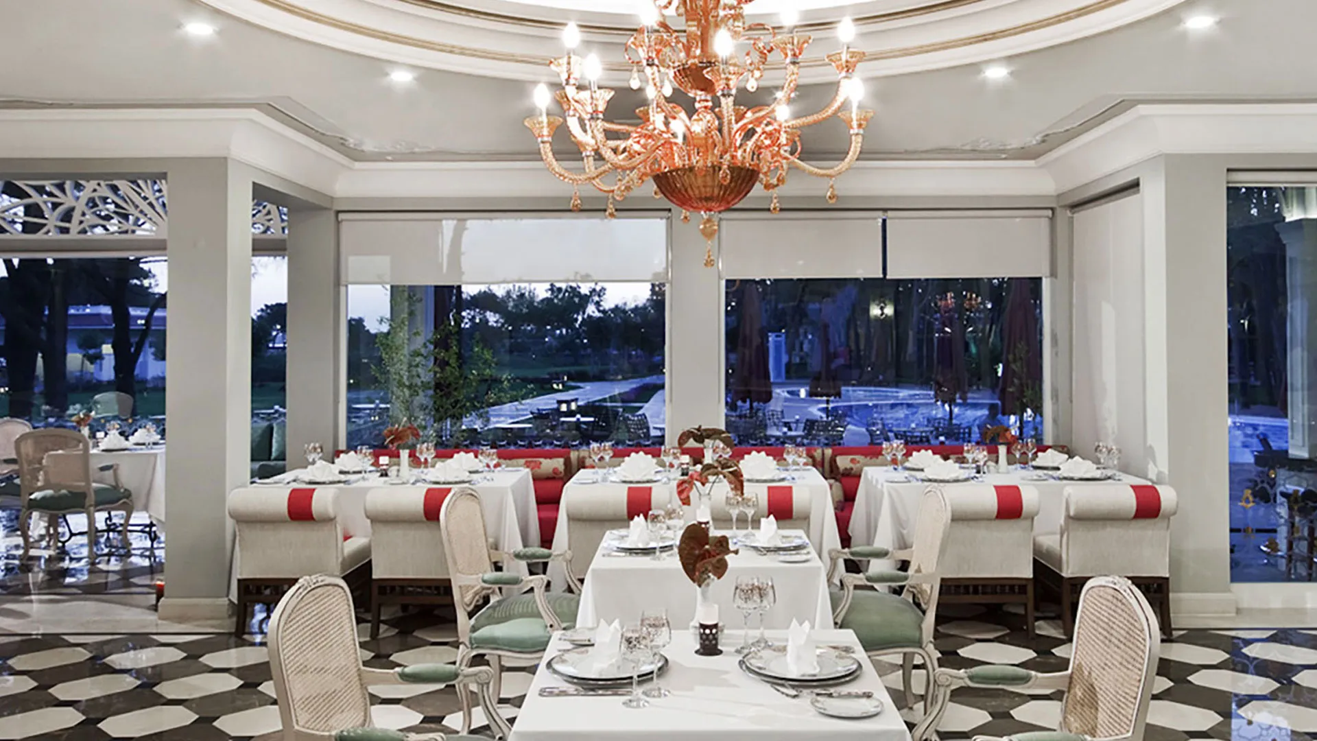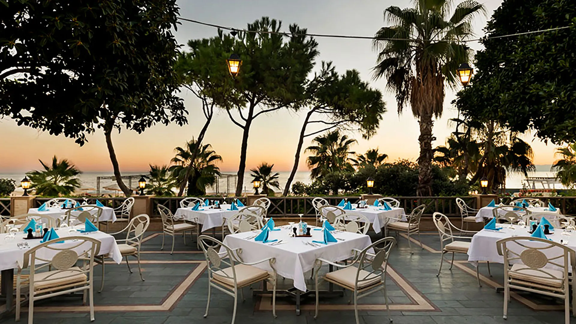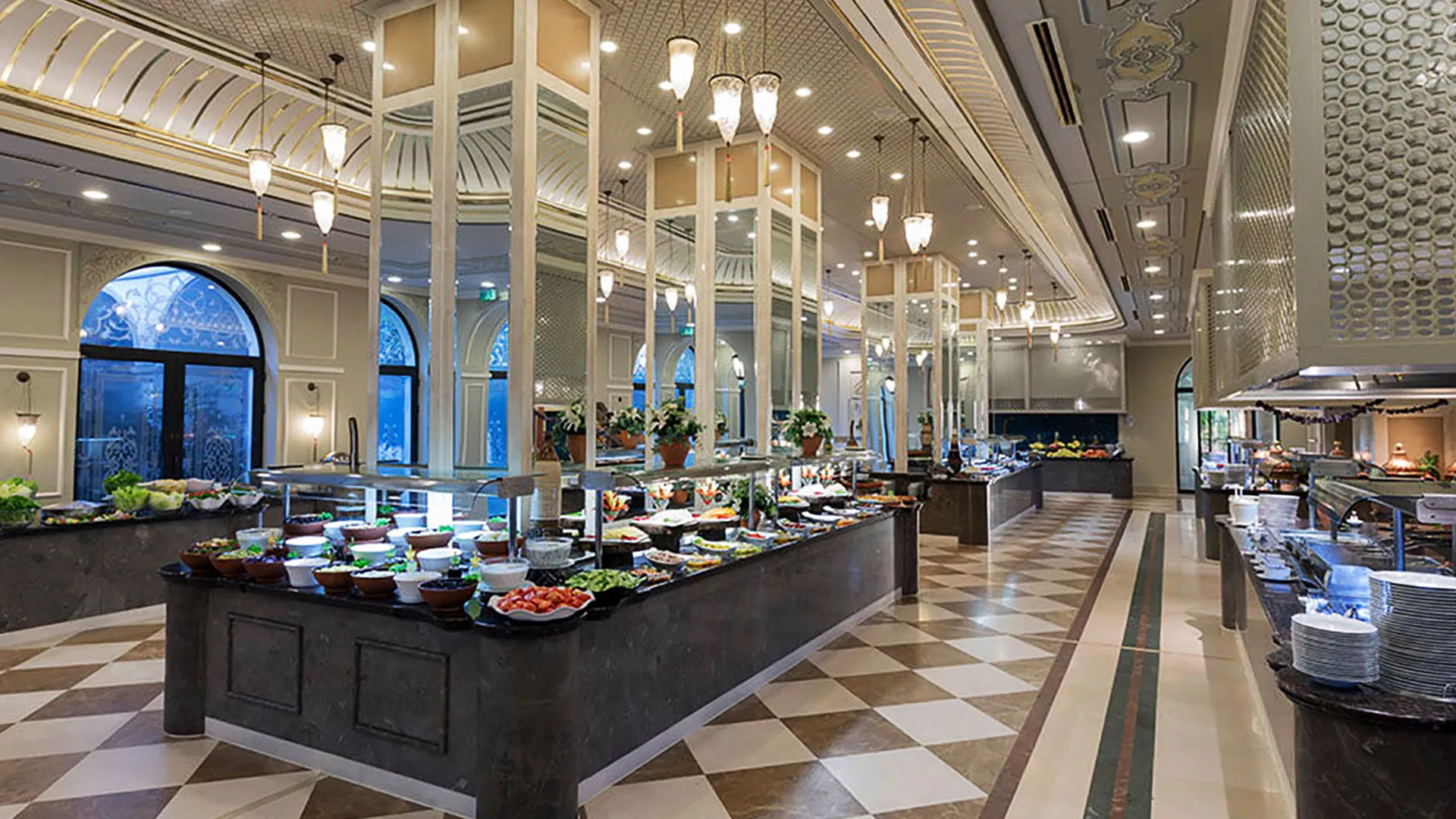 Ресторантите на комплекса сервират пресни морски дарове и турски специалитети. В комплекса има 5 бара и кафене, където се предлагат традиционни сладкиши.
