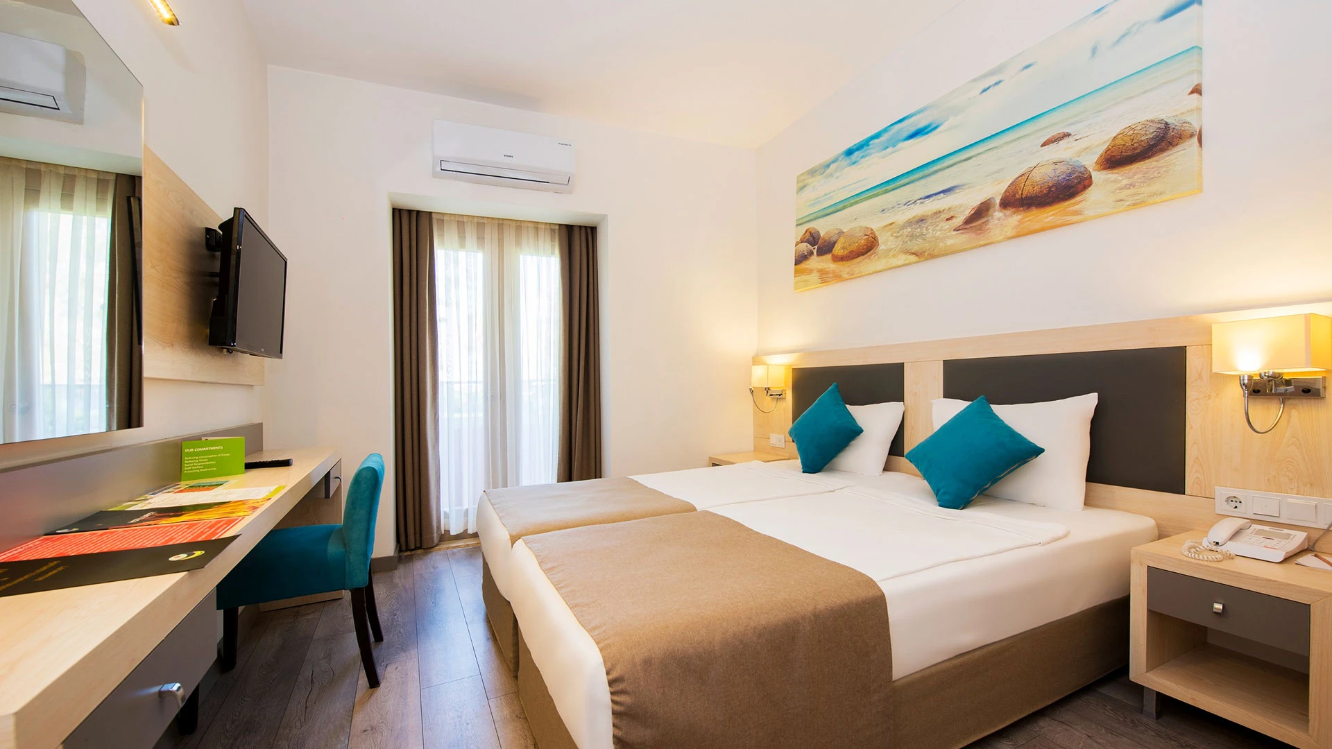 Разположен в непосредствена близост до красиви плажове, Aqi Pegasos Club предлага стилно обзаведени стаи, оборудвани с всички съвременни удобства, необходими за уютен и комфортен престой. Всяка стая разполага с климатик, безплатен Wi-Fi, сателитна телевизия и мини-бар, а от балконите се откриват живописни изгледи към морето или хотелските градини.