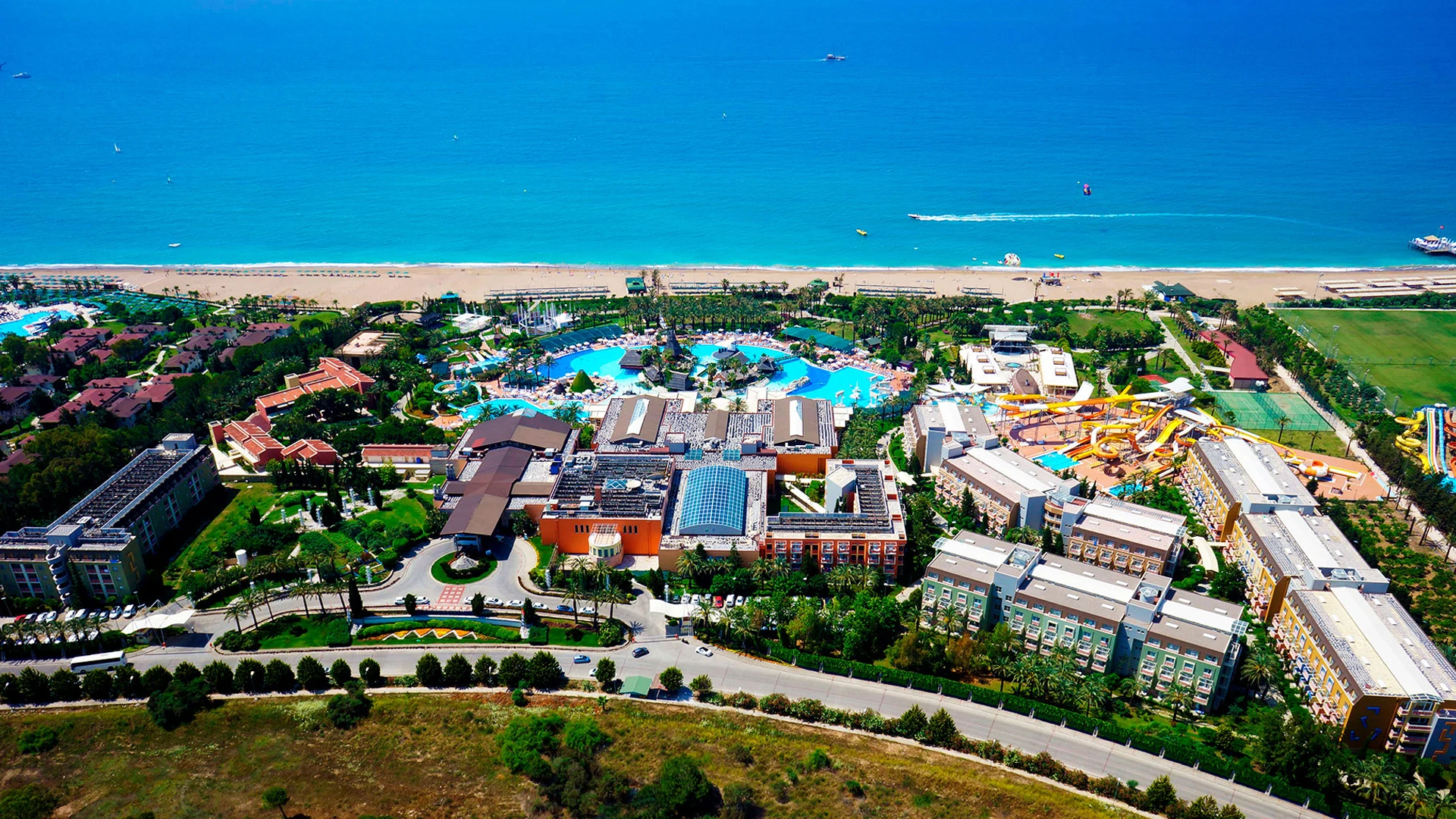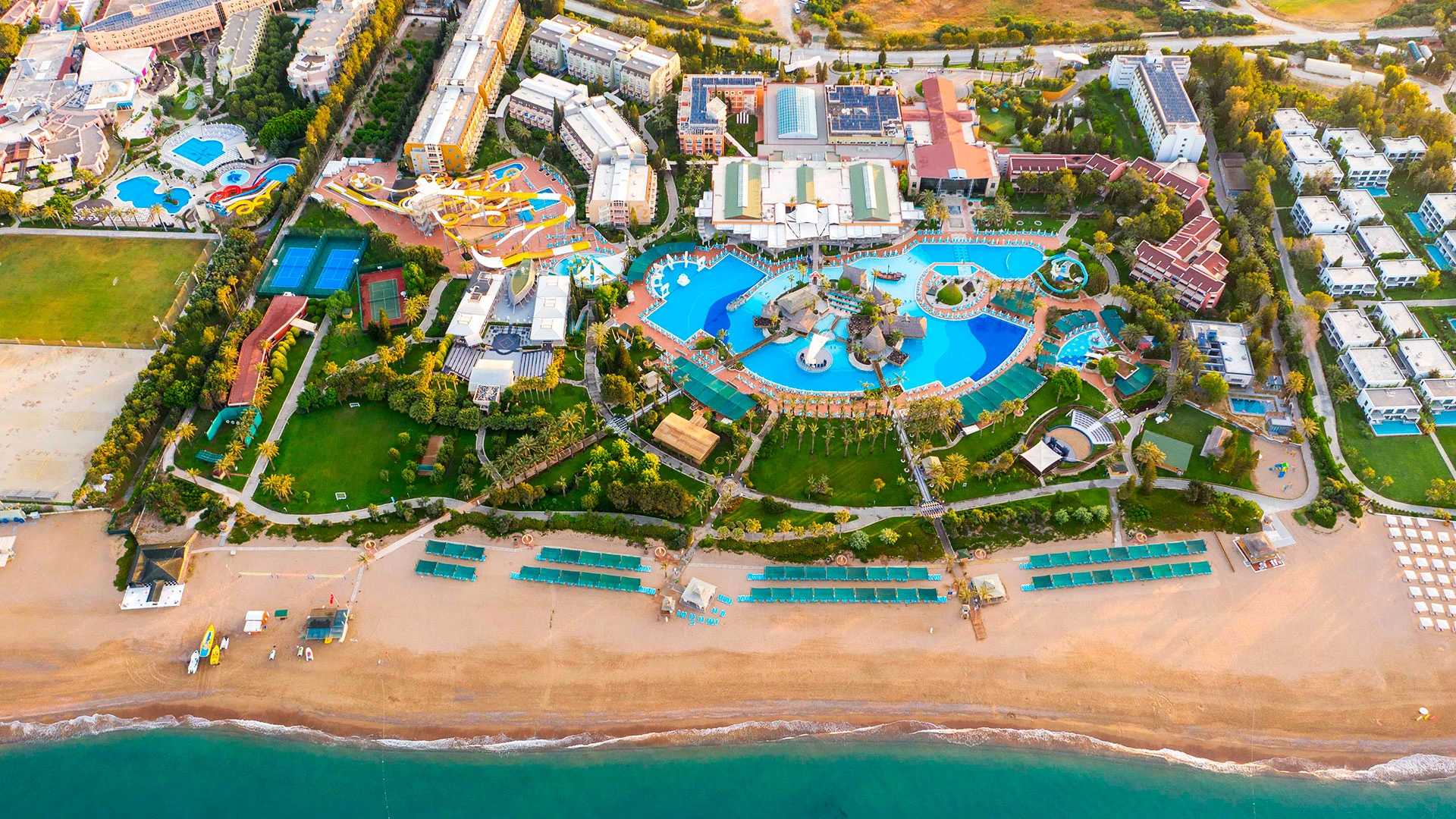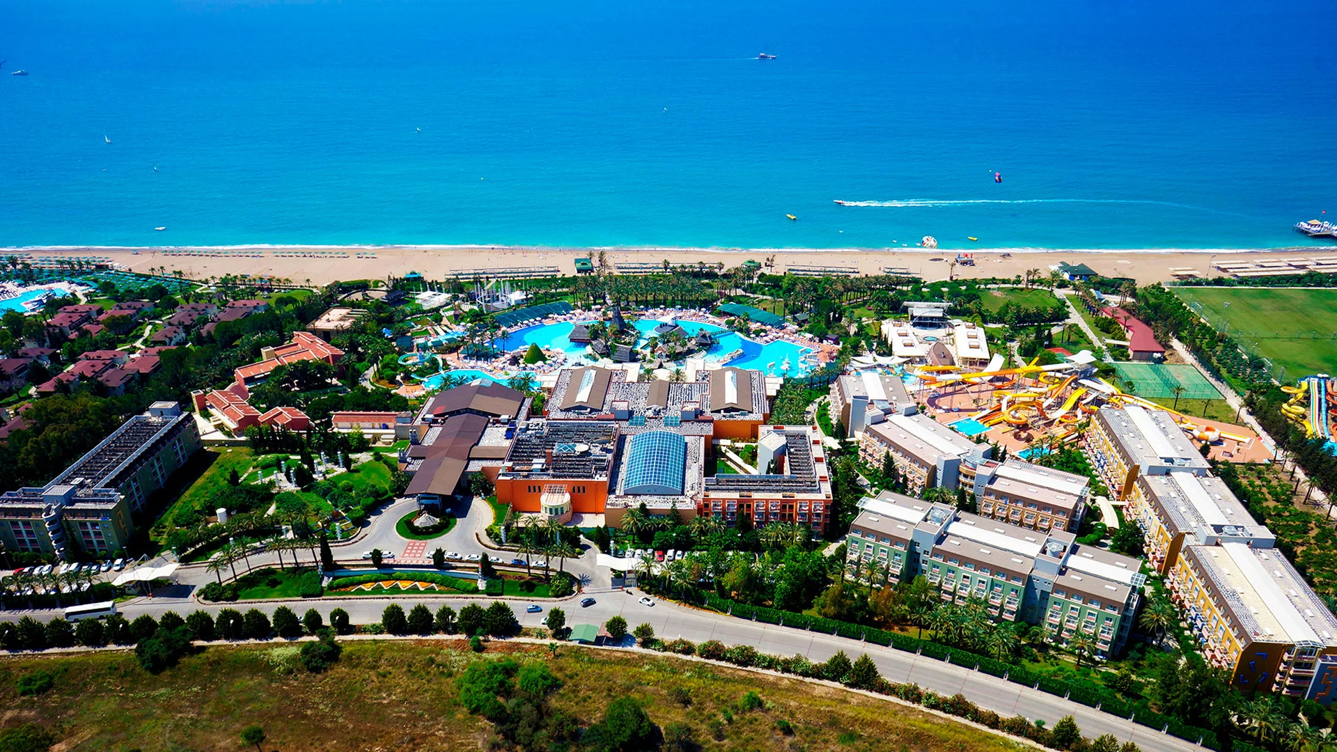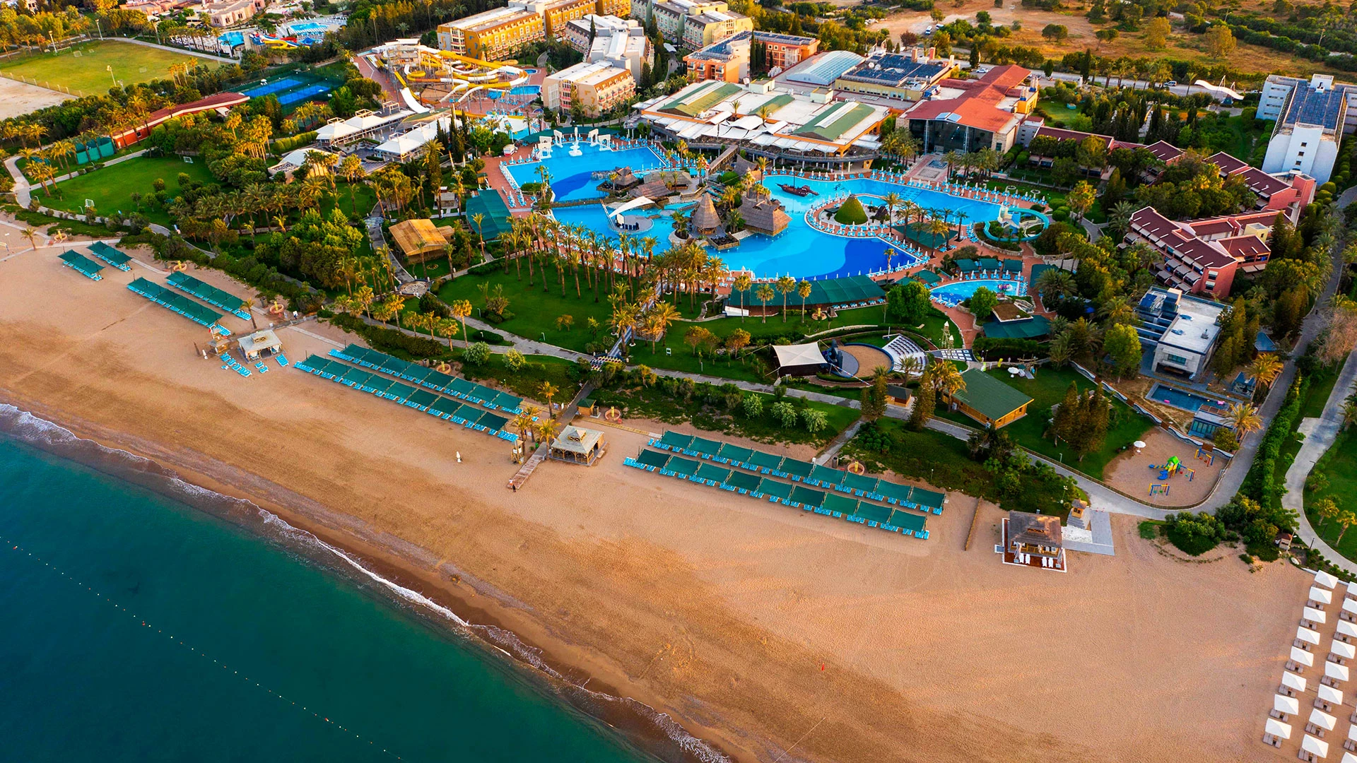 Голям комплекс с впечатляващ аквапарк, плаж и разнообразни активности – идеален за семейства.