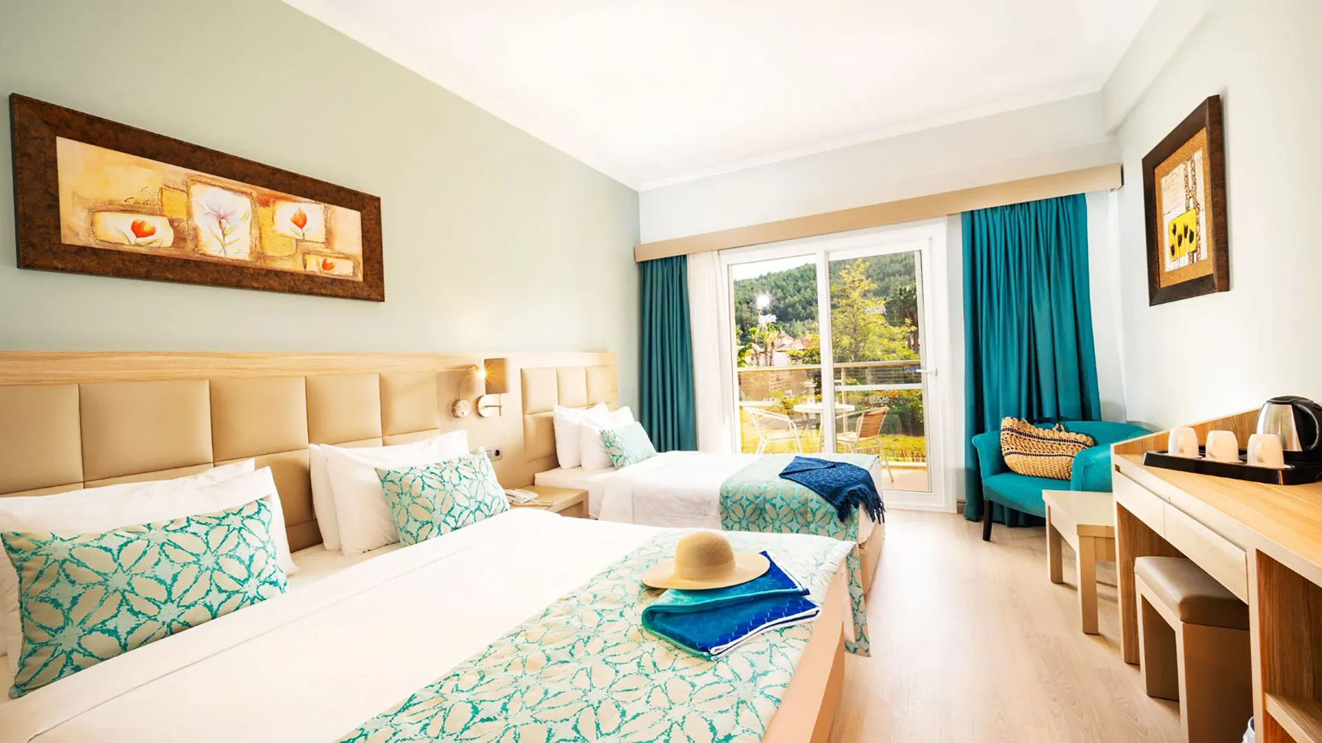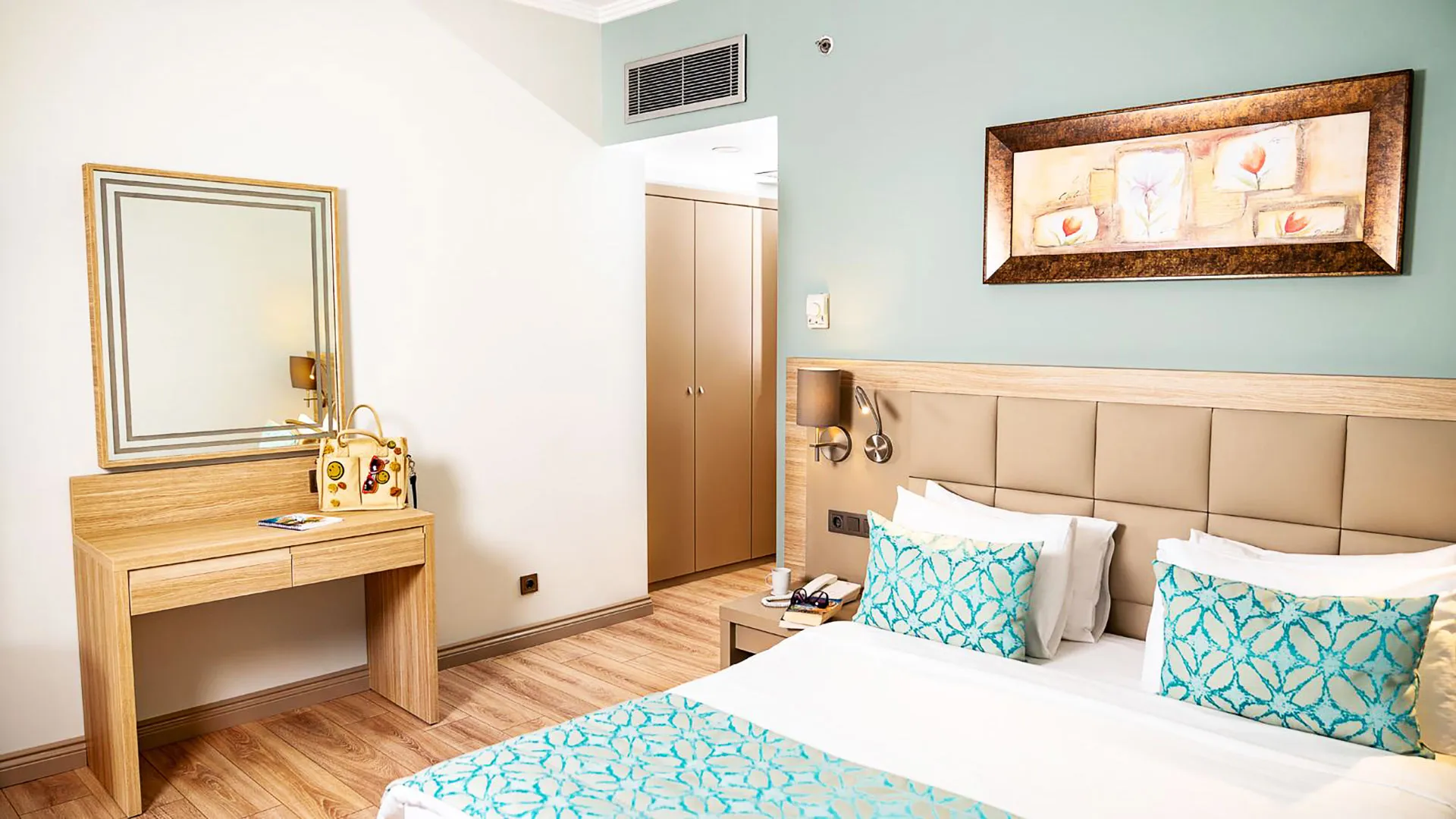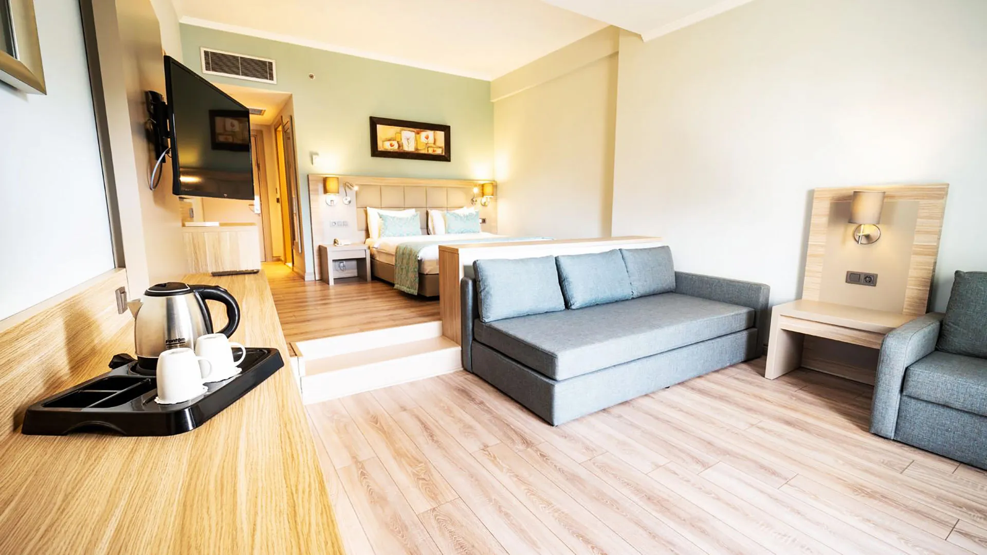 Всяка стая в Aqua Fantasy Aquapark Hotel & Spa е светла, просторна и модерно обзаведена, като разполага с уютен балкон, където може да се насладите на моментите на спокойствие и красота на околната природа. За вашето удобство, всяка стая е оборудвана с удобства за приготвяне на чай и кафе.