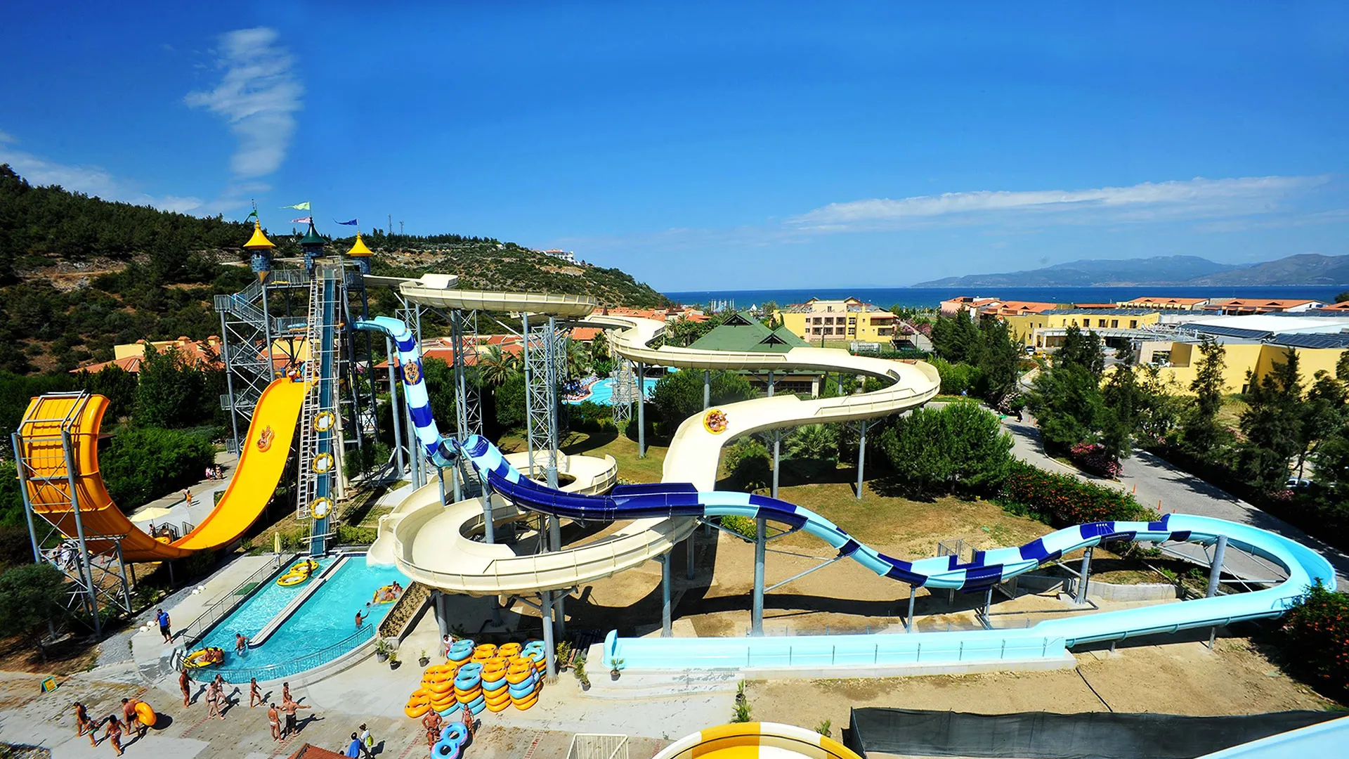 Величественият аквапарк, един от най-големите в Турция, е истинска оазисна зона, където се сливат адреналинът и насладата. Тук ще откриете множество вълнуващи пързалки, сред които и бързи пързалки, които ви завличат към невероятни адреналинови преживявания. За по-спокоен ден на басейна, басейнът с вълни ще ви предложи вълнуващи приключения във водата. За най-малките гости има специално оборудвана детска зона с пиратски кораб и вълнуващи водни игри.