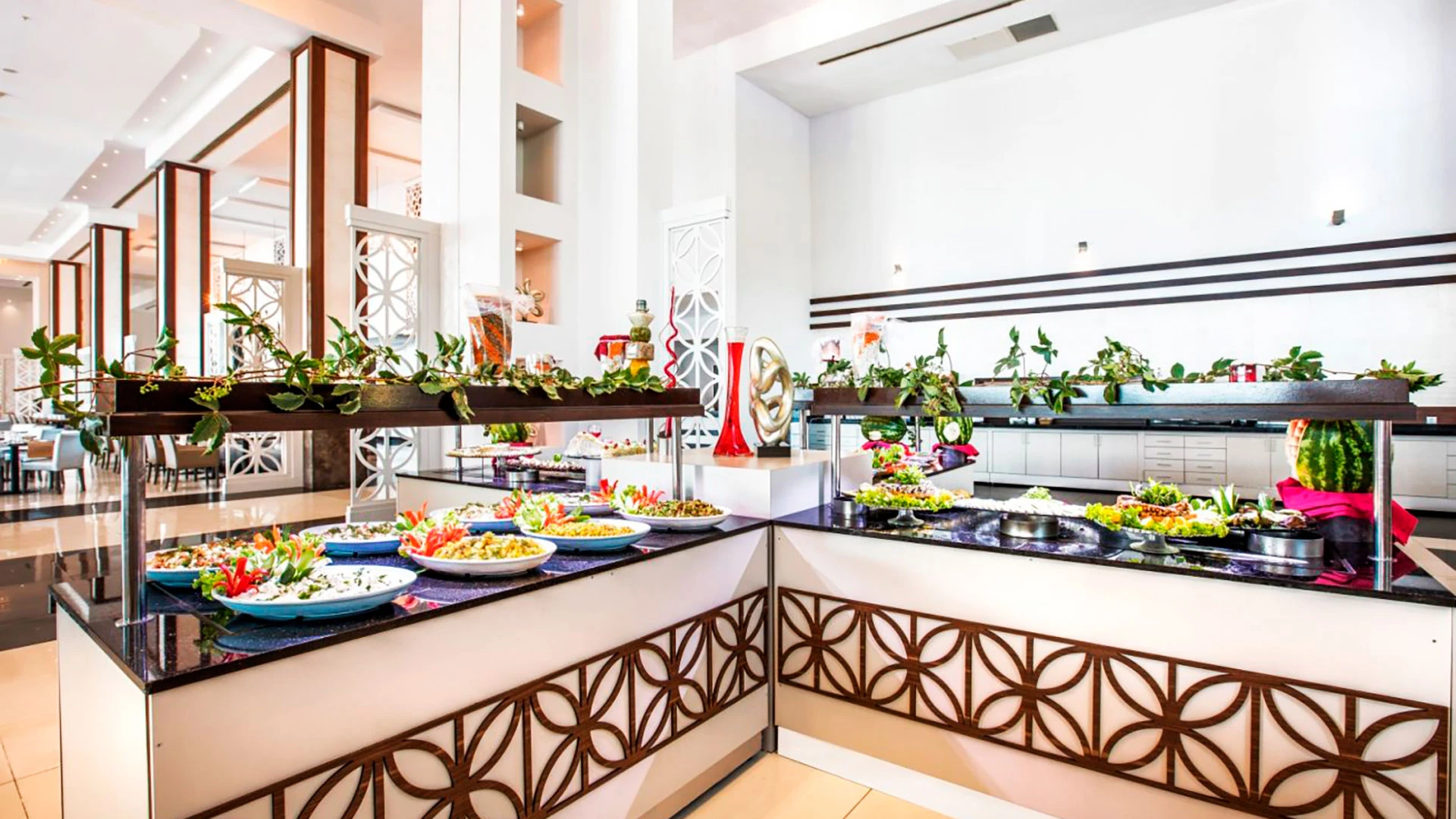 Храненето в Aria Claros Beach & Spa Resort е на принципа „всичко включено“, като гостите могат да се насладят на ястия от международната кухня в няколко ресторанта и барове. Освен това, курортът предлага разнообразие от развлекателни програми, включително вечерни шоу програми и дискотека за тези, които търсят нощни забавления.