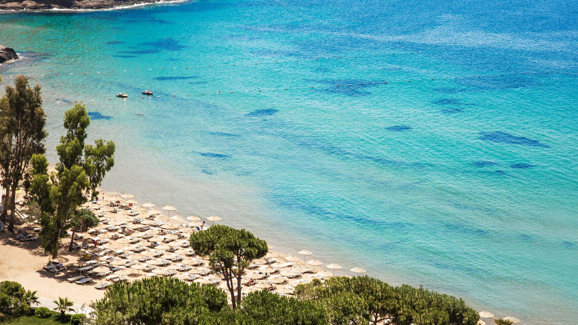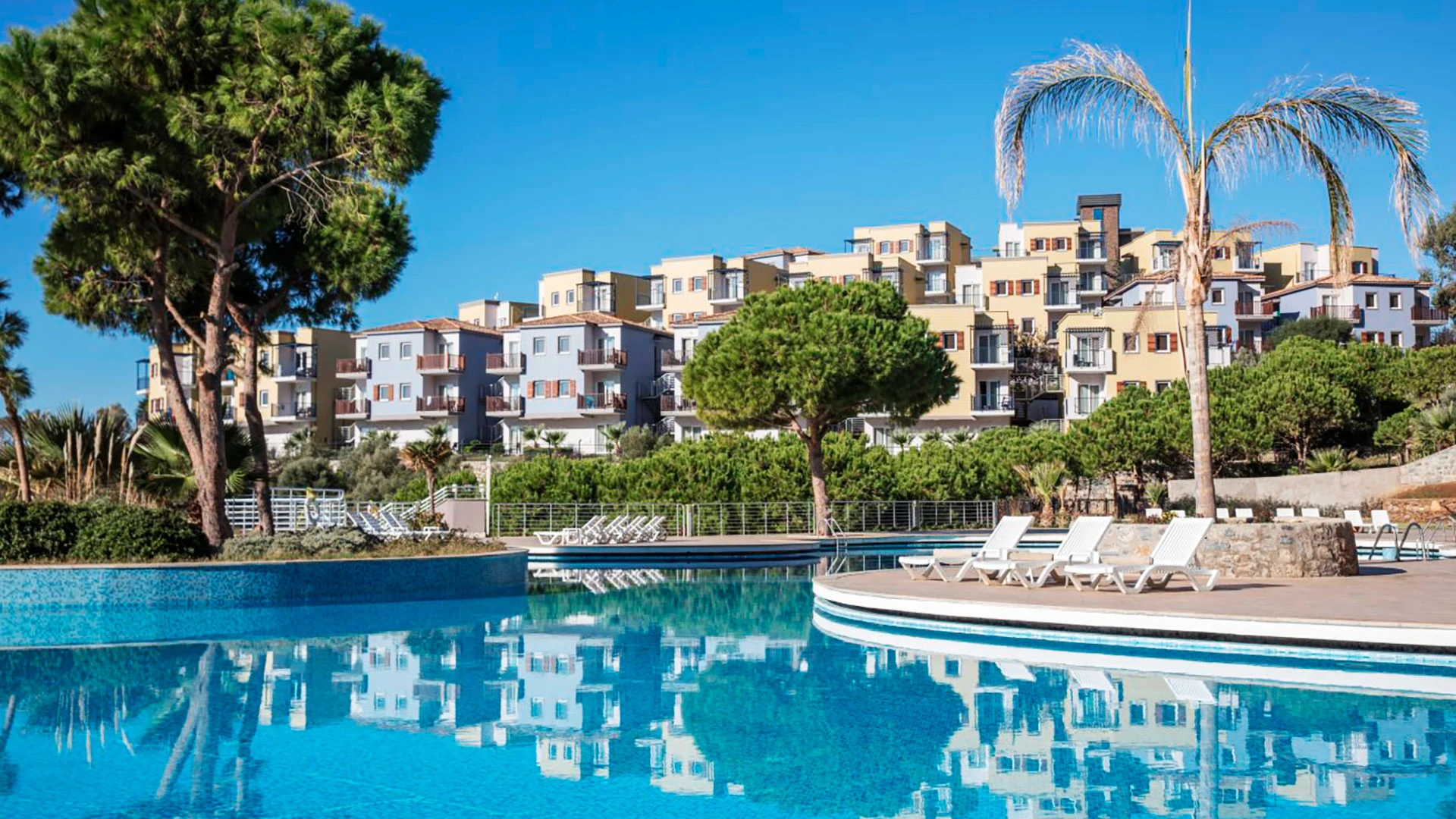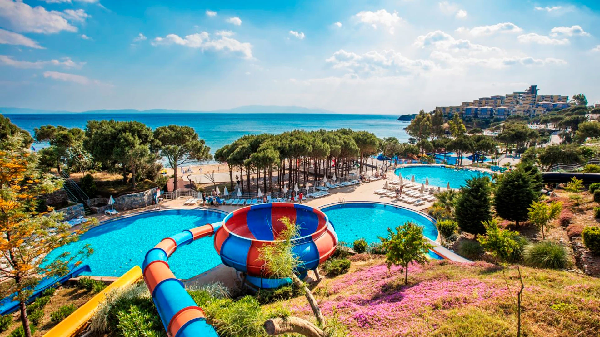 Хотелът разполага с частен плаж, оборудван с шезлонги и чадъри, както и аквапарк с осем водни пързалки, който е идеален за семейства с деца. Курортът предлага няколко вида басейни, включително два открити и един детски басейн, както и закрит отопляем басейн. За активните гости има голямо разнообразие от спортни активности, като тенис на корт, мини голф, кану, боулинг и водни спортове.