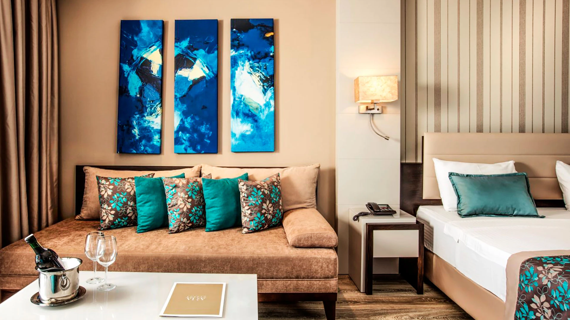Настаняването включва различни типове стаи, като делукс стаи с морски или наземен изглед, семейни стаи и вили с частен басейн. Всяка стая е обзаведена с климатик, сателитна телевизия, минибар и балкон. Гостите могат да се насладят на първокласни услуги като румсървис, безплатен Wi-Fi и ежедневна поддръжка на стаите.