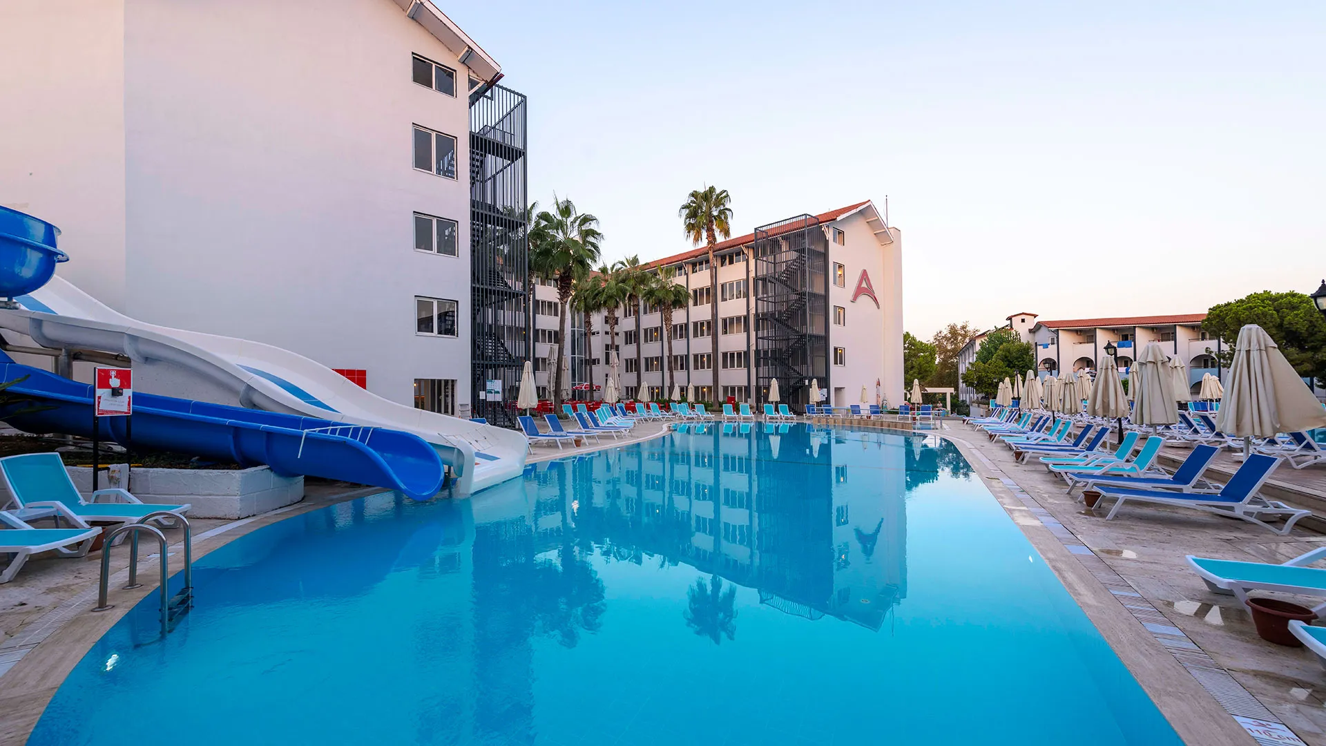 Хотелът разполага с множество удобства за активен отдих и развлечения. Гостите могат да се отпуснат в откритите басейни или да се забавляват на водните пързалки. За тези, които предпочитат да поддържат форма, на разположение е фитнес зала. СПА центърът на хотела предлага традиционна турска баня и сауна, където гостите могат да се отпуснат и възстановят. На разположение е също и тенис корт за любителите на спорта.