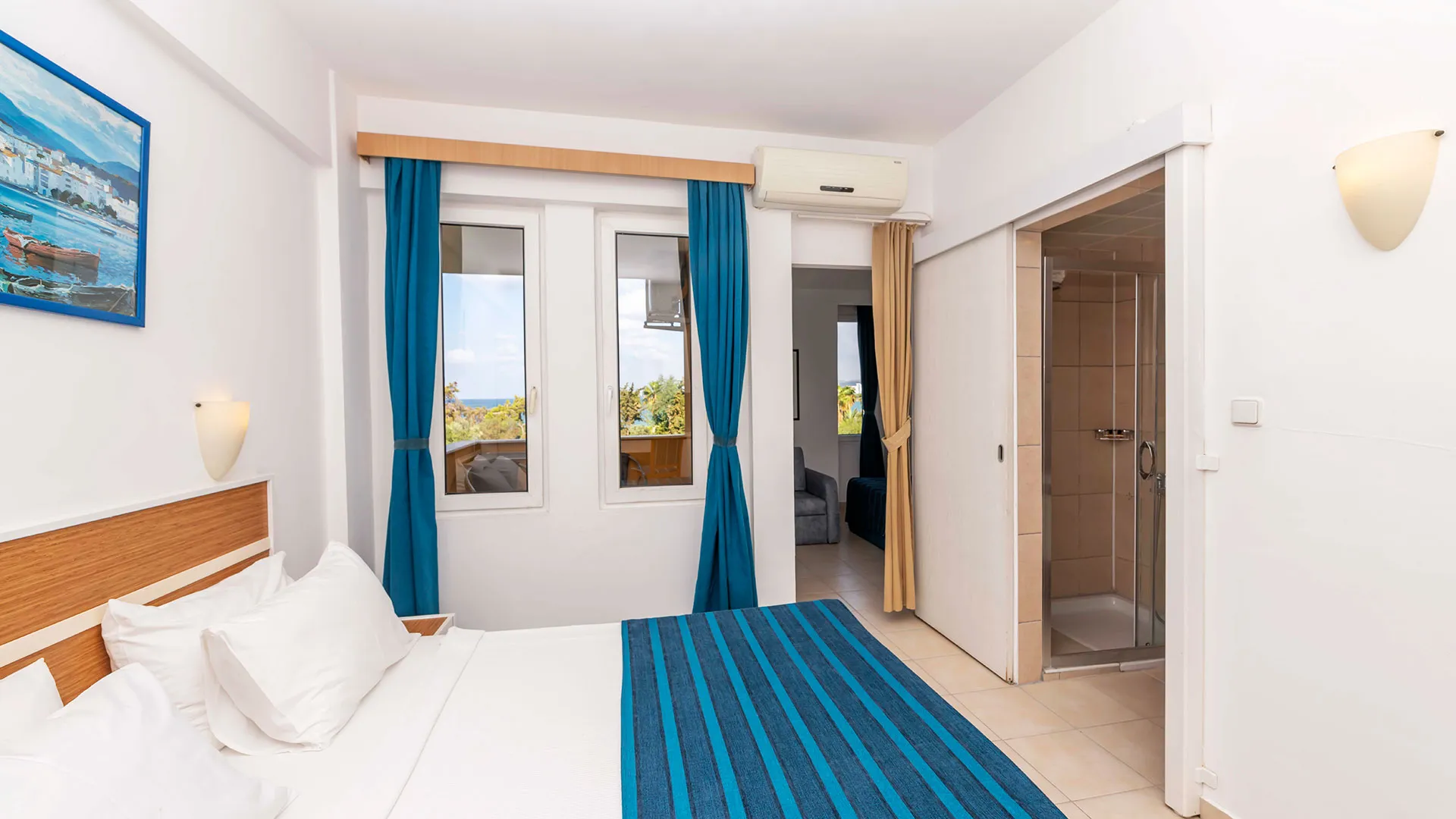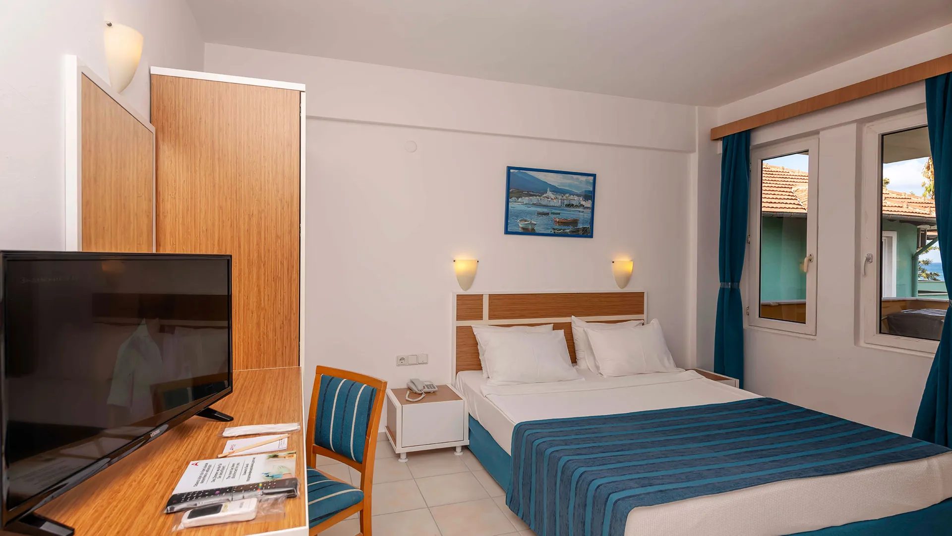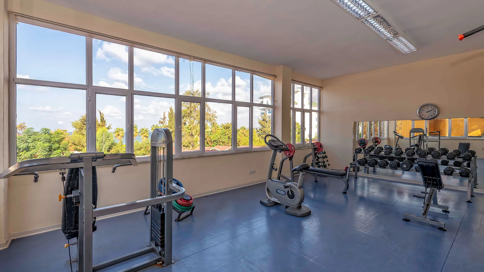 Оборудване в стаите: климатик, телевизор с музикални/детски канали, минибар (напълнен при пристигане с безалкохолни напитки), сейф (платен според някои източници), телефон, балкон, баня с душ или вана.