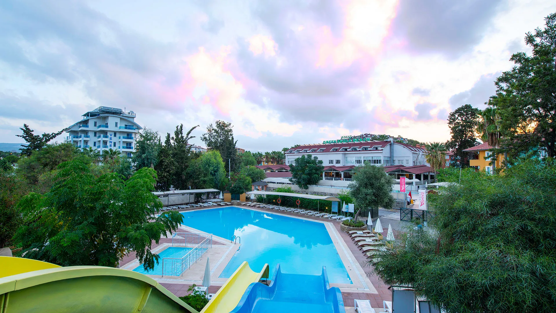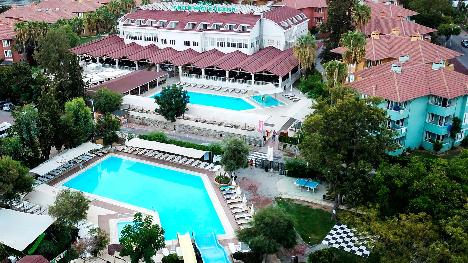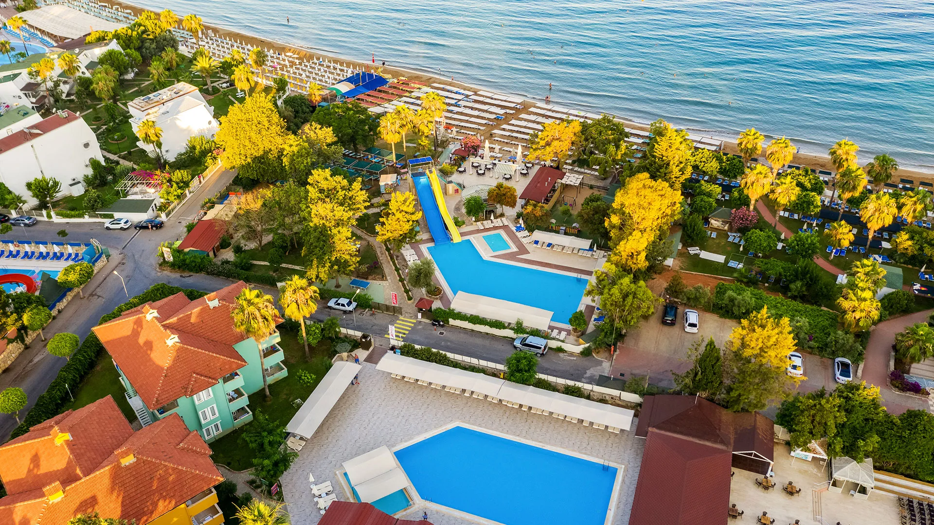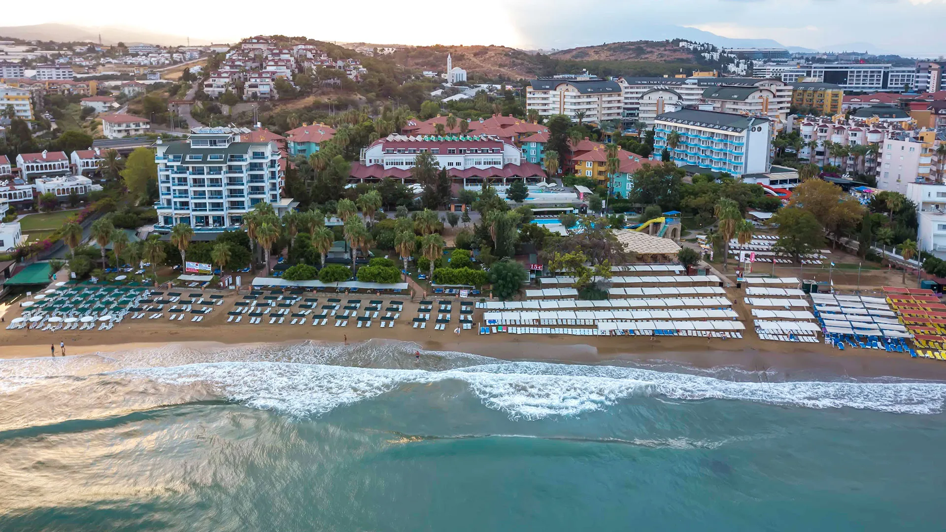 Местоположение: хотелът се намира в селището Türkler, южна Турция, на 22 км от град Алания и около 90–100 км от летище Анталия.