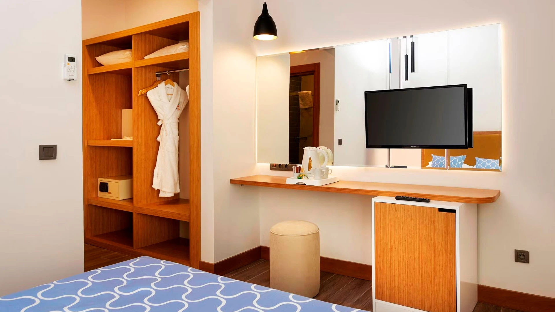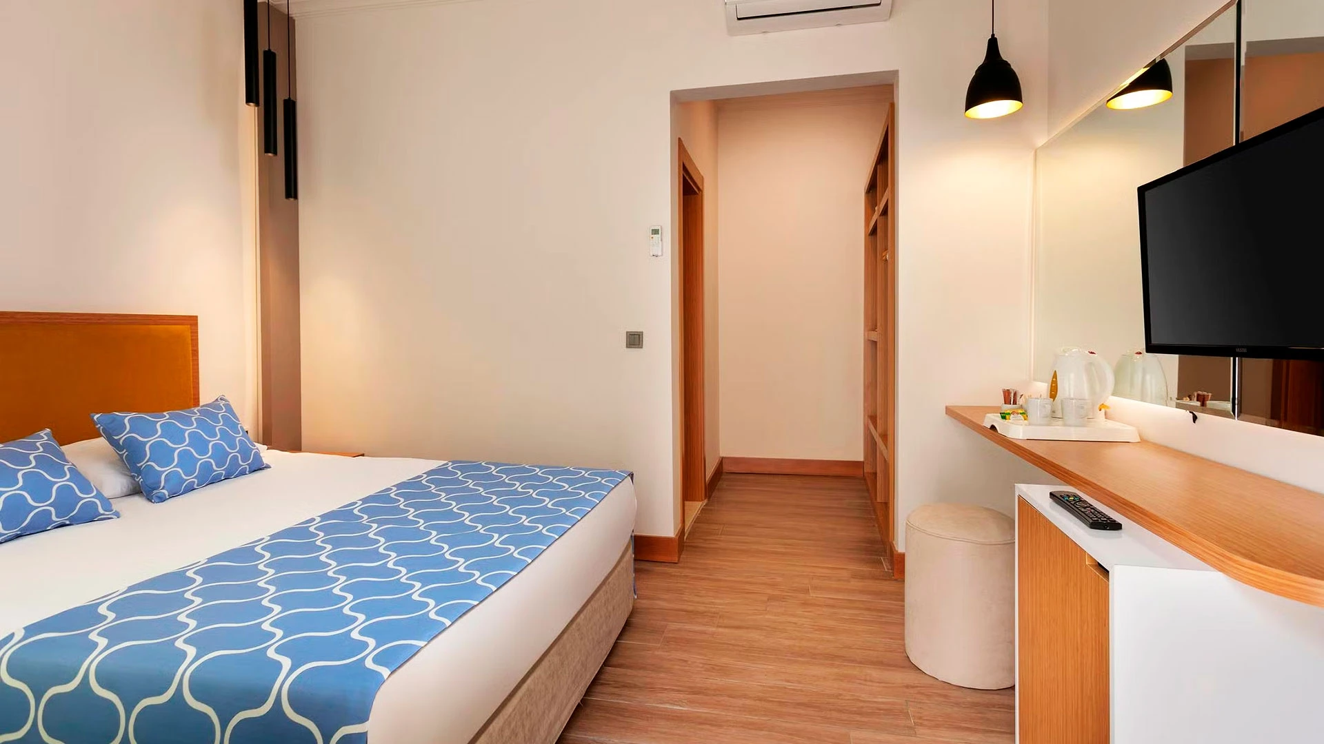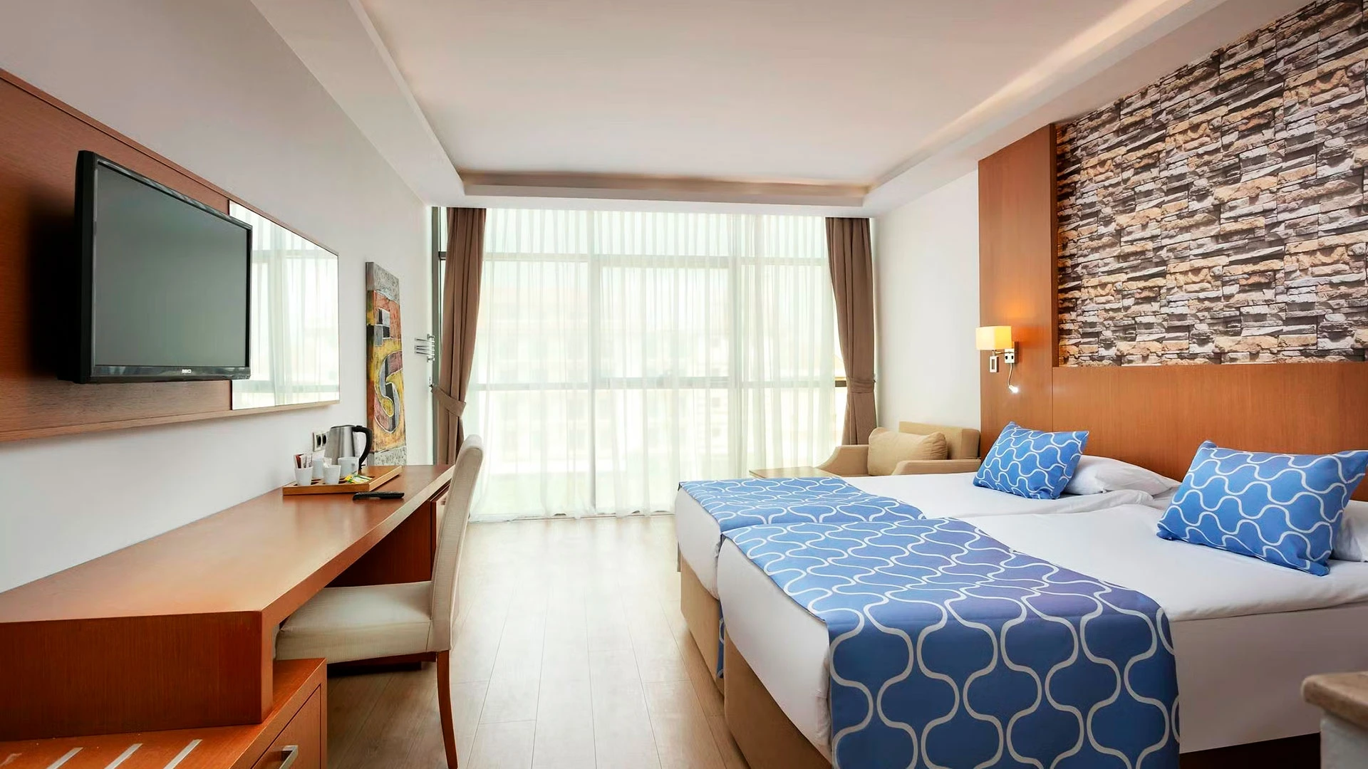 Стаите са модерно обзаведени и оборудвани с климатик, телевизор, минибар и балкон (в част от помещенията), осигурявайки уют и комфорт по време на престоя . Хотелът разполага с около 230 стаи и предлага различни типове настаняване, подходящи както за двойки, така и за семейства .