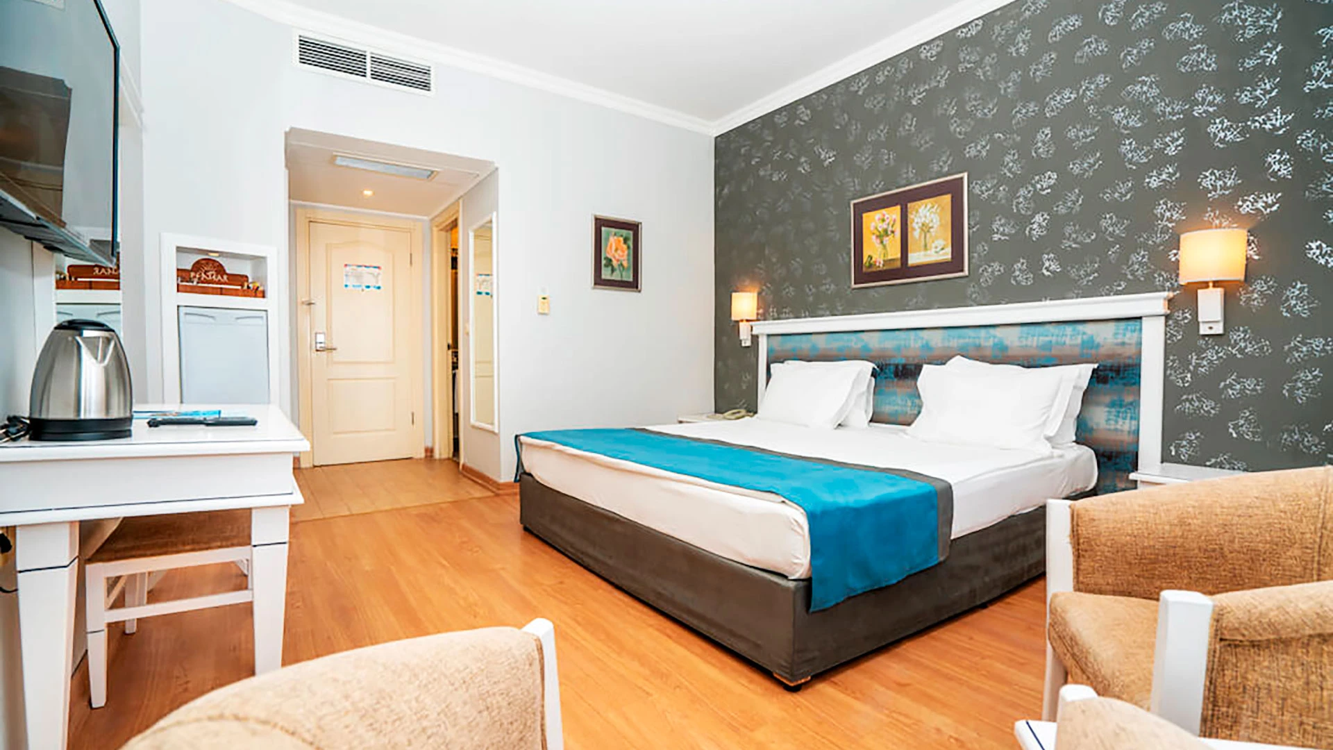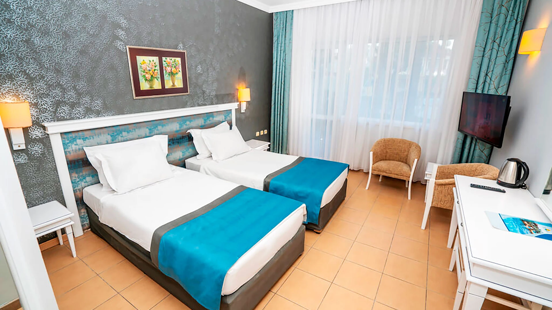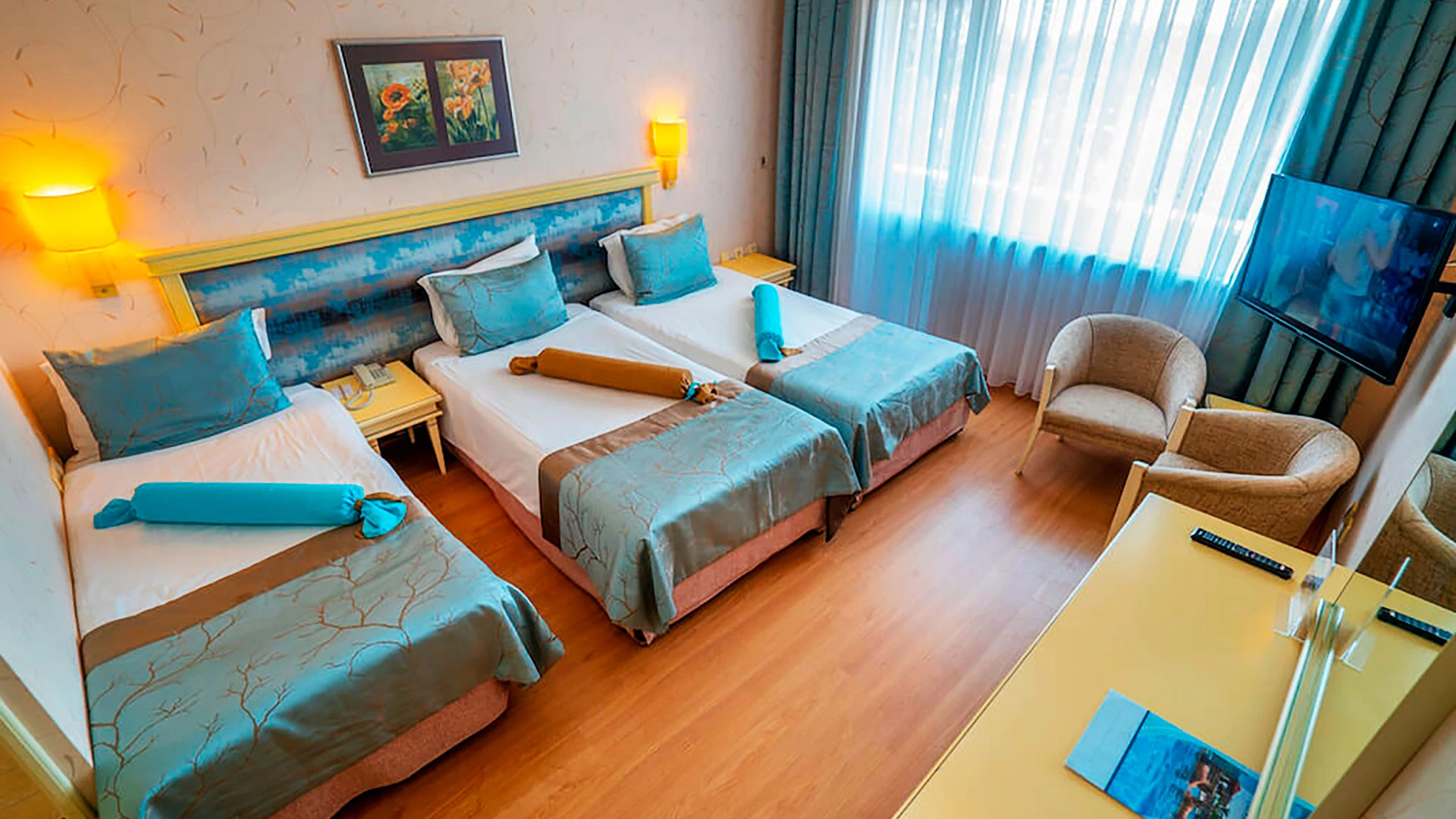 - Всички стаи са с климатик, балкон или тераса, баня със сешоар, сателитна/кабелна телевизия, минибар и сейф.