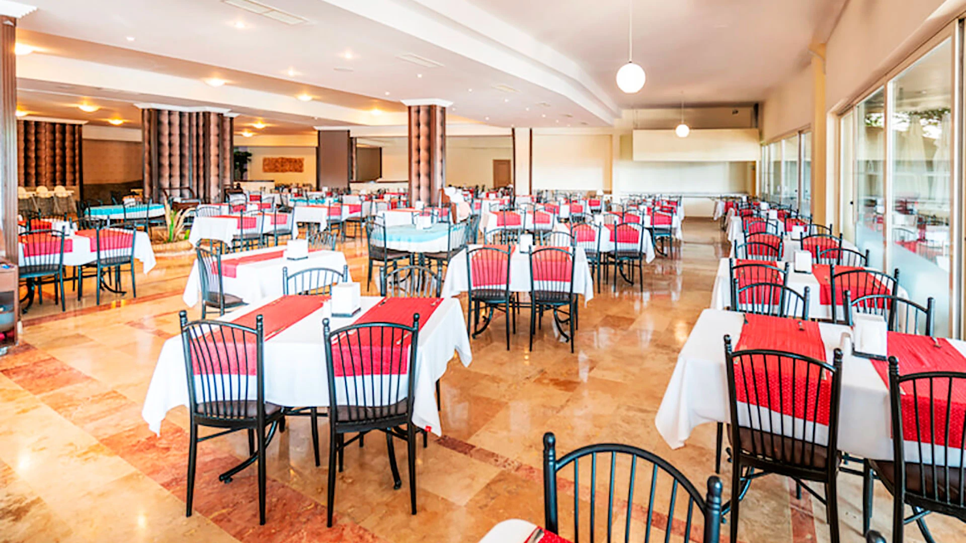 - Има основен ресторант (шведска маса), както и допълнителни заведения и барове: снек бар, бар край басейна, бар на плажа, лоби бар.