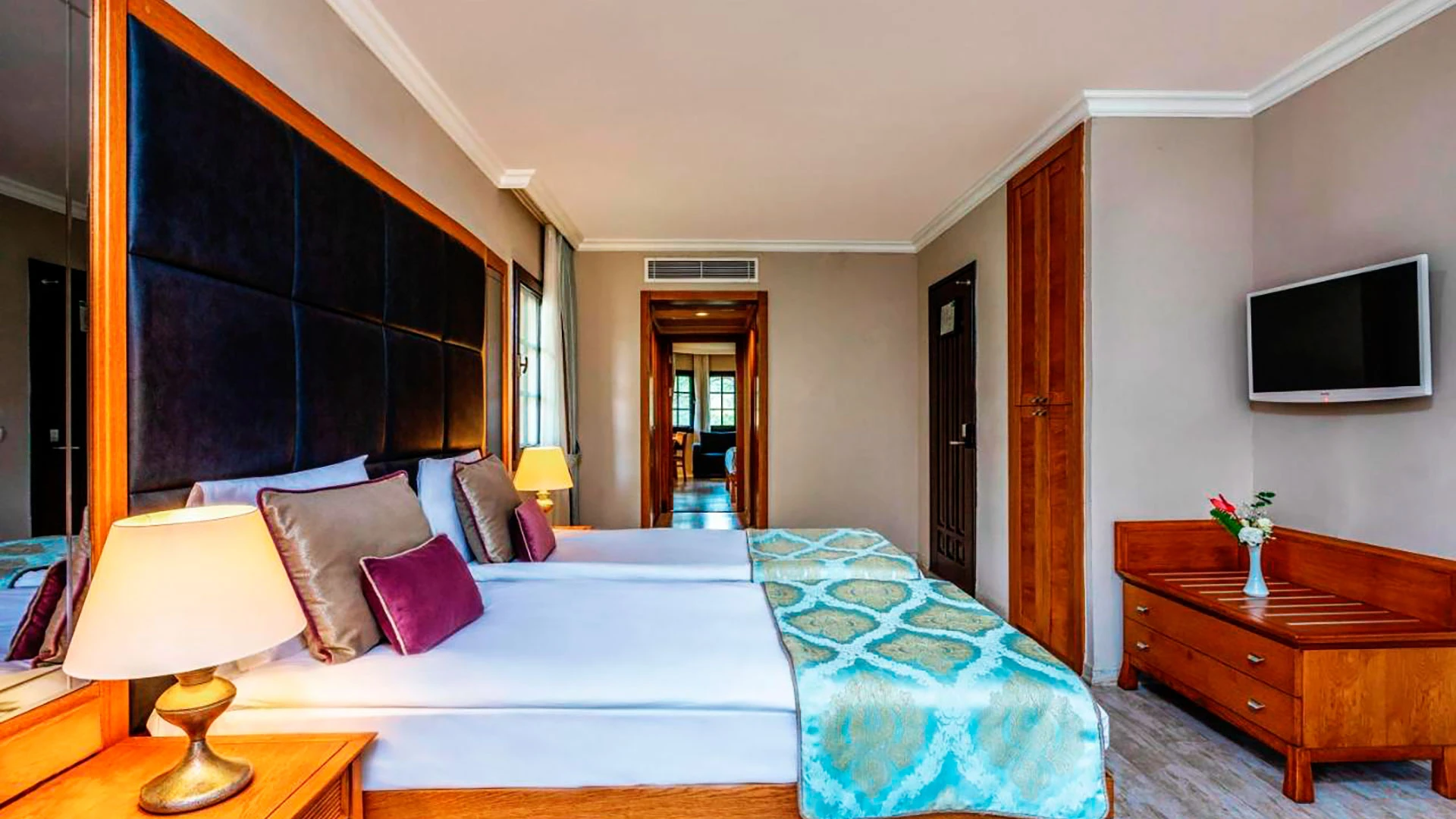 Стаите в Asteria Family Resort Belek са проектирани с мисъл за комфорта и нуждите на семействата. Всяка стая е оборудвана с модерни удобства, включително климатик, сателитна телевизия, мини-бар и безжичен интернет. Просторните стаи предлагат разкошни и удобни легла, а балконите или терасите откриват красиви изгледи към морето или към курортните градини.