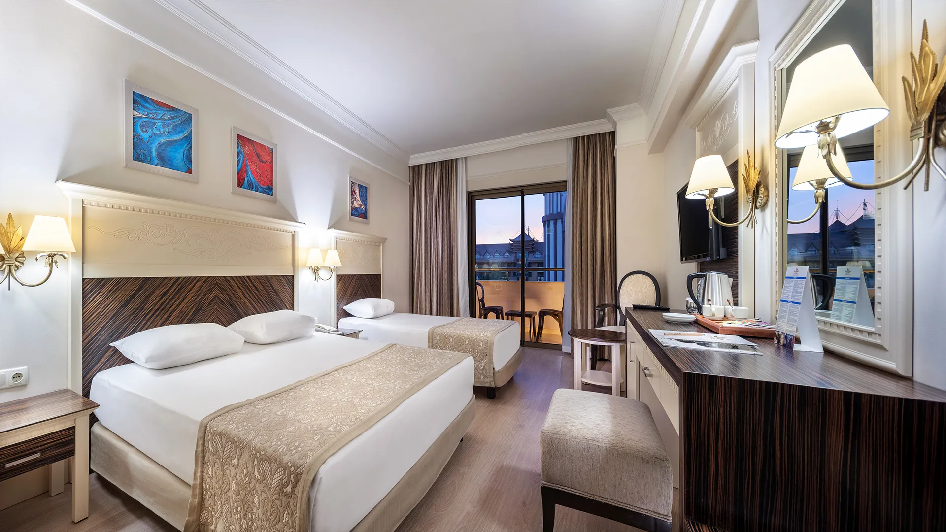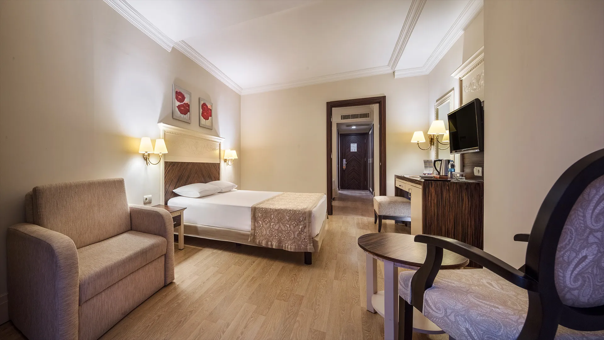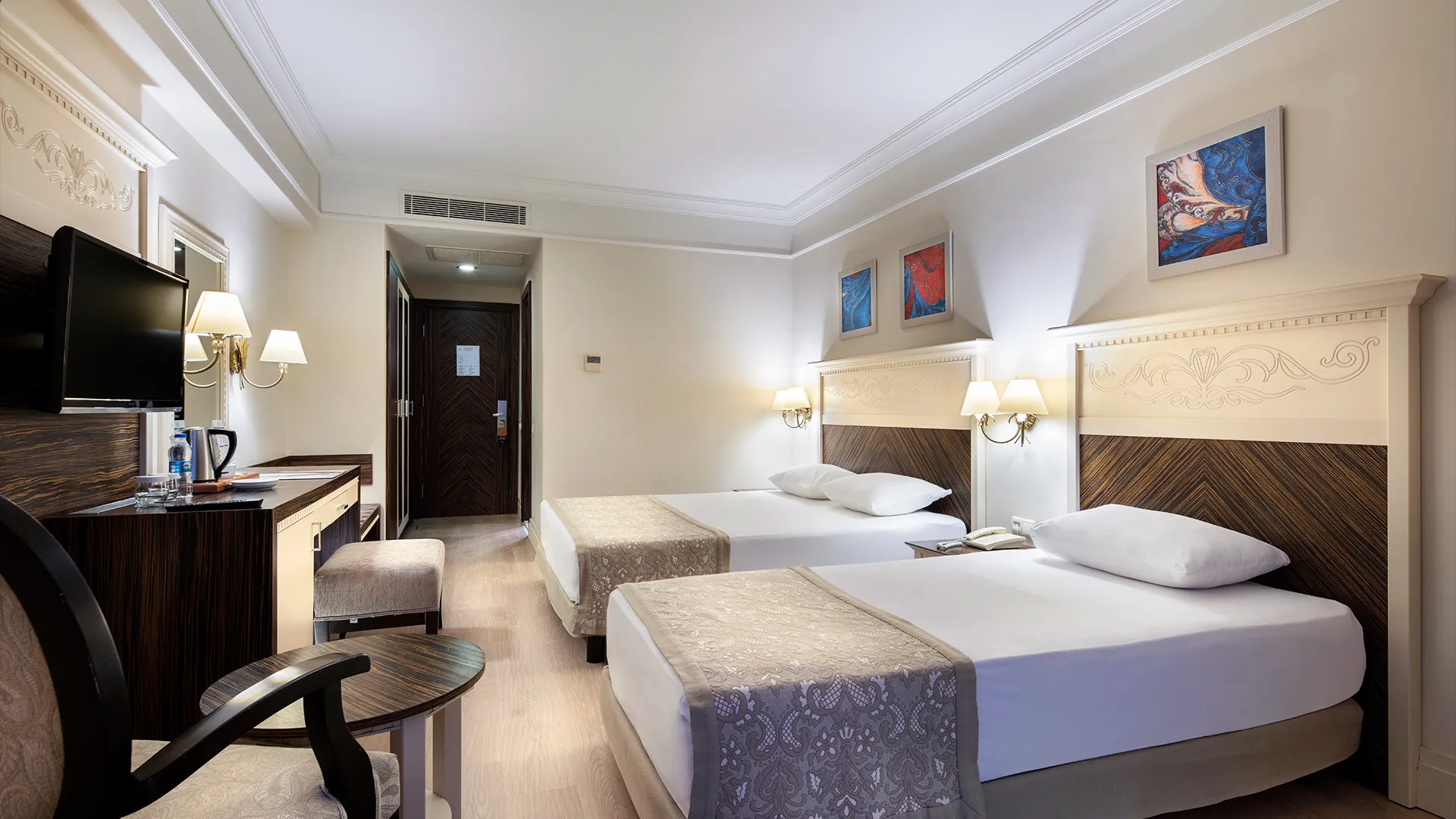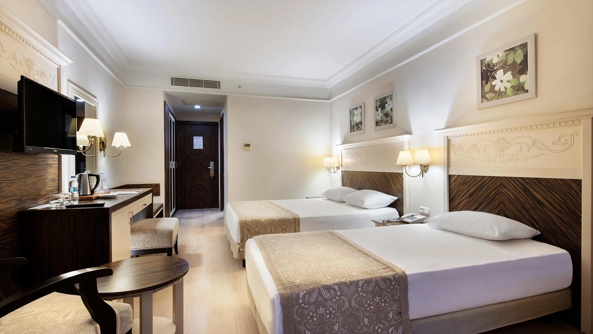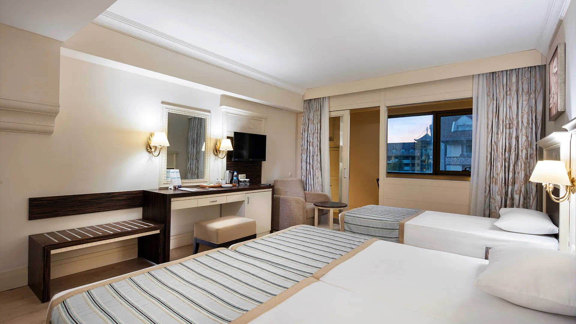 Всяка стая в Aydinbey King's Palace е обзаведена с внимание към детайлите и предлага комфорт и уют. Гостите могат да се насладят на модерни удобства, включително климатик, минибар, телевизор с плосък екран и безплатен WiFi.