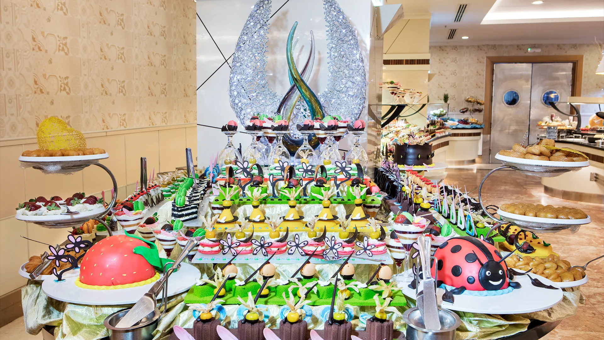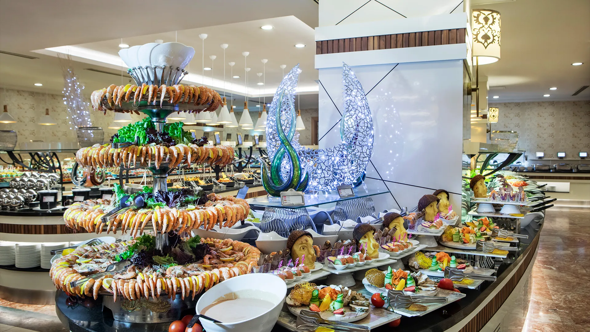 Хотелът разполага с разнообразие от ресторанти и барове, където гостите могат да опитат различни кулинарни изкушения и изискани напитки. Отделението за спа и уелнес предлага релаксиращи процедури и масажи, докато спортният комплекс е идеално място за тези, които обичат активния начин на живот.