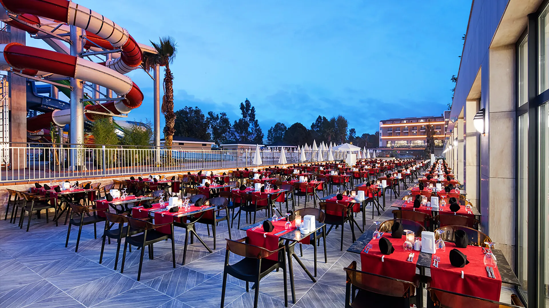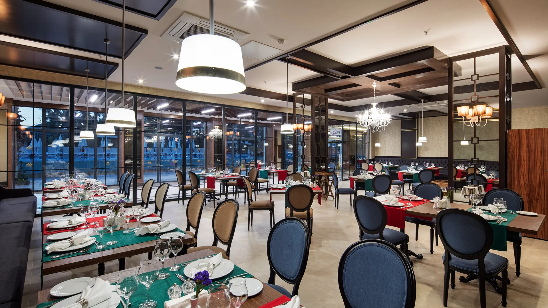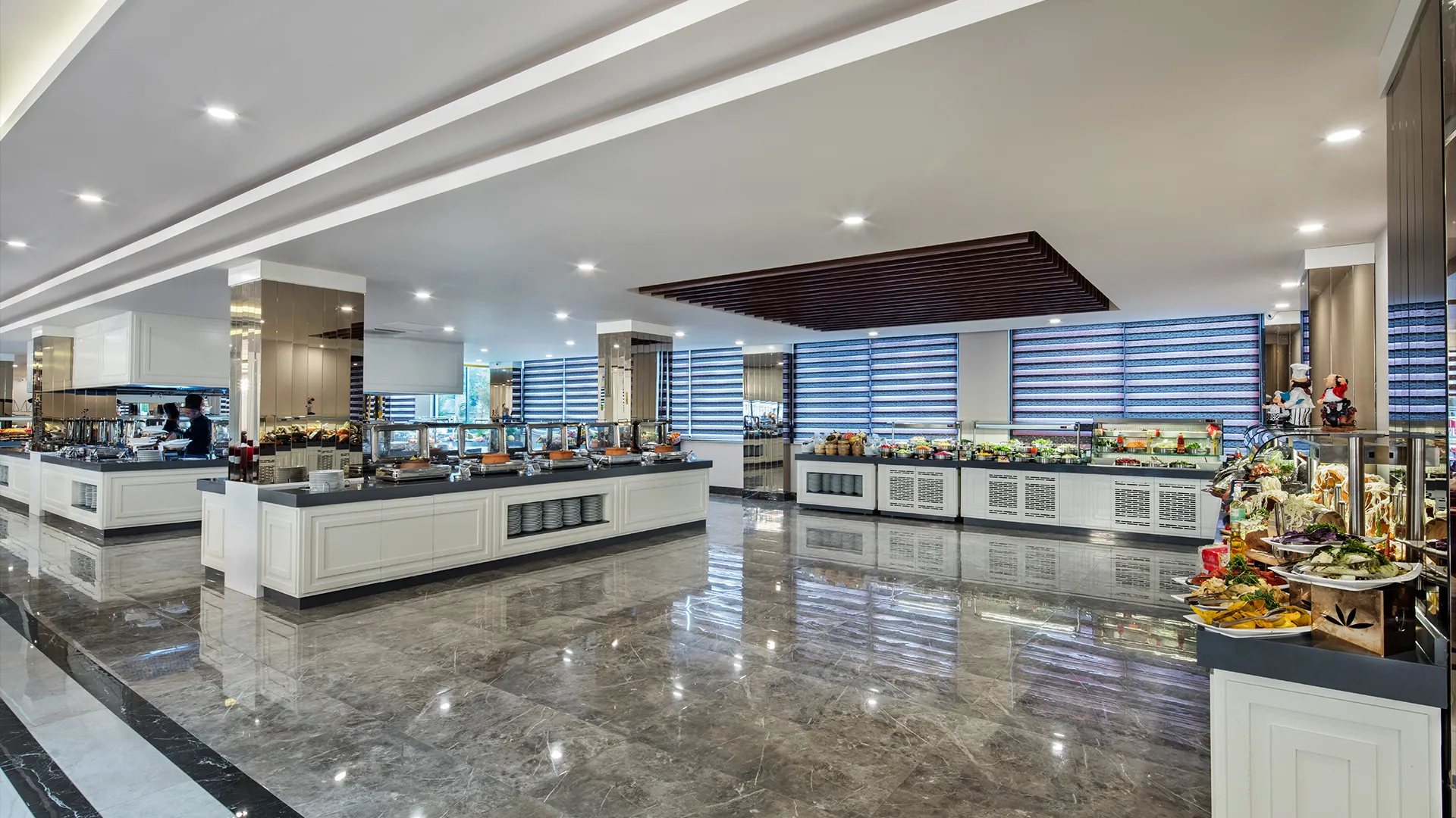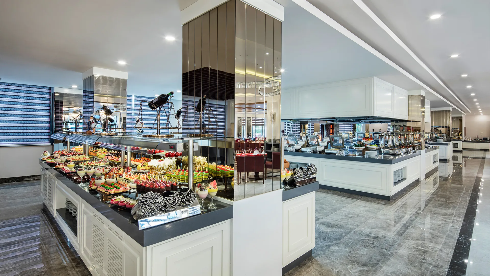 Всяка сутрин започнете с изобилие, наслаждавайки се на разнообразния шведски бюфет за закуска. Ресторантът на Aydinbey Queen’s Palace & SPA ви изкушава с богатство от вкусове - от италианска до средиземноморска и морска кухня. За вашето удоволствие се предлагат специални диетични менюта, включително вегетариански, халал и безглутенови ястия, за да задоволят всеки вкус и изискване.