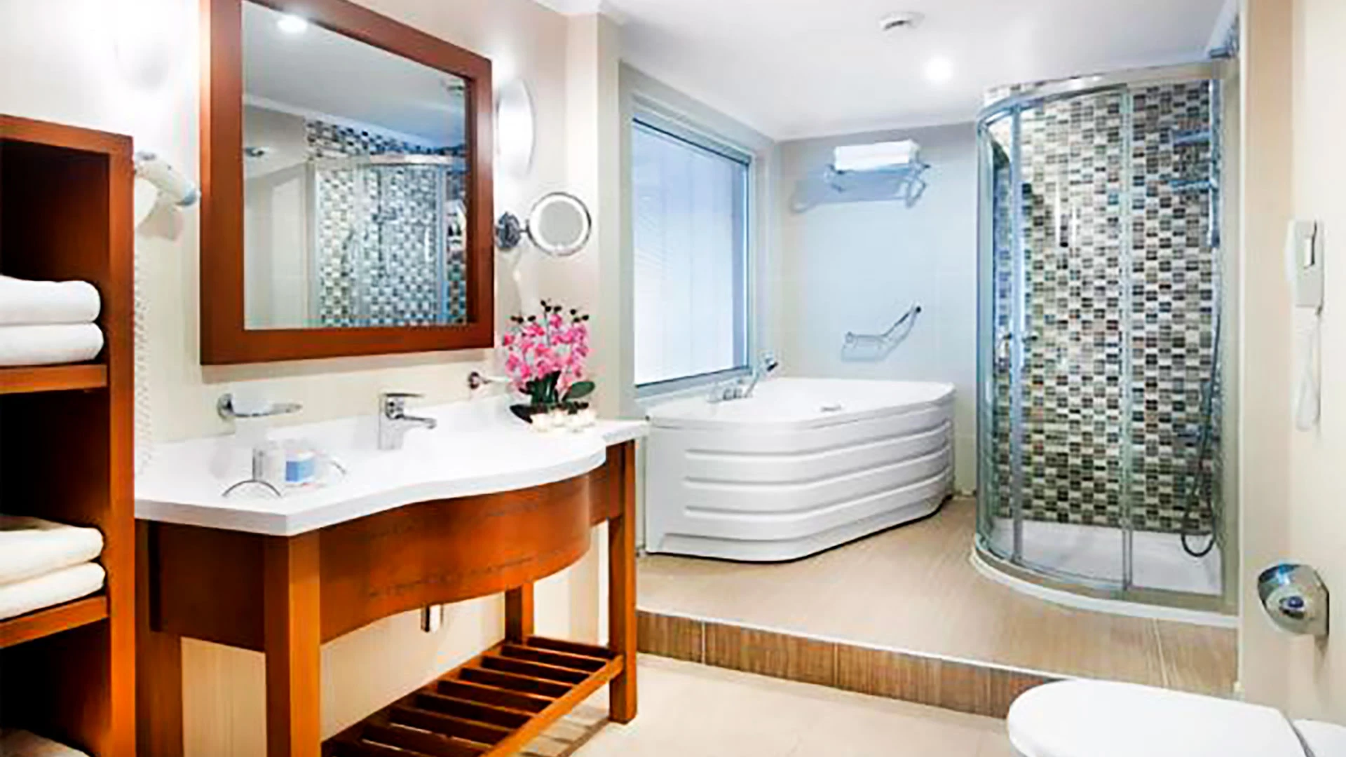 Комплексът впечатлява с богата база от удобства и услуги на световно ниво. На разположение на гостите са външни басейни, обградени от палми и шезлонги, както и закрит басейн. СПА и уелнес центърът предлага разнообразие от процедури за лице и тяло, включително масажи, турска баня, сауна и парна баня – перфектна комбинация за релакс и възстановяване.