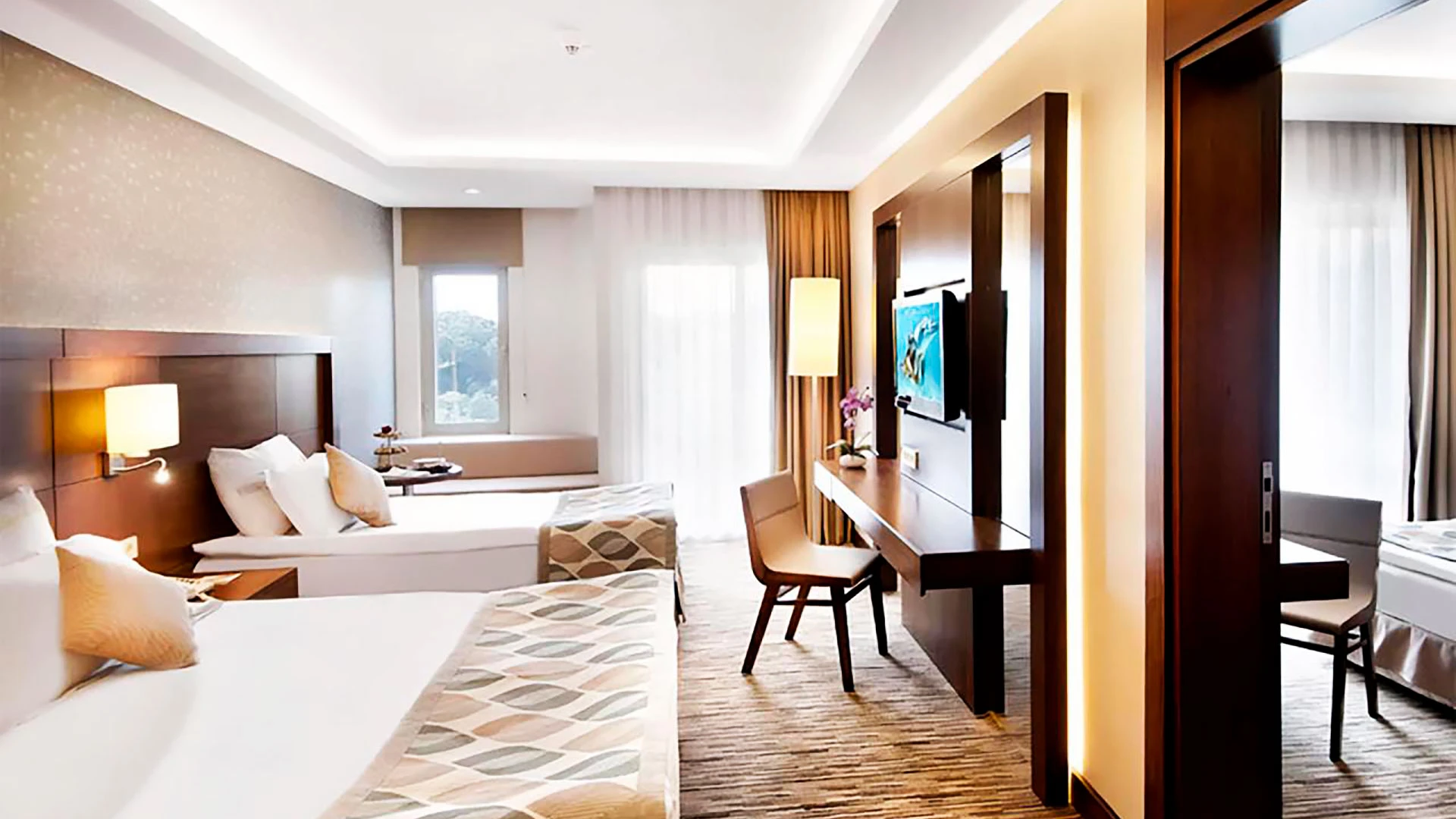 Belconti Resort Hotel 5* е елегантен хотелски комплекс, разположен сред живописна природа в курорта Белек. Заобиколен от защитена борова и евкалиптова гора и обширни зелени градини, хотелът предлага директен достъп до дълъг пясъчен плаж и спокойна атмосфера, идеална за пълноценна почивка.