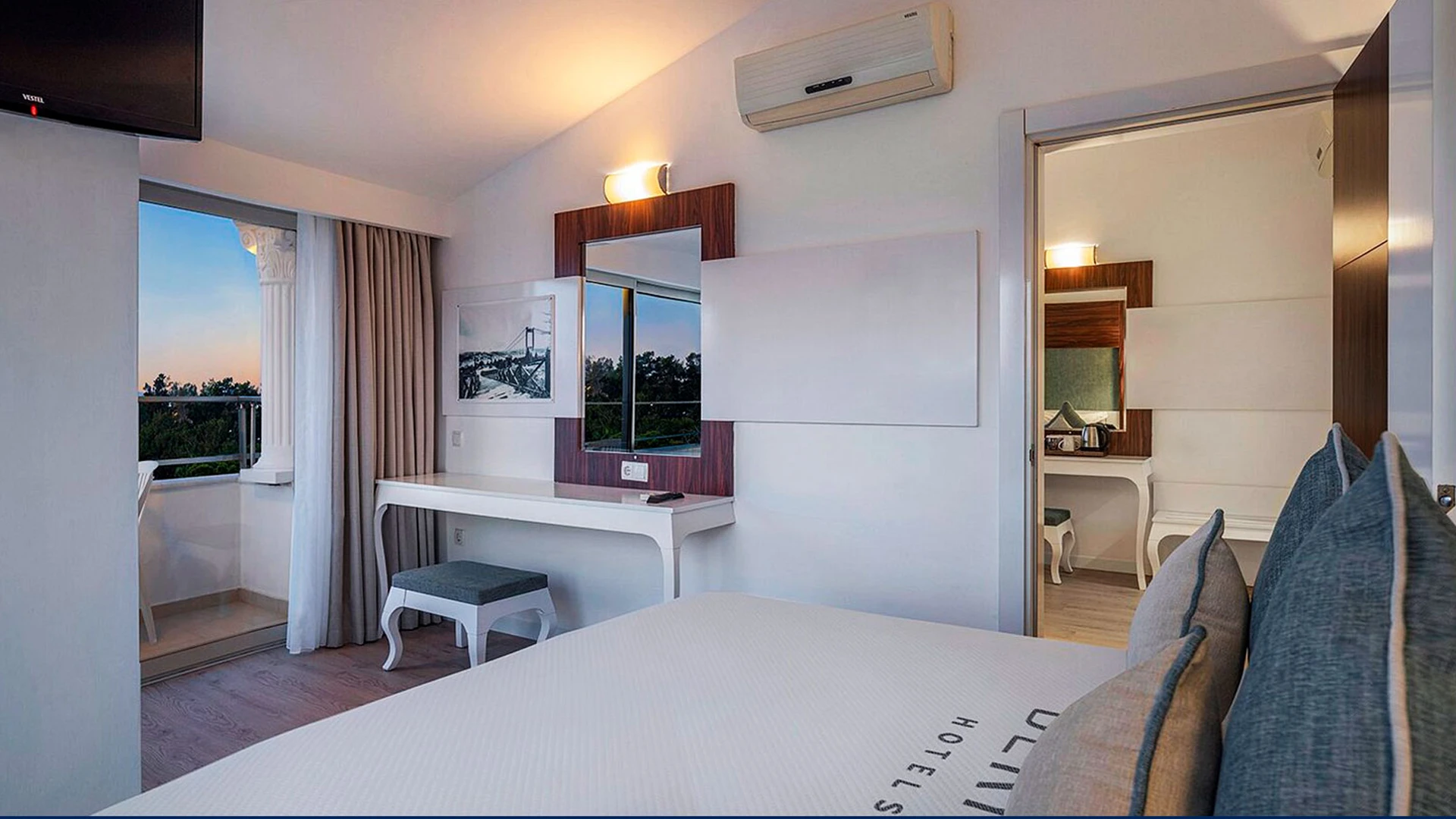 Хотелът предлага разнообразни типове стаи, включително двойни и фамилни, всички оборудвани с климатик, телевизор, минибар и балкон. За пълноценна почивка гостите могат да се възползват от СПА център, който включва турска баня, сауна, масажи и различни козметични процедури. Хотелът също така разполага с фитнес зала и множество спортни съоръжения като тенис кортове, тенис на маса и водни спортове.