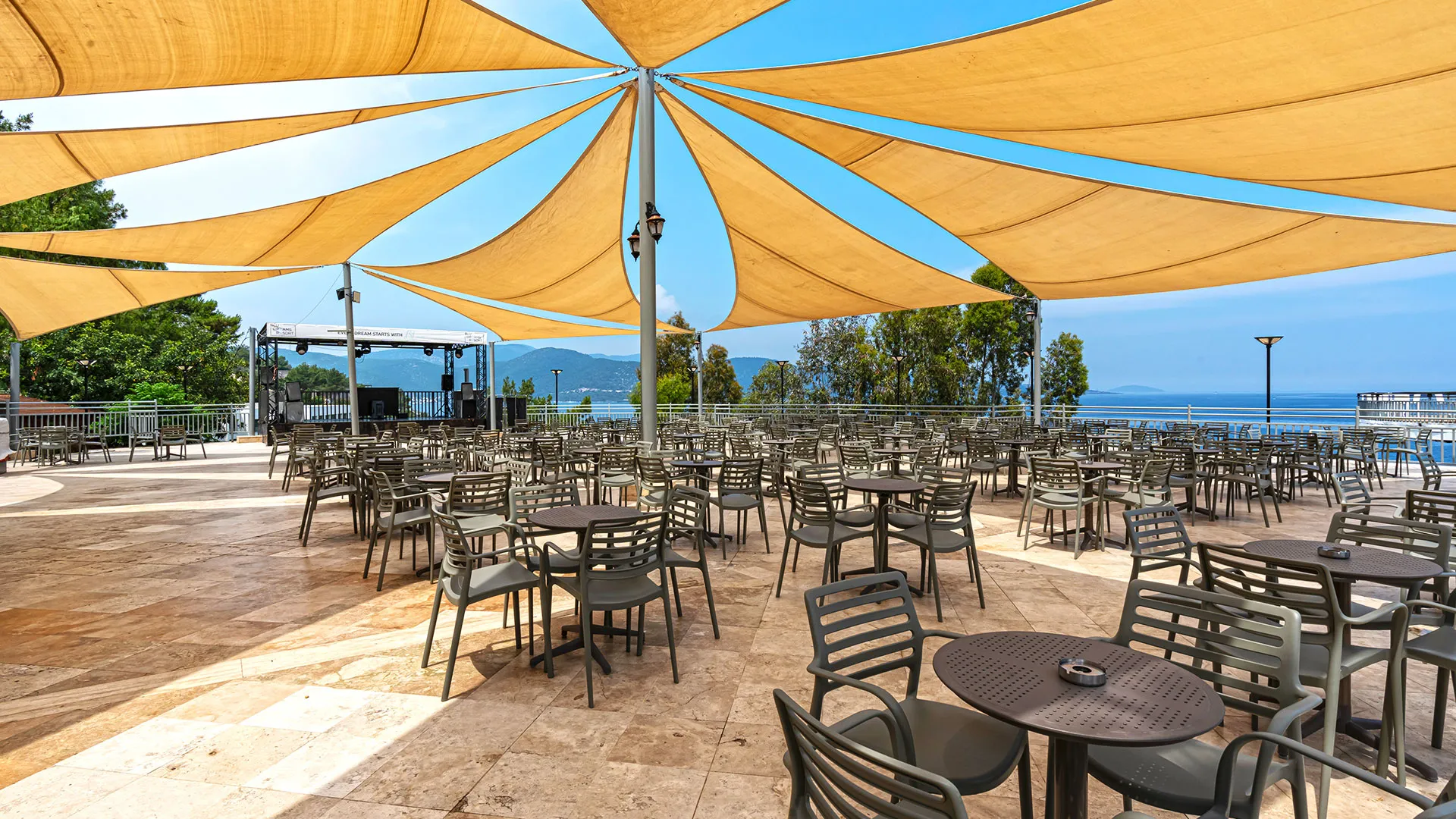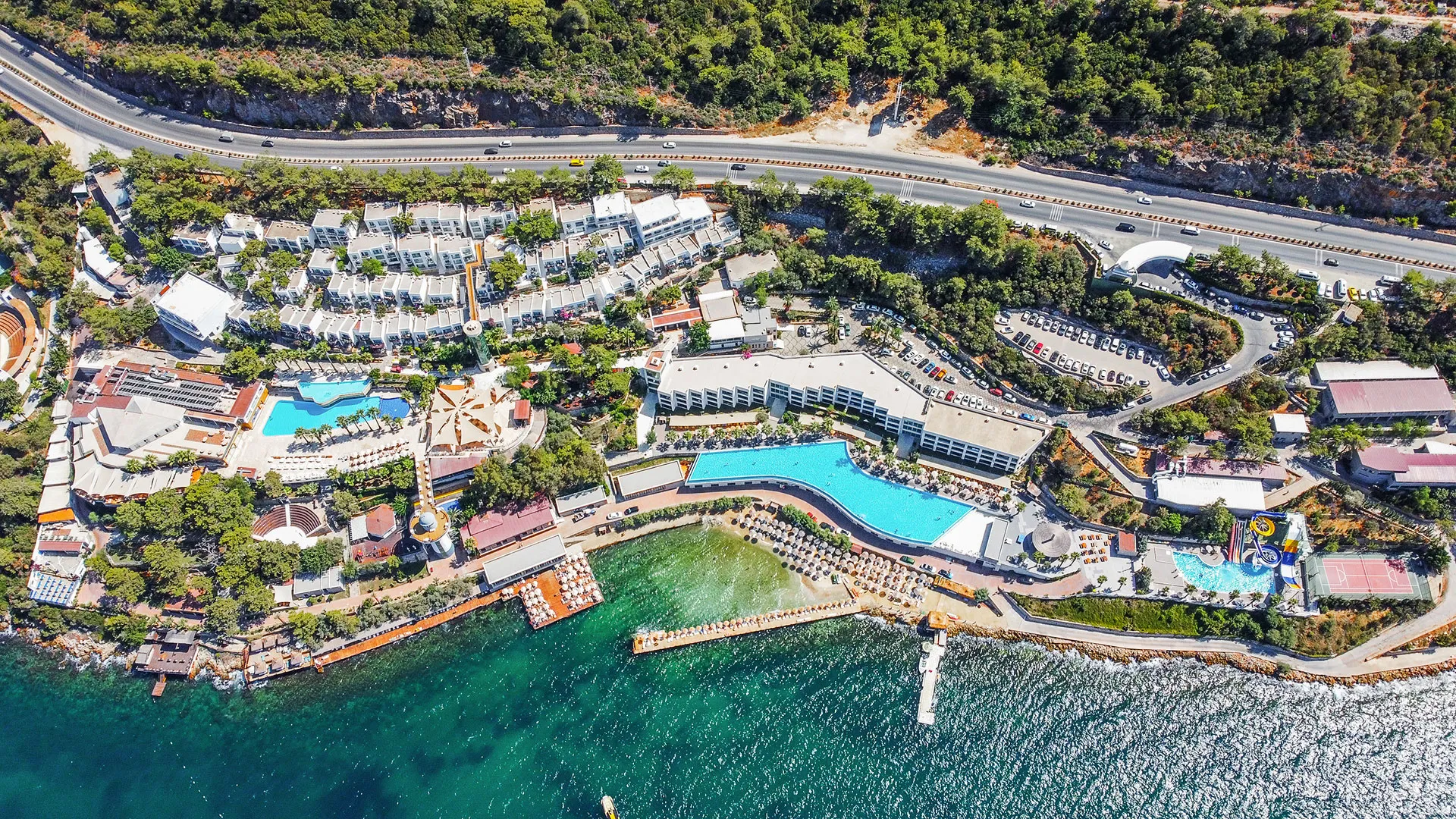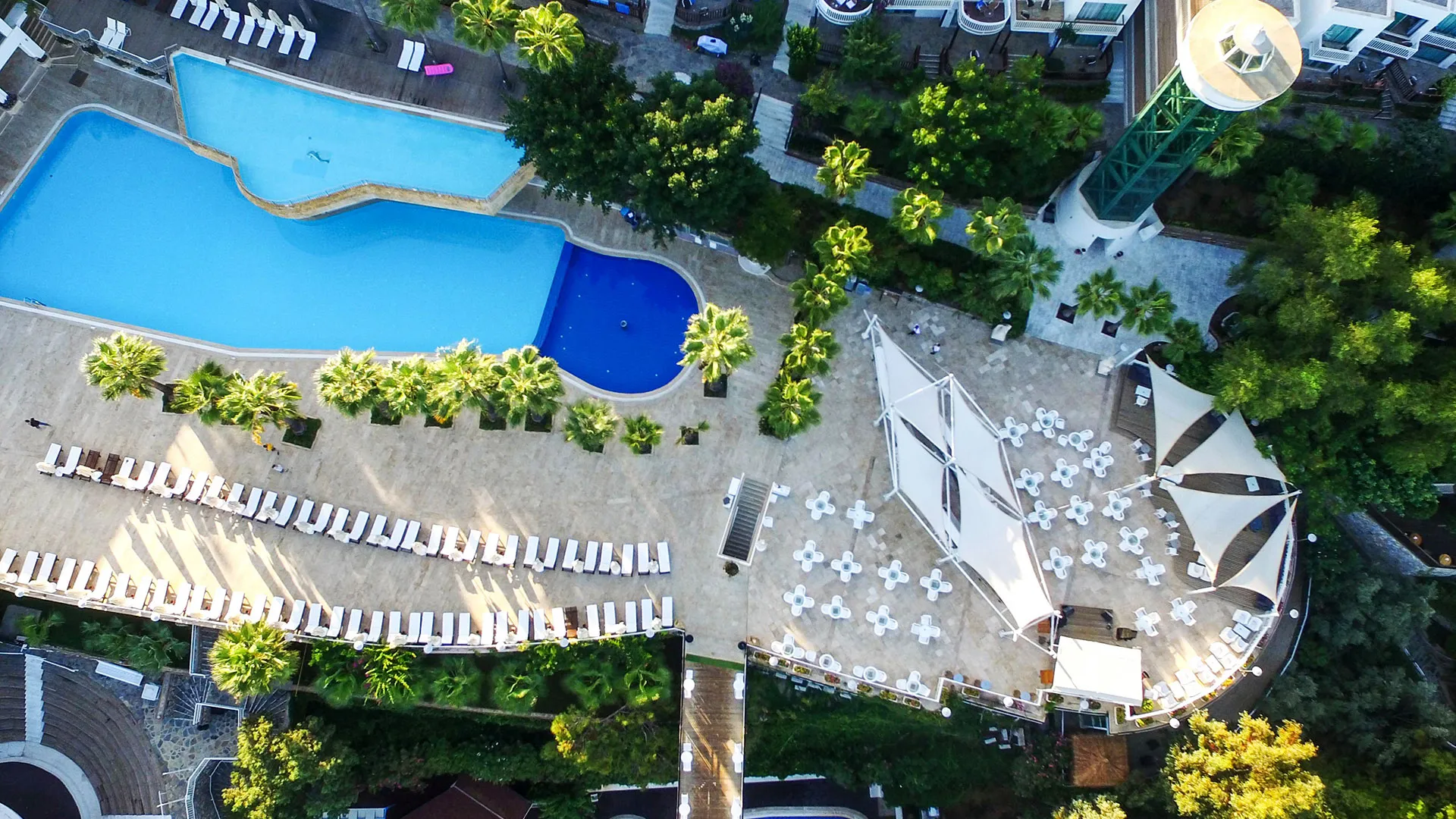 Комплексът разполага с пет басейна, включително басейн с водни пързалки, тенис кортове, спа център с разнообразни процедури, и зона за водни спортове. Хотелът предлага множество дневни и вечерни забавления, които включват спортни активности, анимации и музикални изпълнения на живо. За тези, които искат да се потопят в културния живот на региона, хотелът организира и екскурзии до Бодрум, който е на 10 км разстояние и може лесно да се достигне за около 15 минути с автомобил.