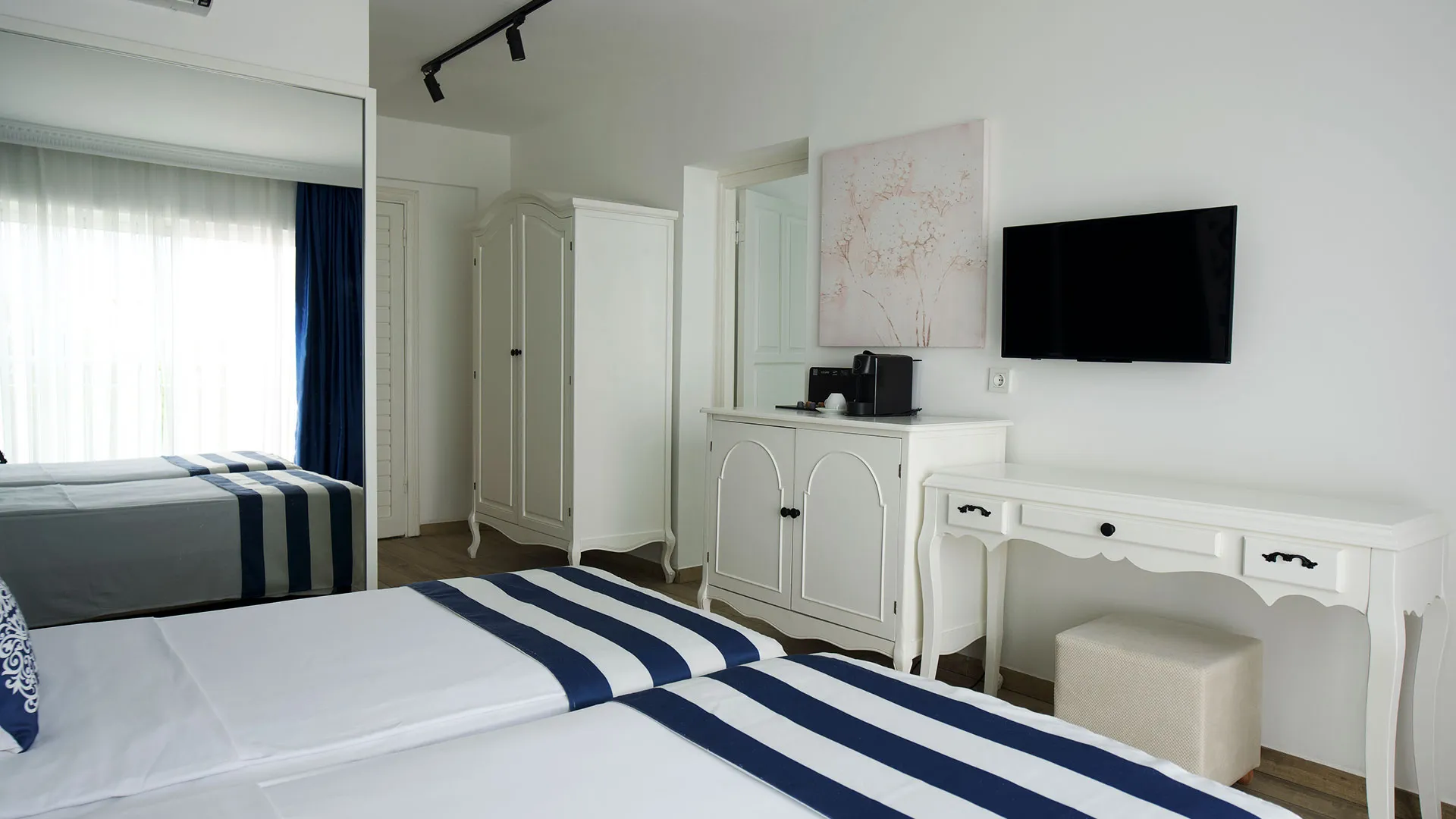 Blue Dreams Resort предлага разнообразие от стаи, включително Club Rooms, Club Family Rooms и Deluxe Rooms, всяка оборудвана с модерен интериор, климатик, минибар и балкон с гледка към морето или градината. Стаите са разположени както в основната сграда, така и в бунгала, разположени сред красивата природа на комплекса.