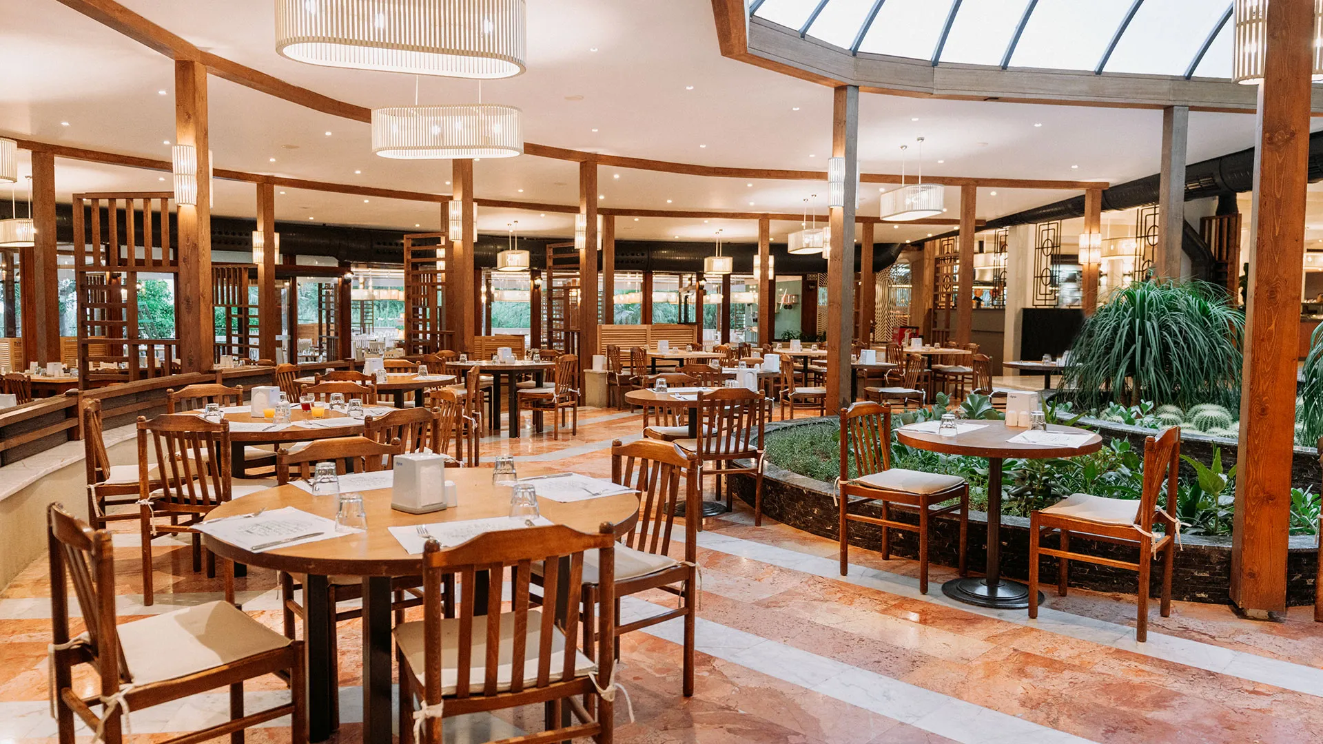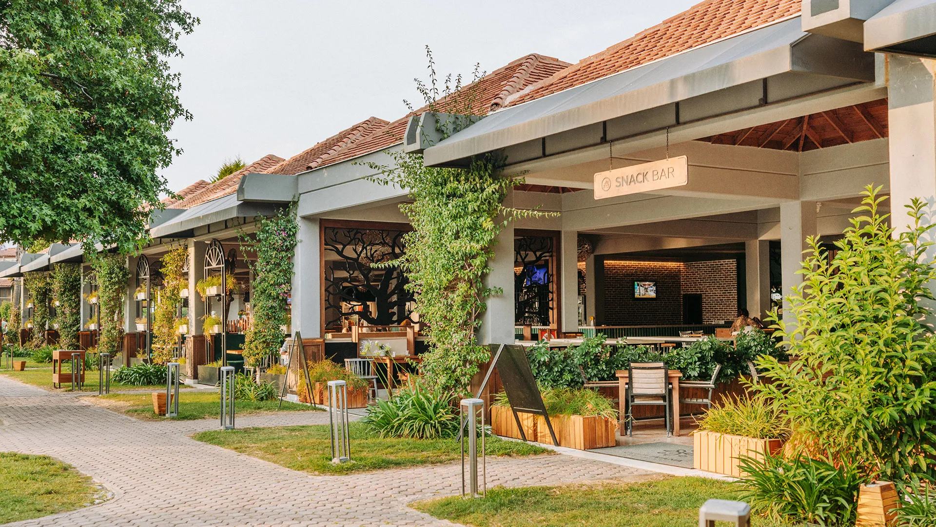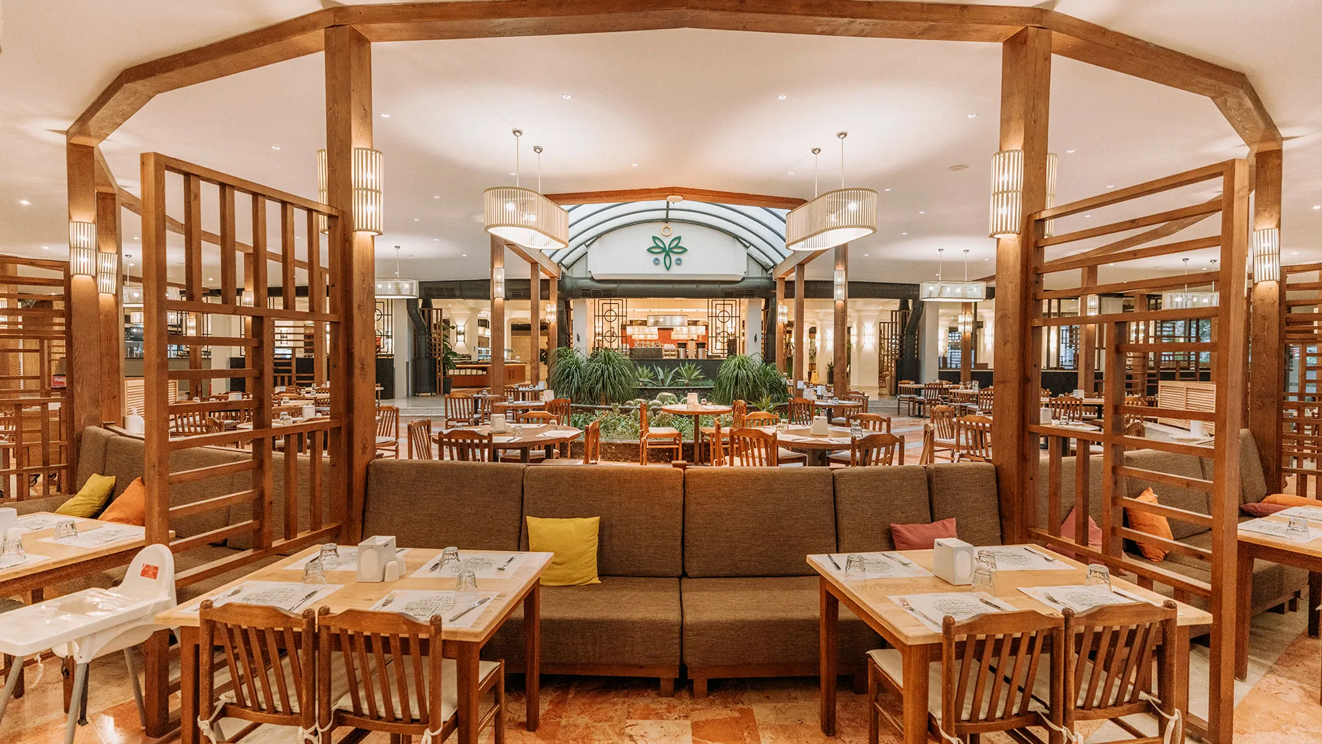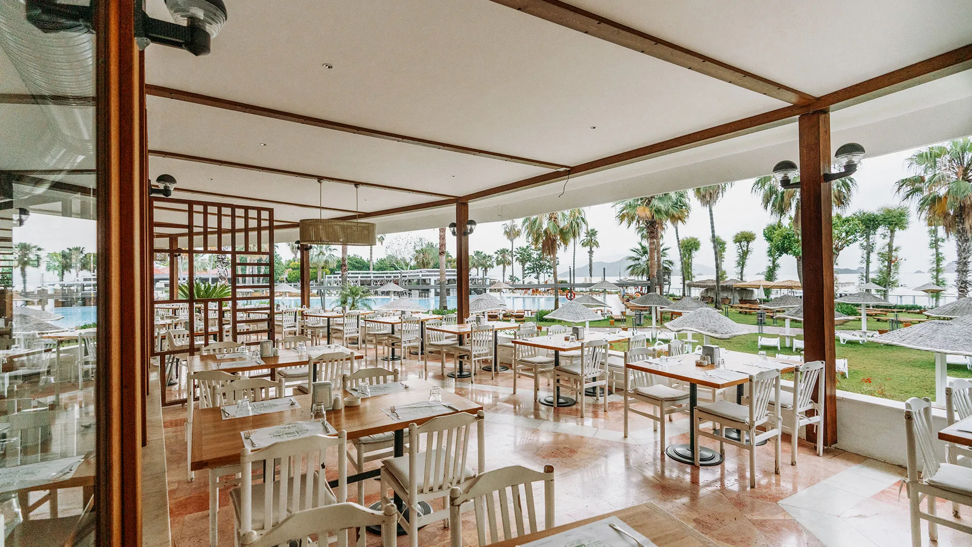 Ресторантът на хотела е подреден на край басейна и предлага изискана турска кухня, която гостите могат да опитат, наслаждайки се на прекрасната гледка към басейна и красивата ботаническа градина на хотела. Барът на място сервира богато разнообразие от напитки във всяко едно време на денонощието, за да задоволи вкусовете на всеки гост.