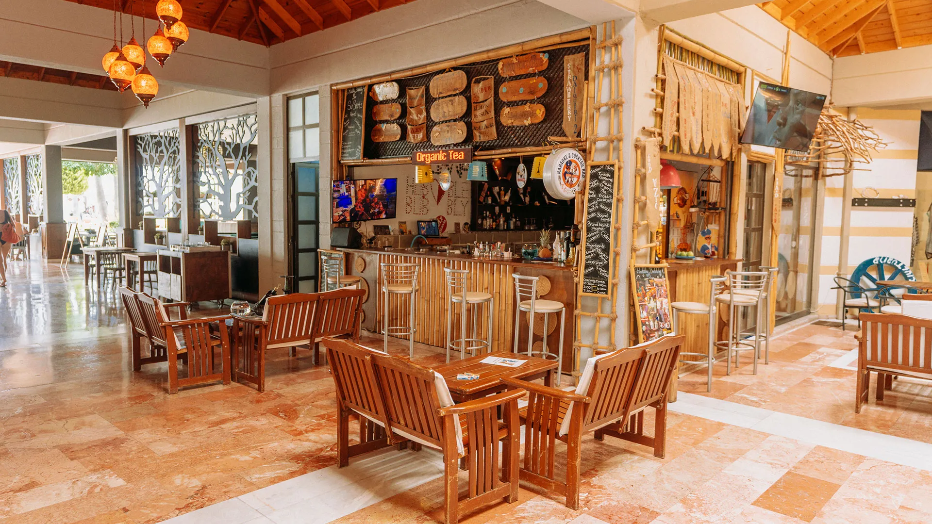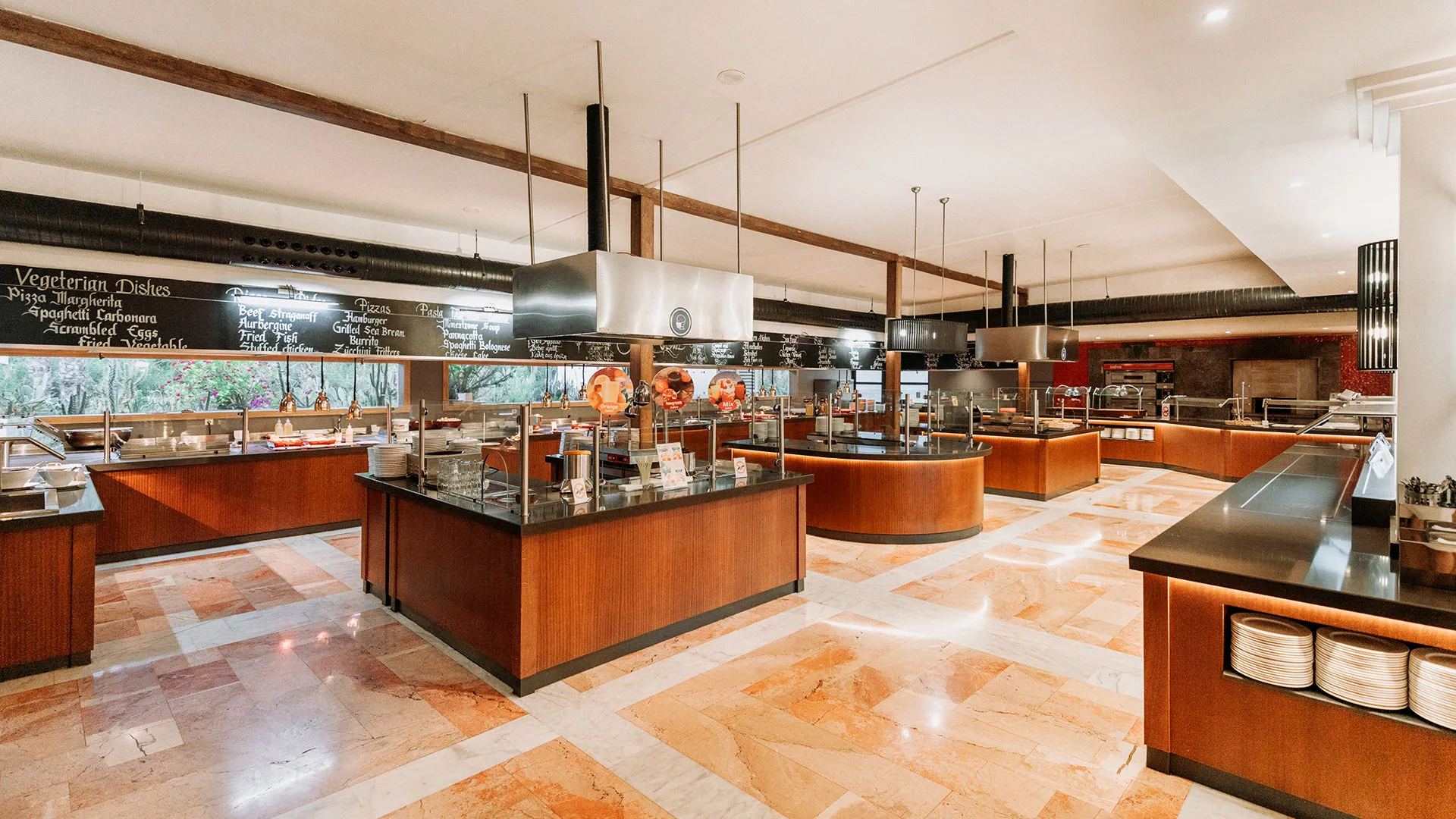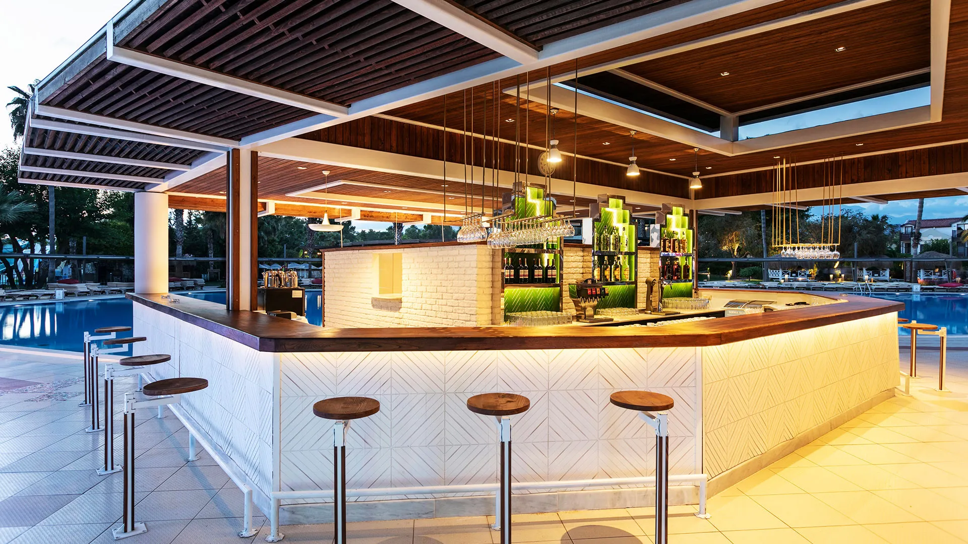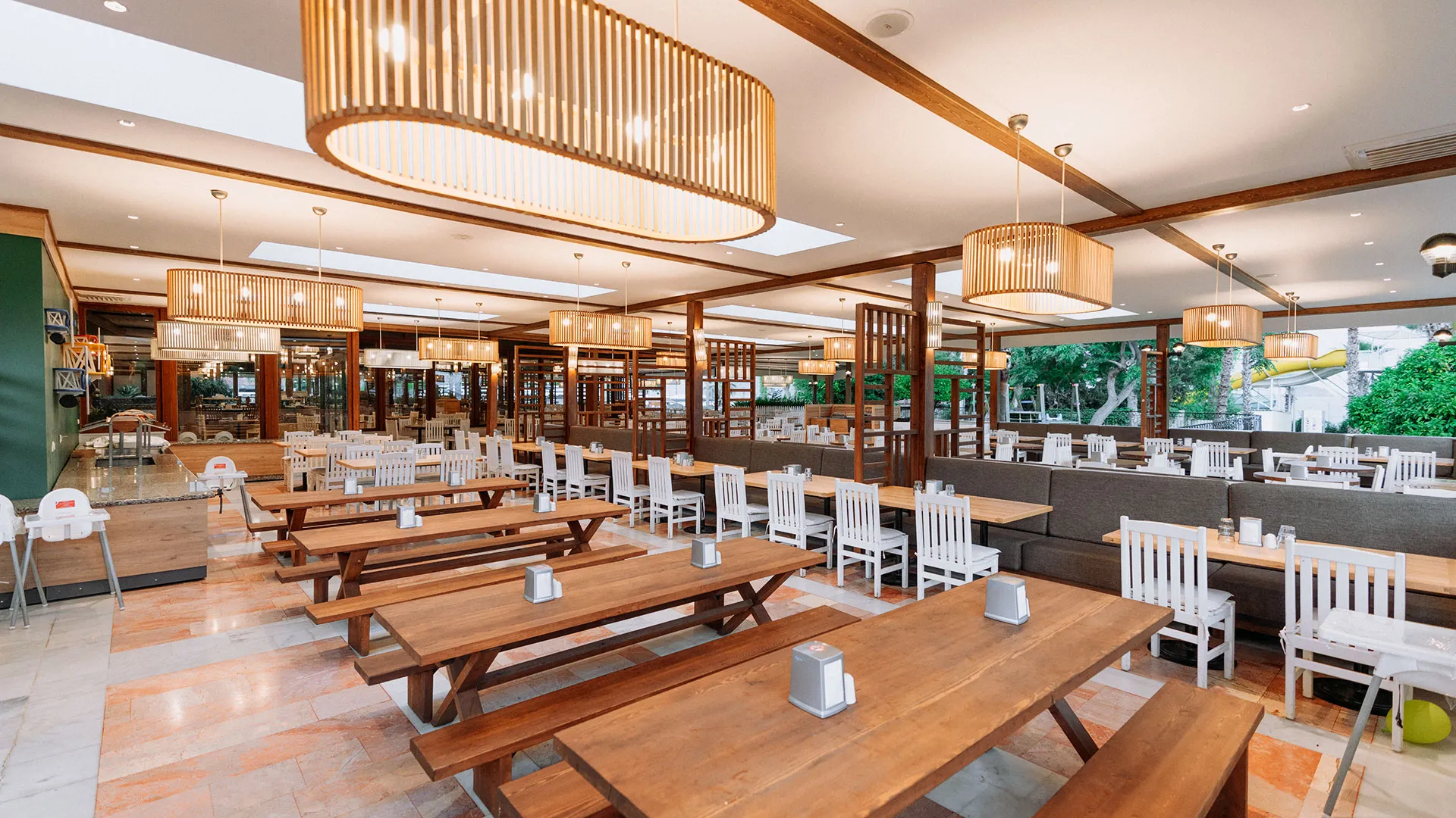 Ресторантът на хотела е подреден на край басейна и предлага изискана турска кухня, която гостите могат да опитат, наслаждайки се на прекрасната гледка към басейна и красивата ботаническа градина на хотела. Барът на място сервира богато разнообразие от напитки във всяко едно време на денонощието, за да задоволи вкусовете на всеки гост.