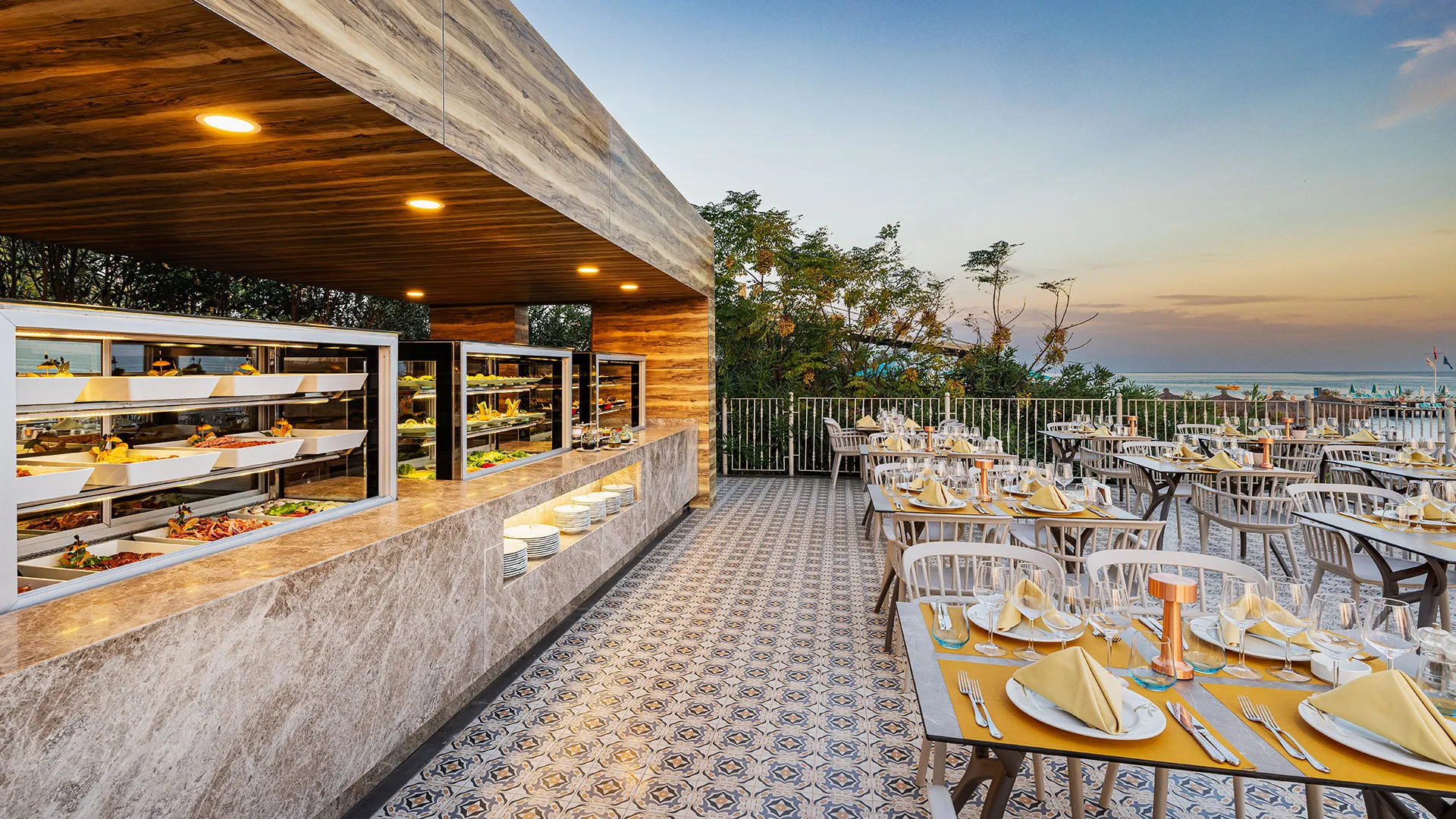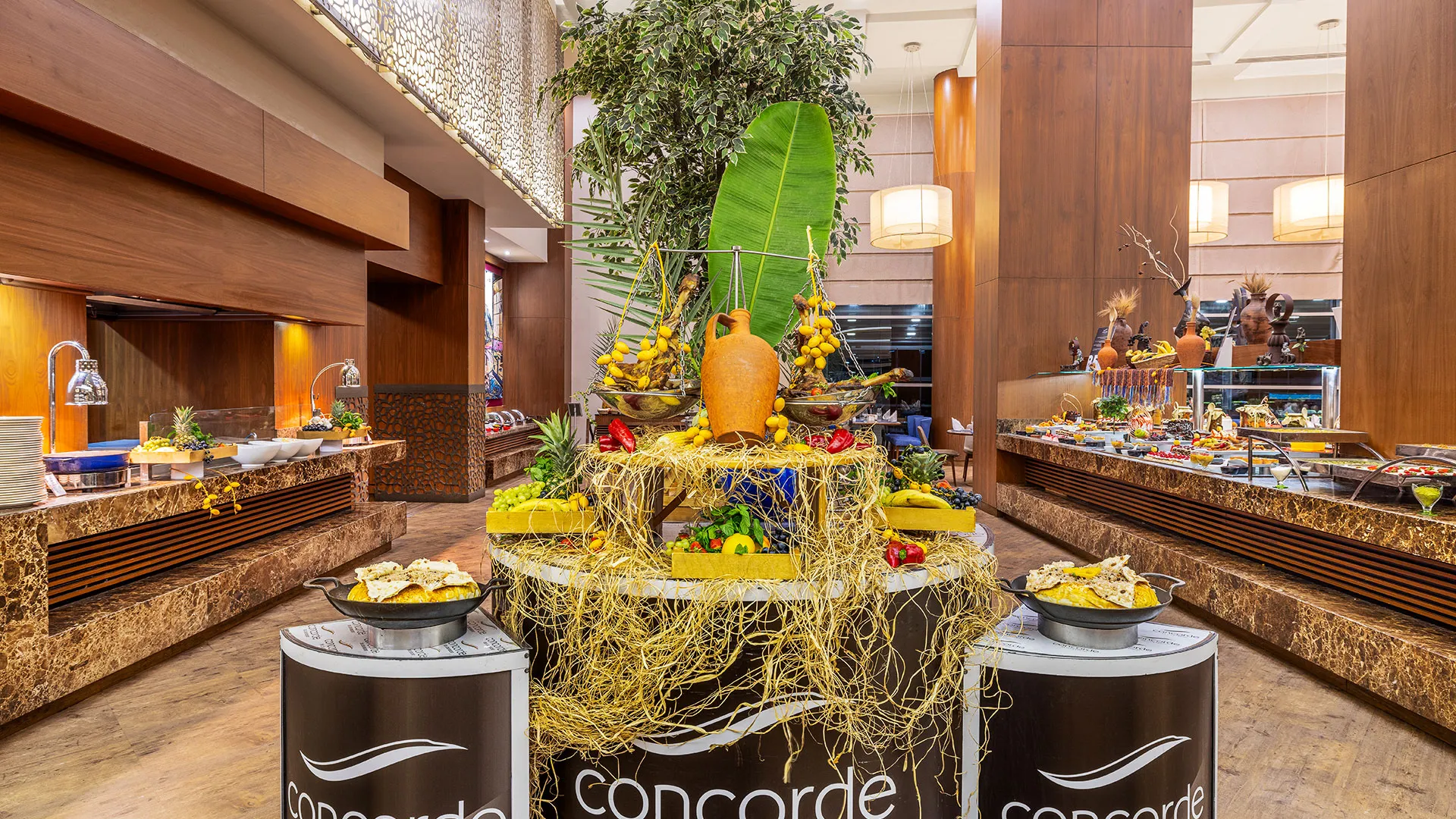 Кулинарните изживявания в Concorde Deluxe Resort са истински гастрономически приключения, с множество ресторанти и барове, които предлагат богат избор от международни и местни ястия, приготвени с най-свежите продукти. Гостите могат да се насладят на изискани блюда в основния ресторант, както и на разнообразие от специализирани ресторанти, предлагащи италианска, азиатска, средиземноморска и други кухни. Баровете на хотела предлагат широка гама от напитки и коктейли, които могат да се консумират както край басейна, така и в комфортната обстановка на лобито или на плажа.