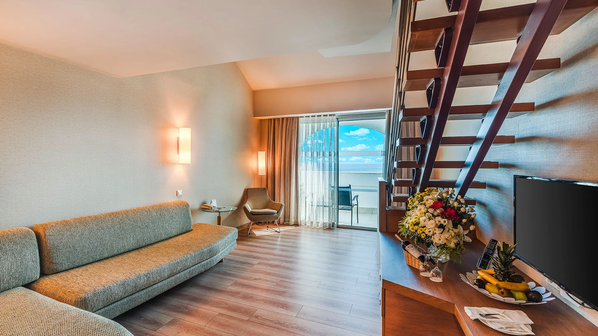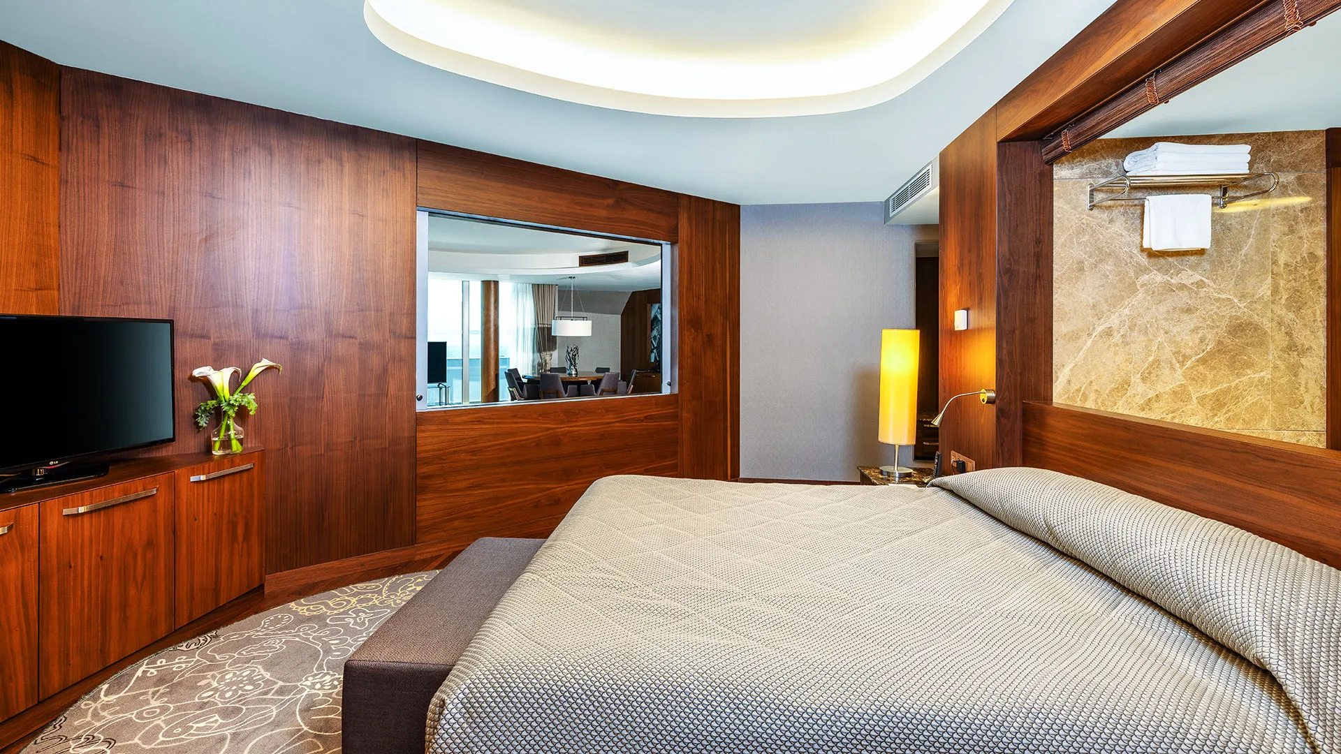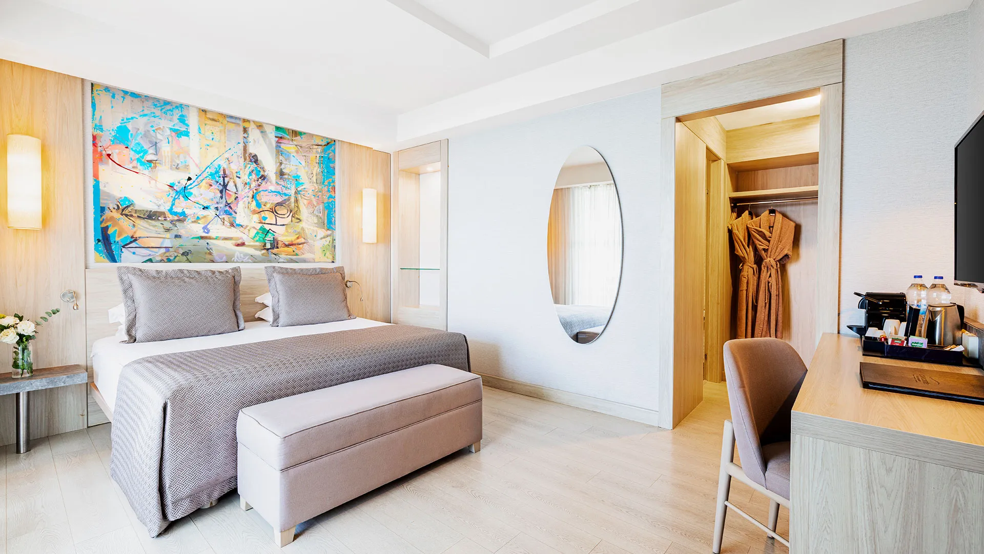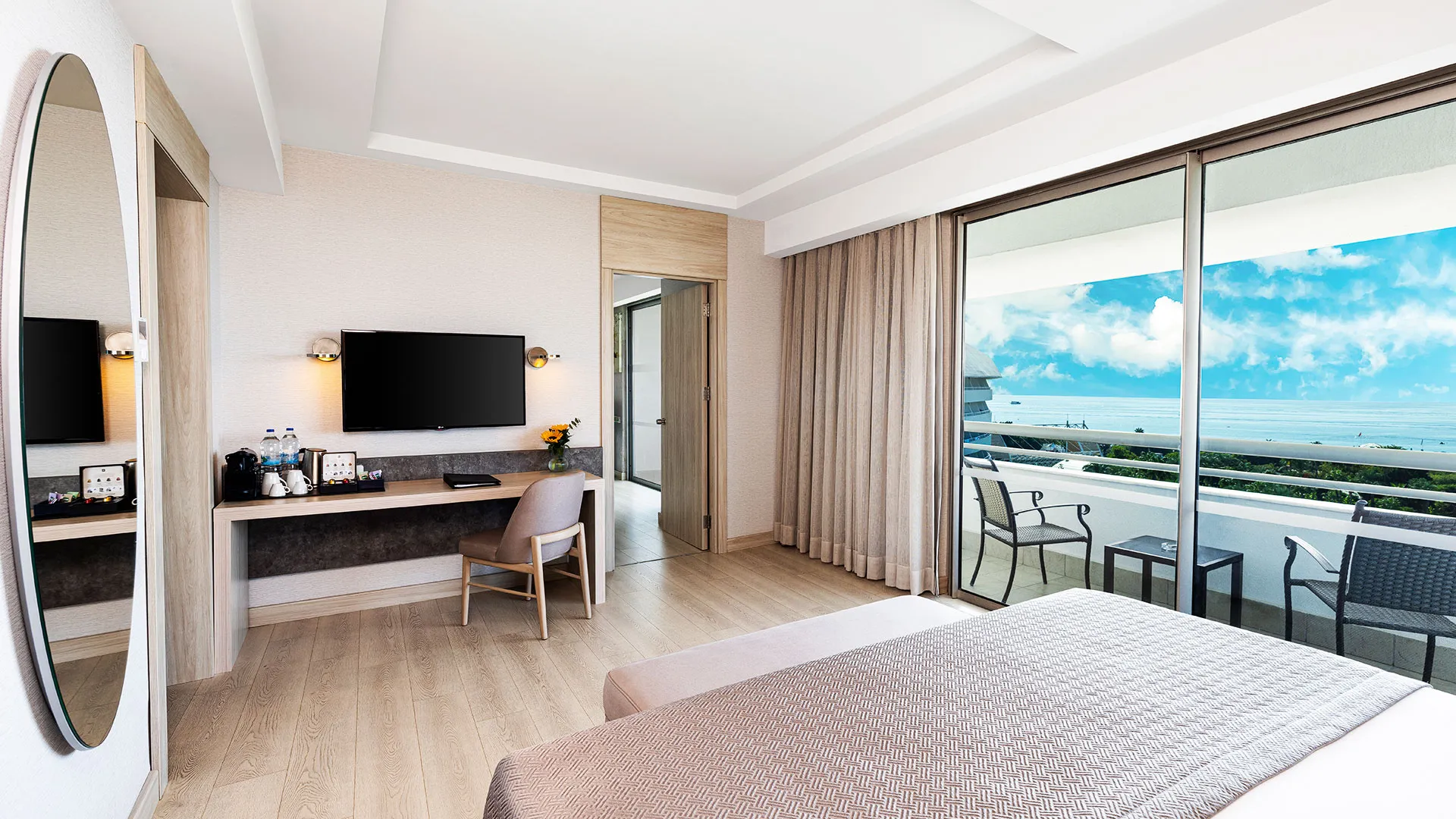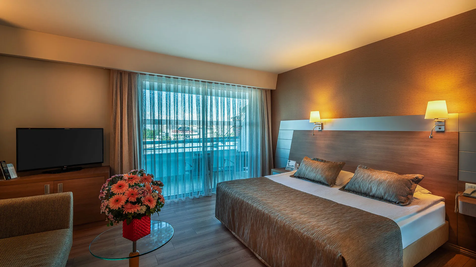 Настаняването в Concorde Deluxe Resort включва разнообразие от просторни и стилно обзаведени стаи и апартаменти, оборудвани с всички съвременни удобства за максимален комфорт. Всяка стая разполага с климатик, телевизор с плосък екран, минибар, сейф и безплатен Wi-Fi. Балконите и терасите разкриват прекрасни гледки към морето, басейните или изискано поддържаните градини, създавайки атмосфера на спокойствие и релакс. Вътрешният интериор се отличава с изисканост и внимание към детайла, допринасяйки за усещането за лукс и уют.