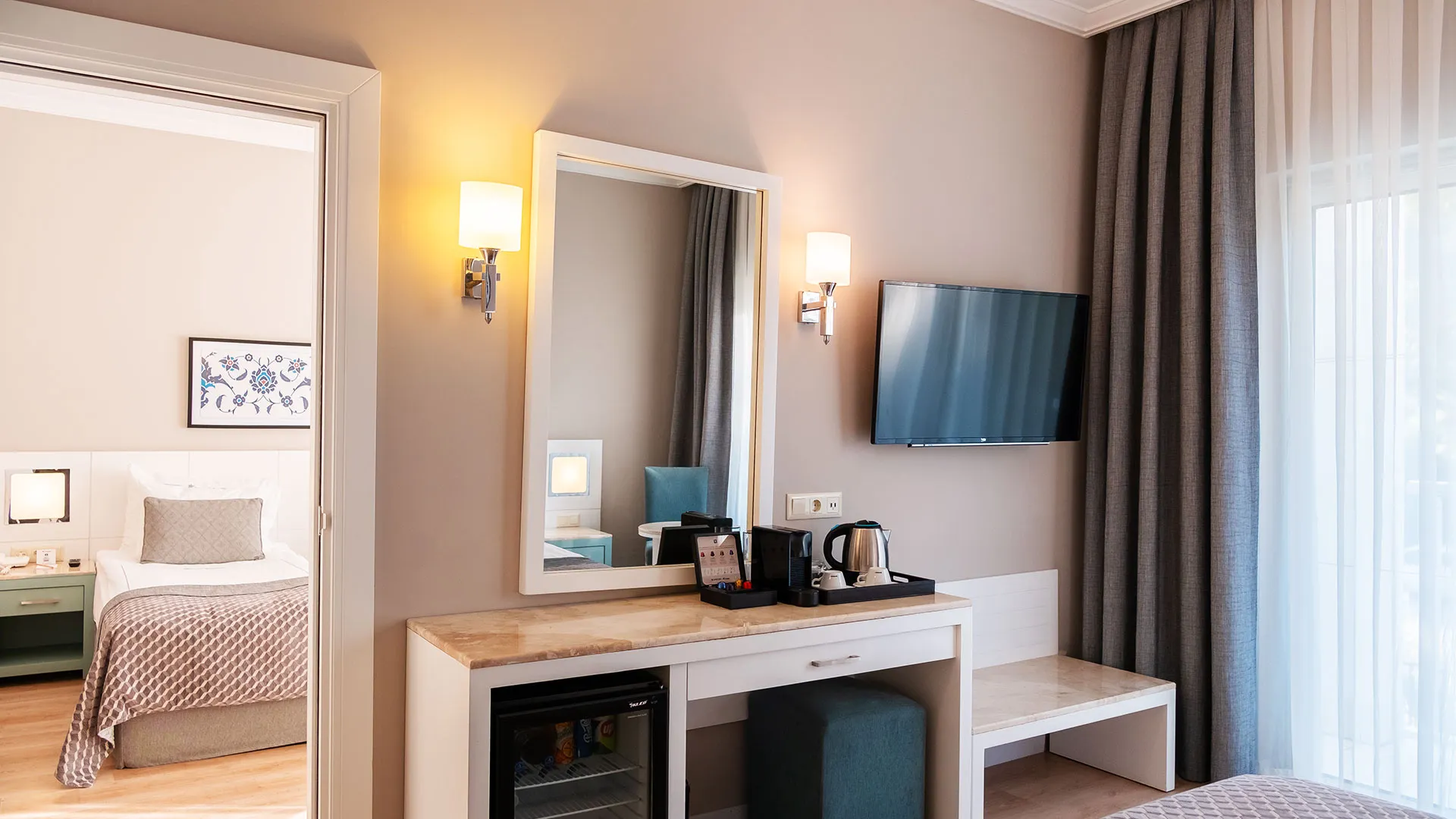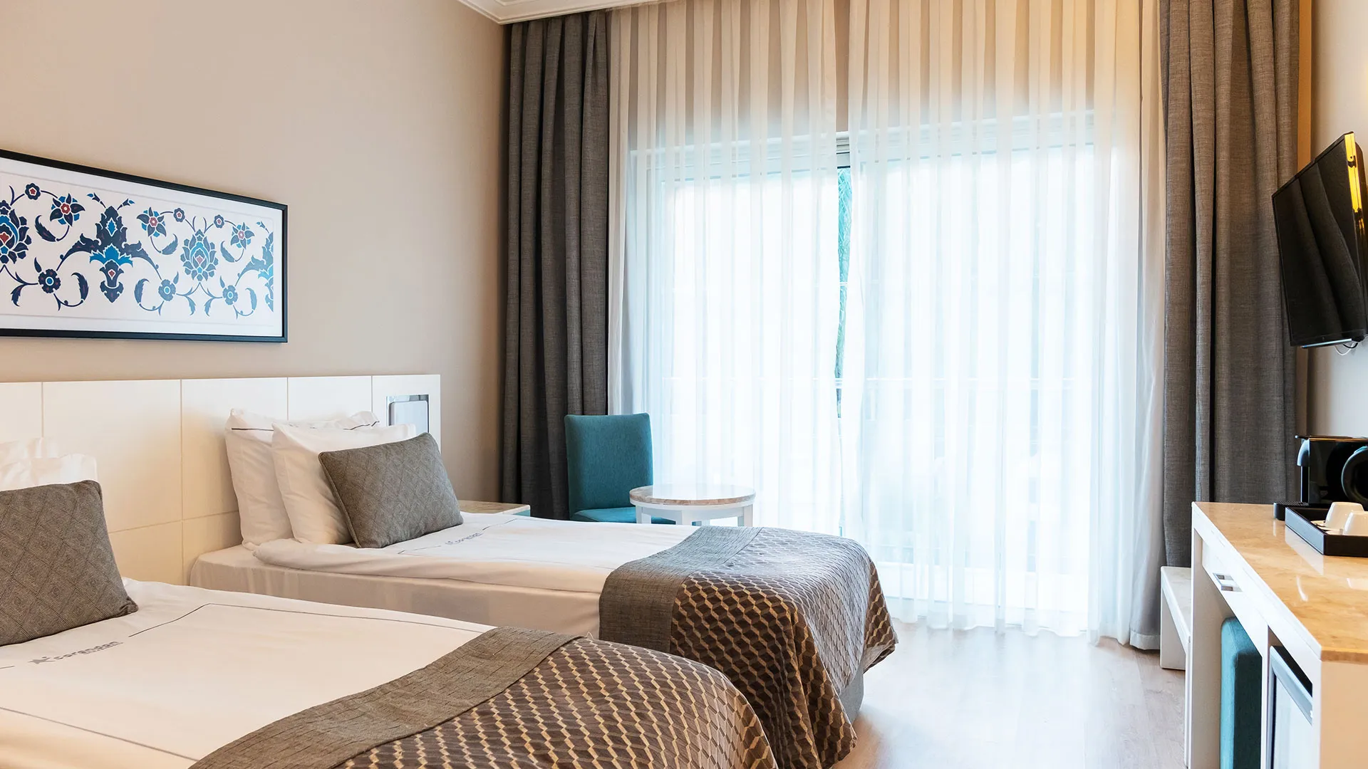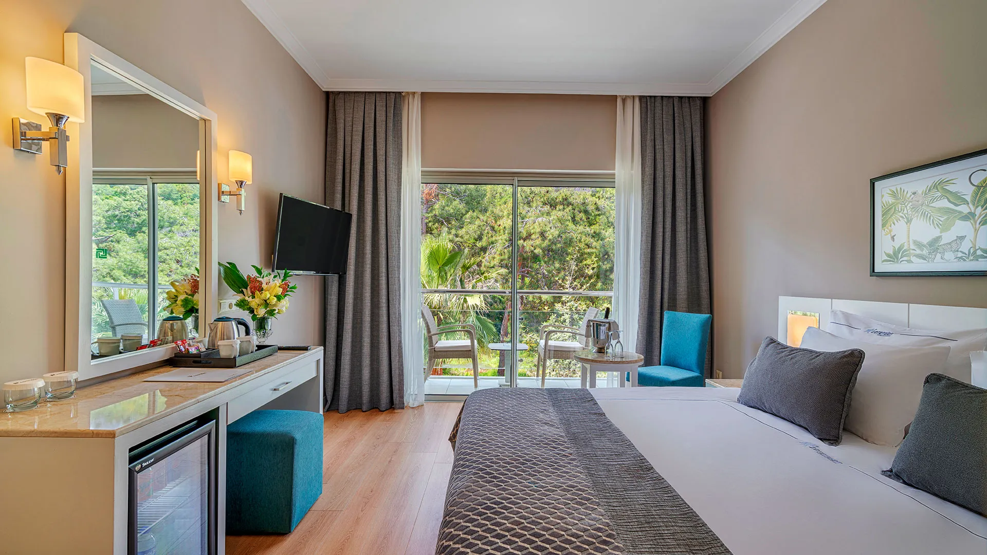 През април 2019 година всички стаи бяха напълно реновирани, представяйки се с декорации в уютни, успокояващи цветове. Чрез големите си прозорци всяка стая се наслаждава на изобилие от естествена светлина. Балконите, обзаведени с удобни мебели, предлагат гледка към Средиземно море или гората, за да се насладите на вълшебната природа на околността.