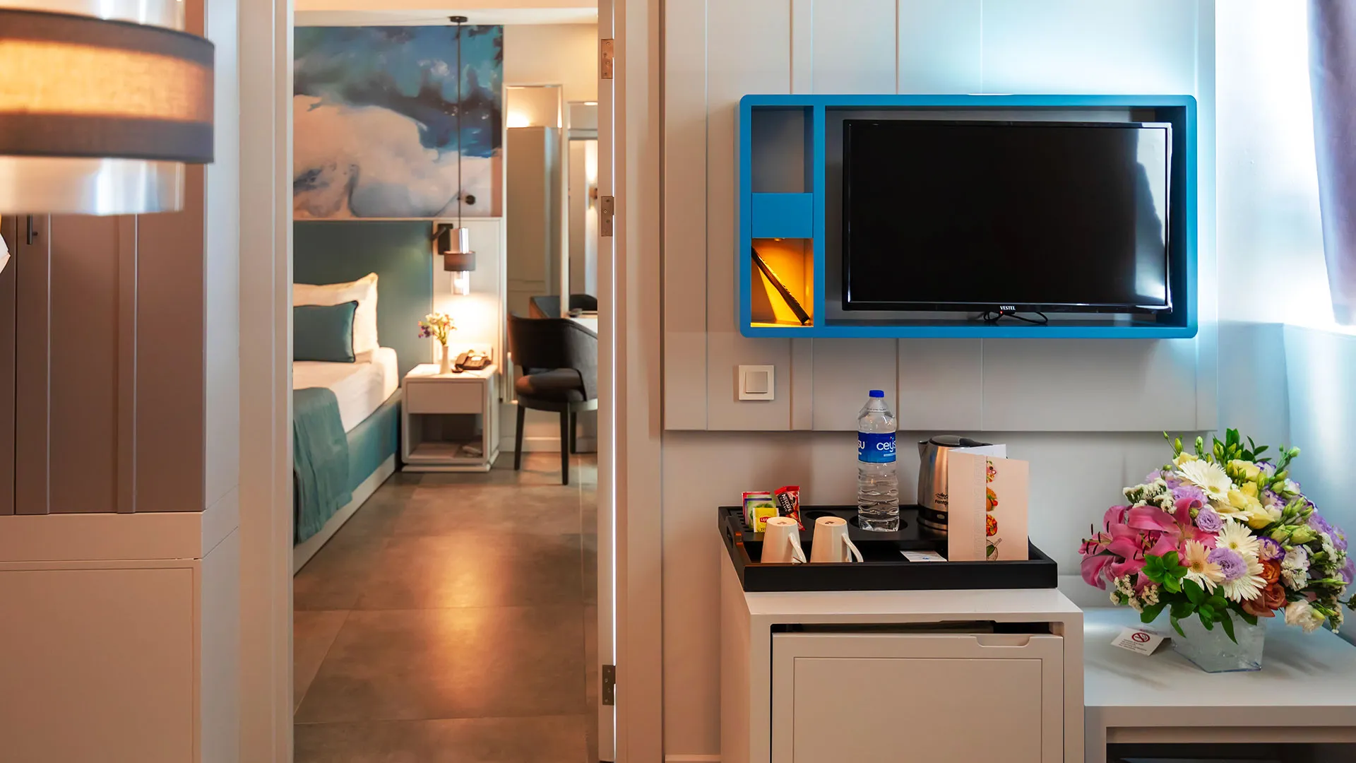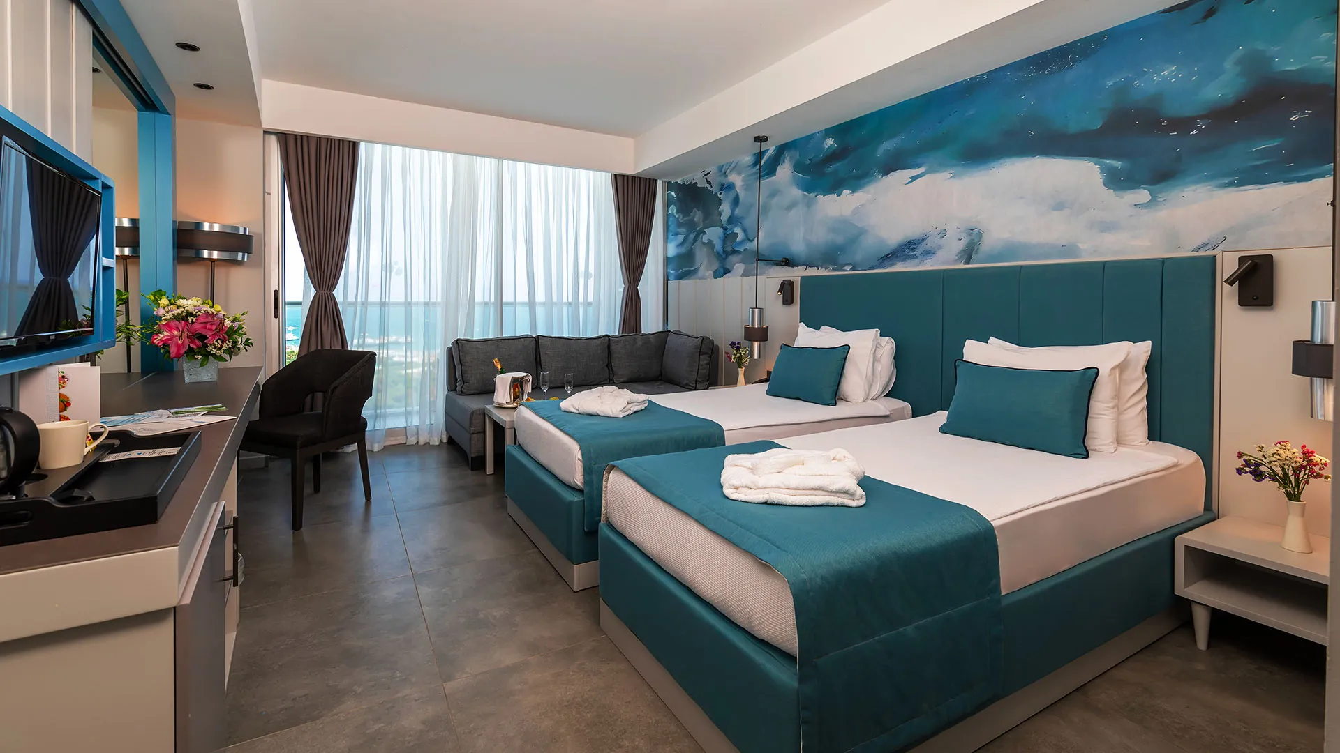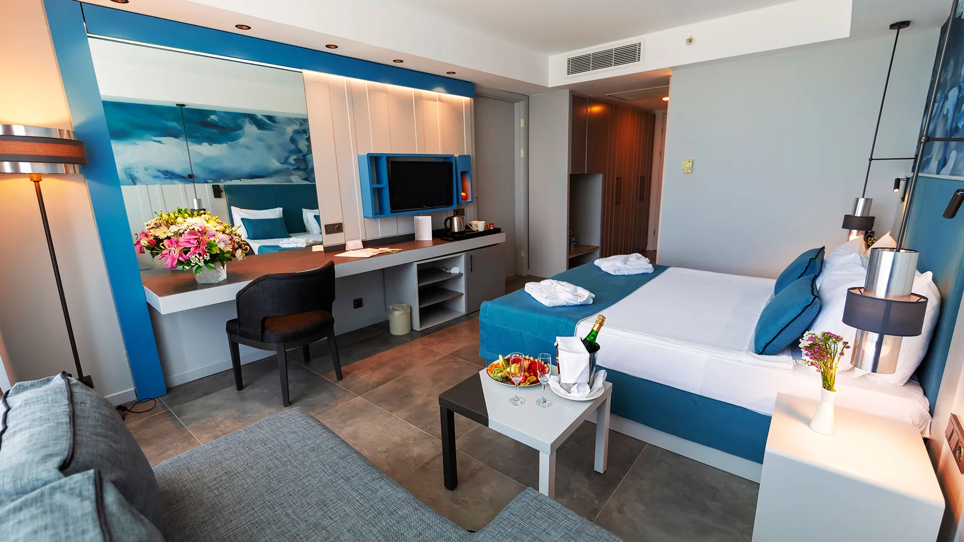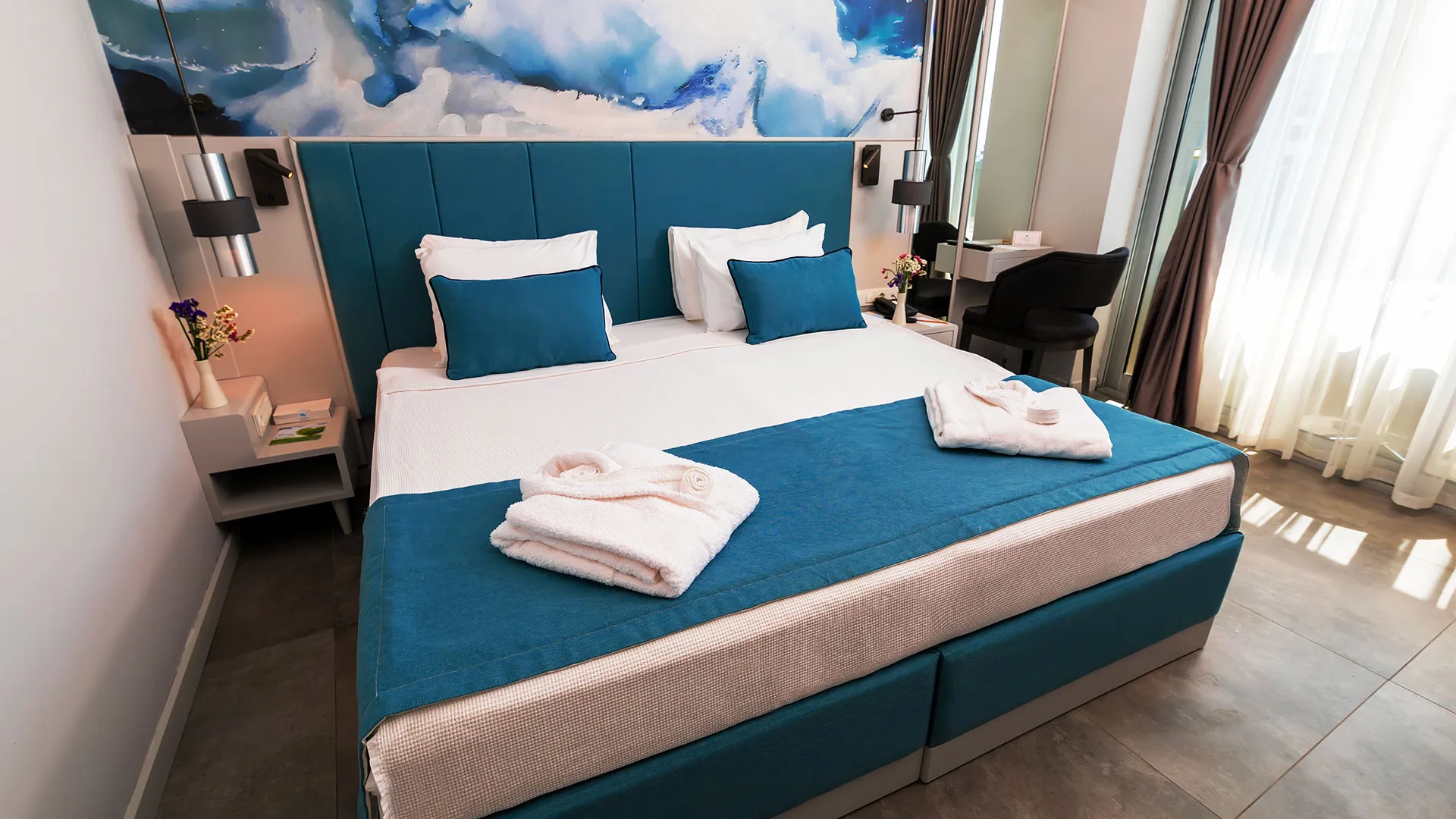 Всяка от модерните и просторни стаи за гости разполага с балкон, като някои от тях предлагат изглед към водата. Разположението на хотела е съвършено за спокойна и комфортна почивка.