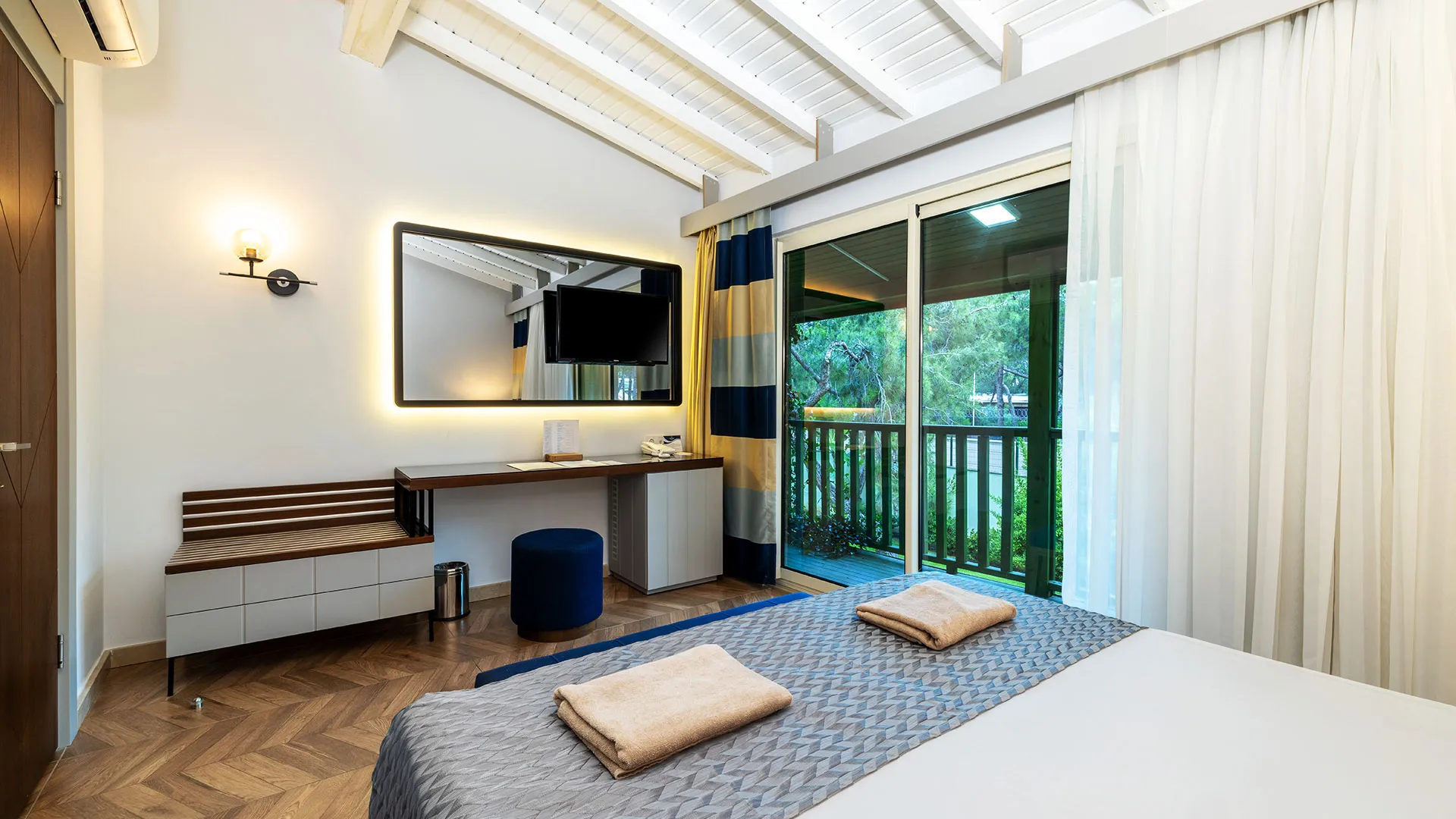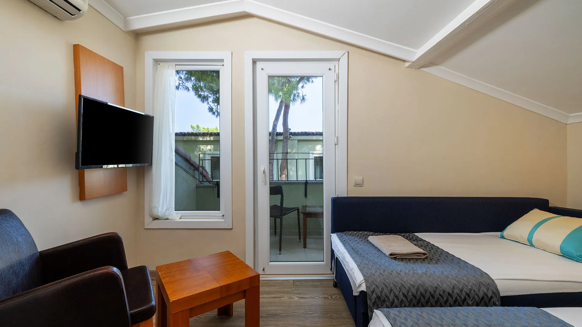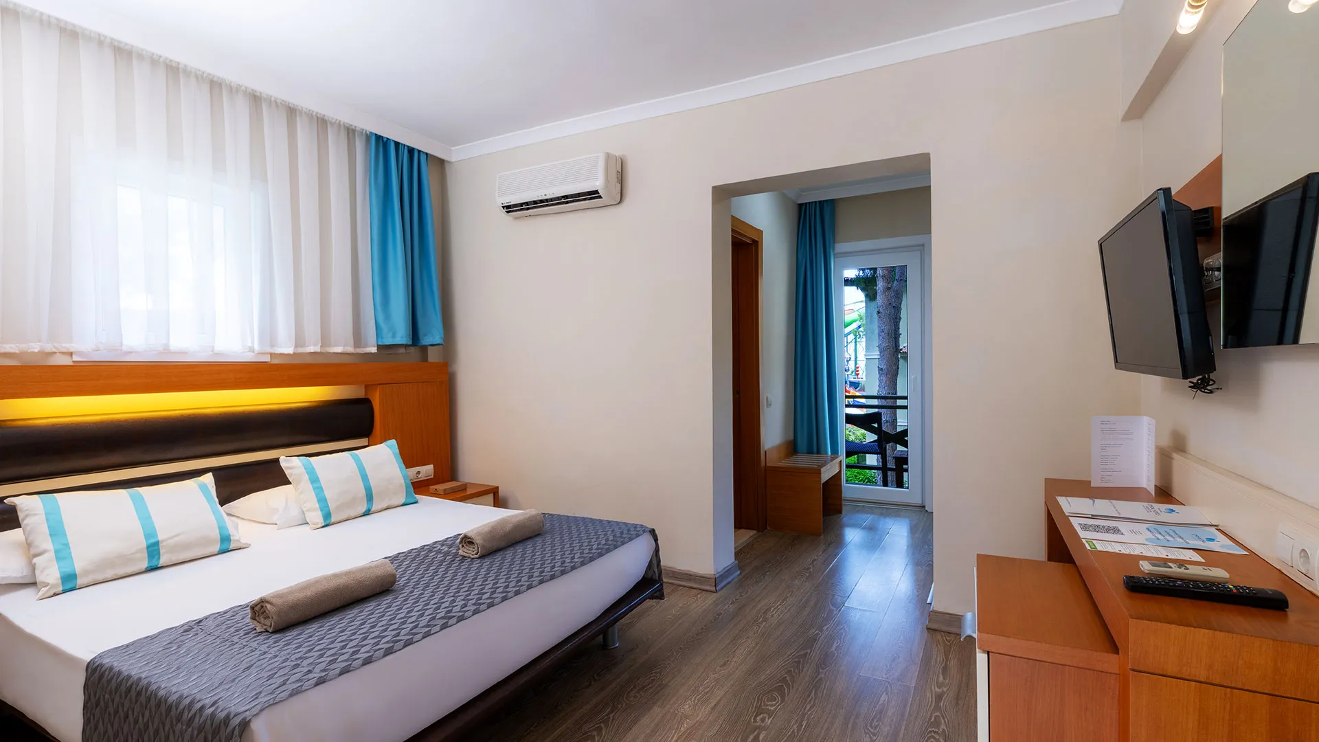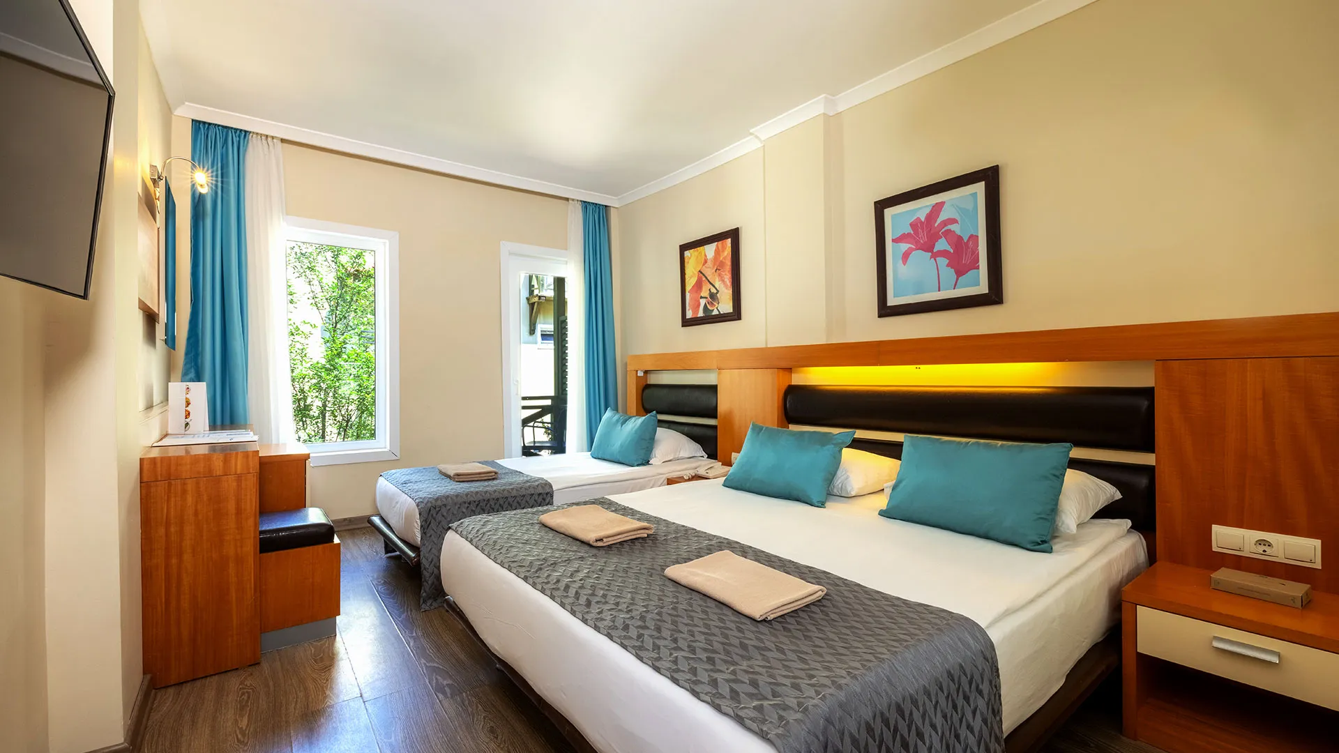 Стайте в хотелския комплекс Crystal Flora Beach се отличават с балкон, откъдето се разкрива изглед към градината или Средиземното море. Всяка стая разполага с LCD телевизор със сателитни канали.