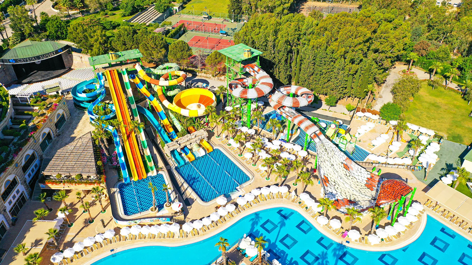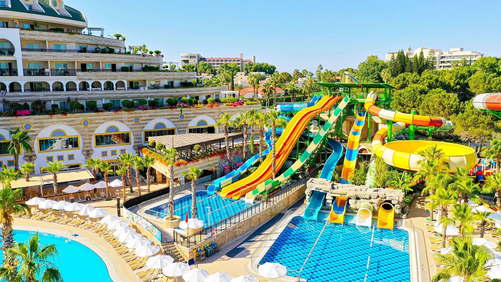 - Аквапарк: хотелът предлага воден парк с множество пързалки (например 11 пързалки според някои източници).