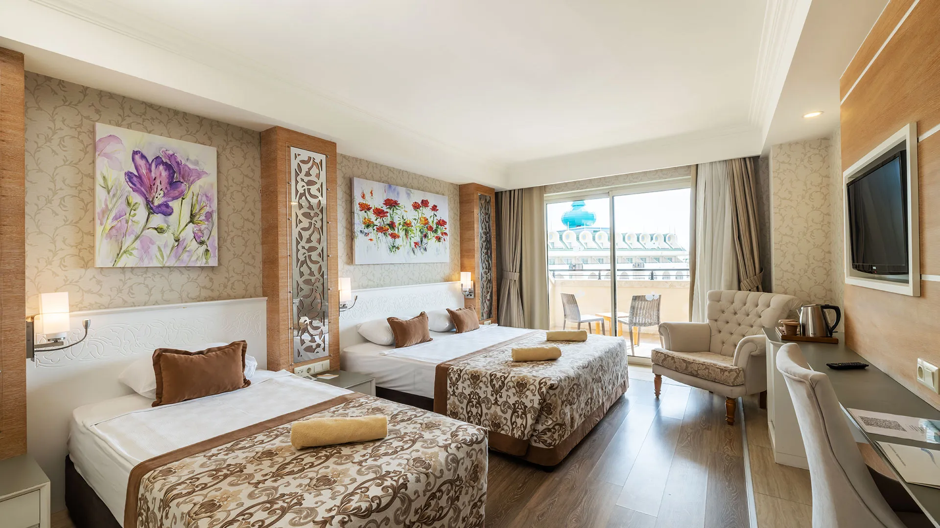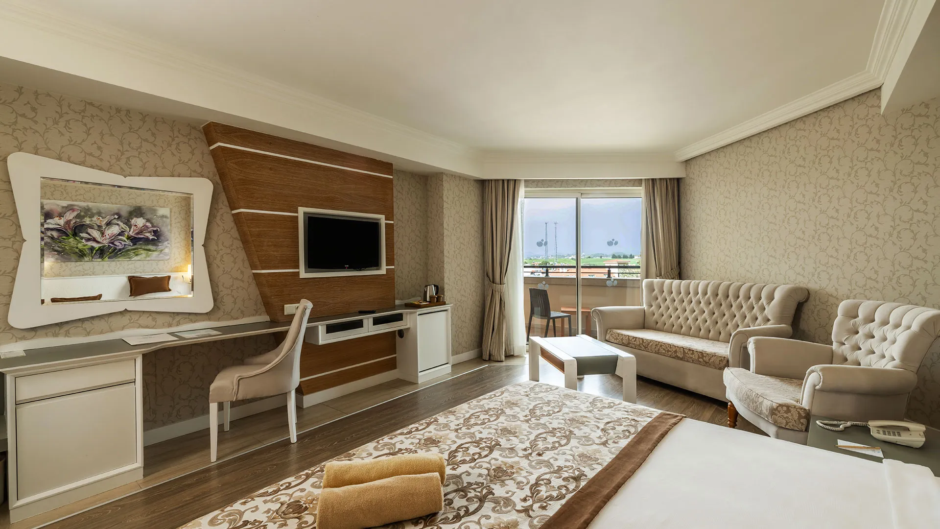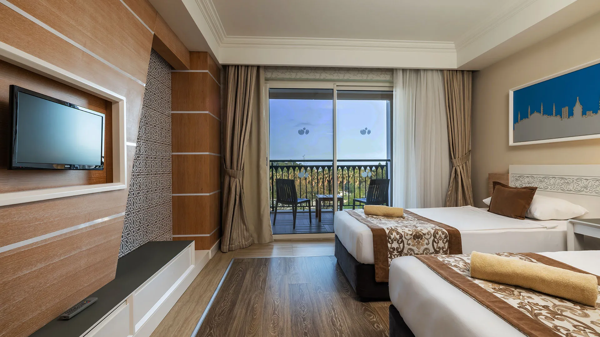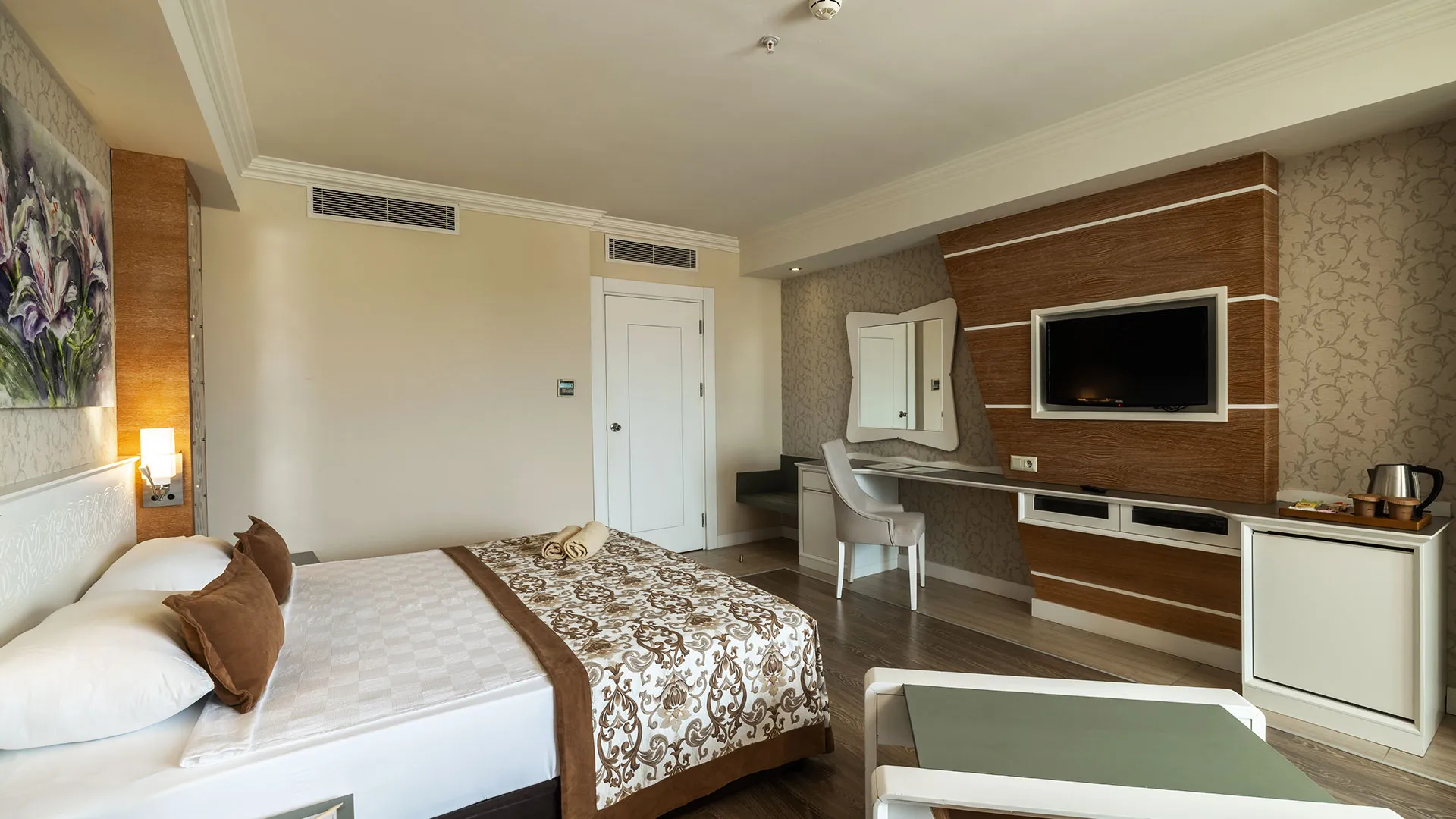 - Удобства в стаите: централен климатик, телевизор, телефон, минибар, сейф, комплект чай/кафе, баня с душ, сешоар, балкон или тераса.