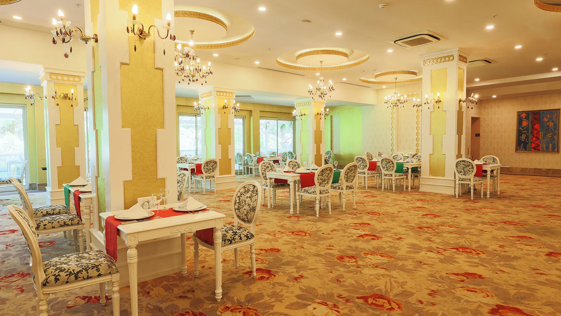 Гостите на Crystal Tat Resort имат възможност да се насладят на разнообразие от кулинарни изкушения в четирите ресторанта на място, включващи предложения от традиционната турска, мексиканската, италианската кухня и изисканата морска кухня. Освен това, барът край басейна и откритата дискотека, която работи през летните седмици, допълват разнообразието от възможности за забавление.