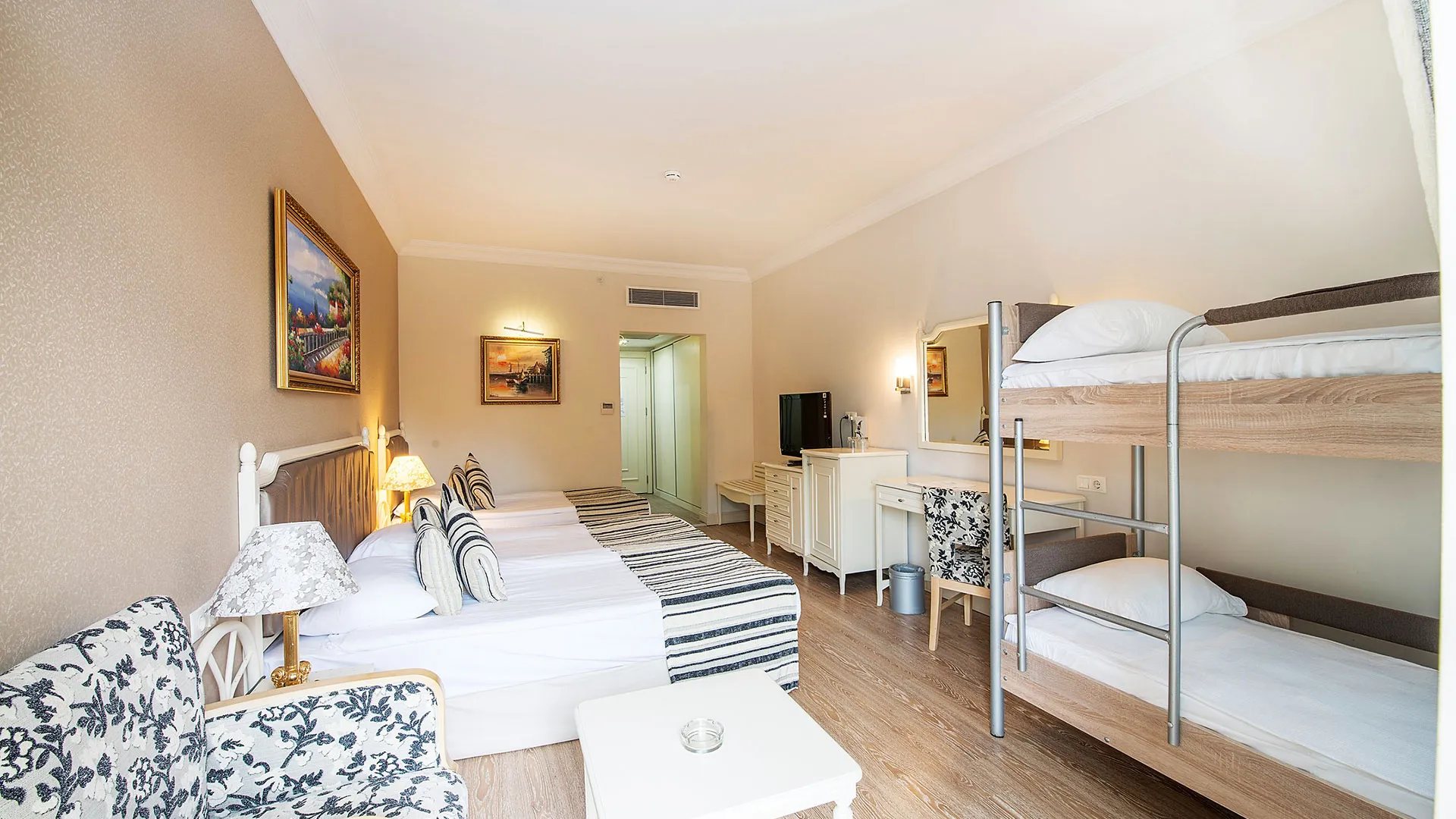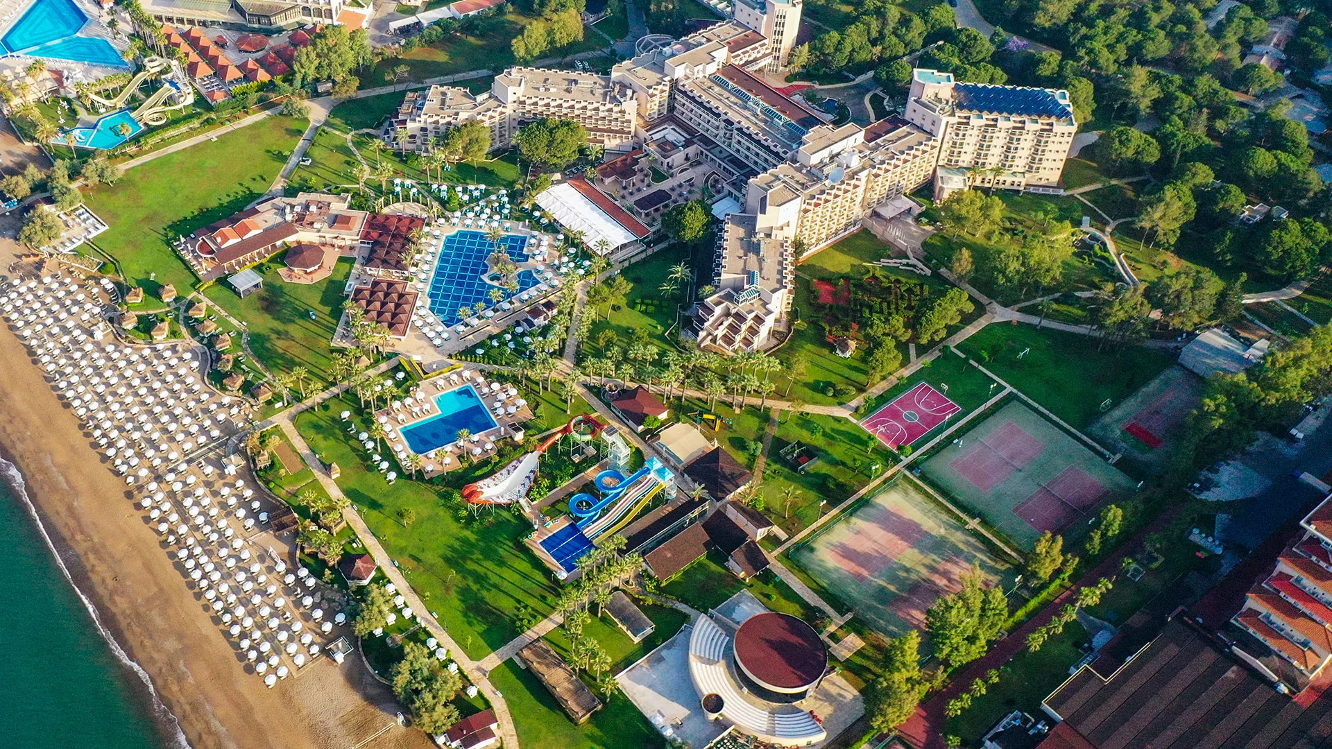 Сред удобствата за активен отдих на място са петте тенис корта, аквапаркът с водни пързалки и изцяло оборудваният здравен и фитнес център. За желаещите да открият околните забележителности, древният амфитеатър Аспендос е на кратко разстояние с кола, предлагайки на посетителите уникално историческо преживяване.