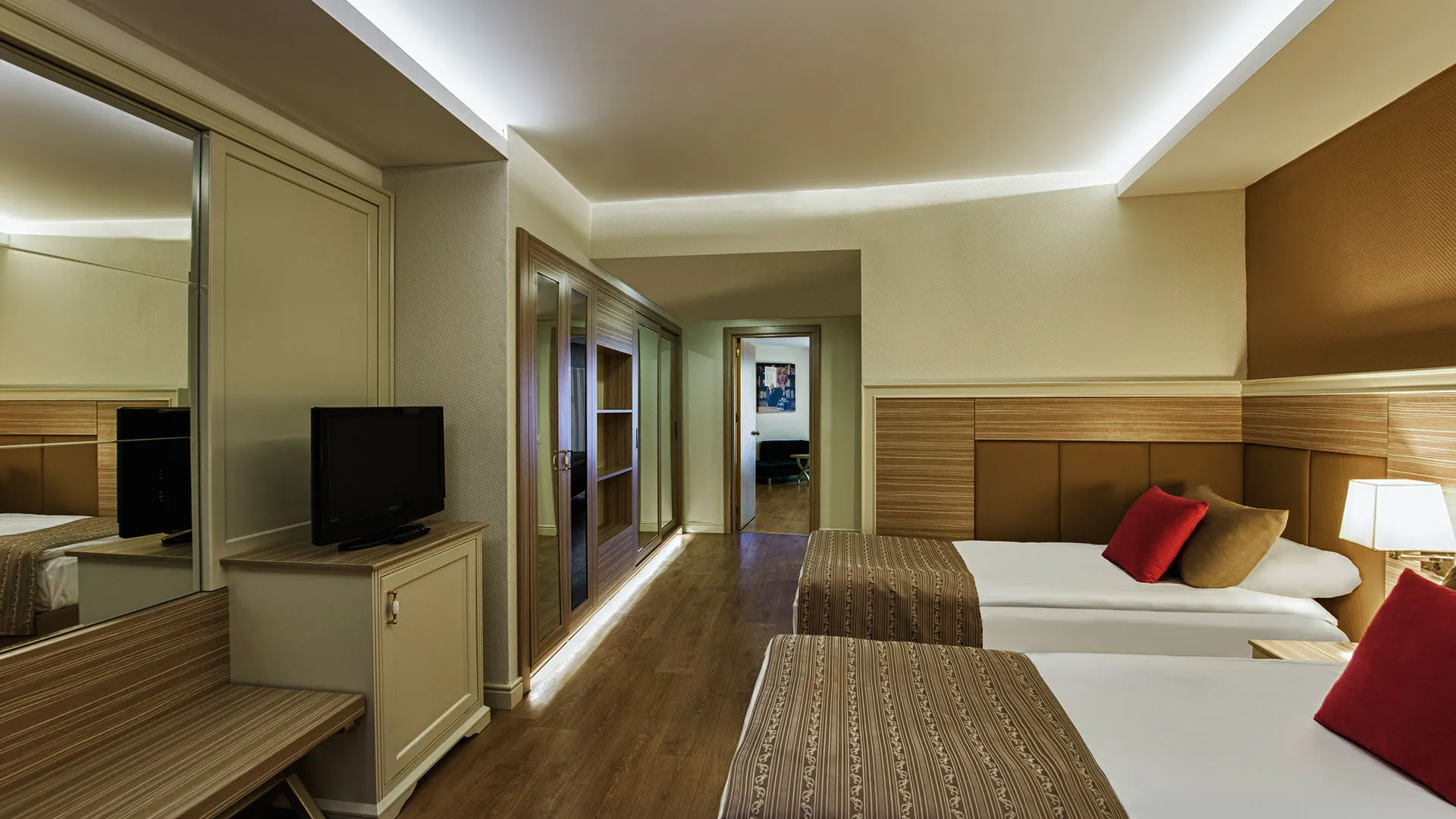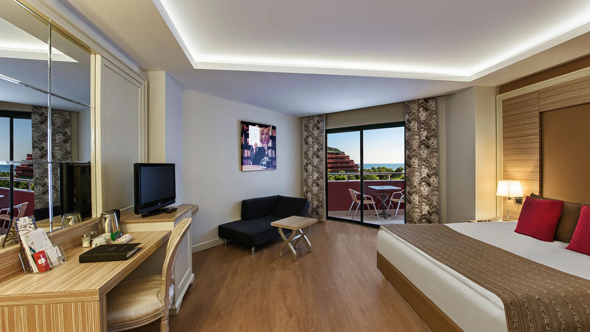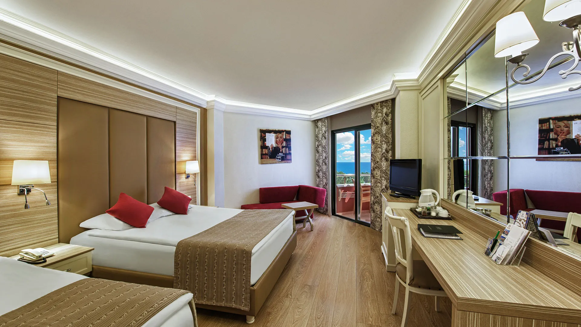 Настаняването в Delphin Deluxe включва различни типове стаи и апартаменти, всички обзаведени с внимание към детайлите и предоставящи комфорт и лукс. Стаите са оборудвани с модерни удобства като климатик, телевизор, минибар, сейф и балкон или тераса с изглед към морето или красивите градини на хотела. Стилният интериор и уютната обстановка създават идеално място за релаксация и отдих.
