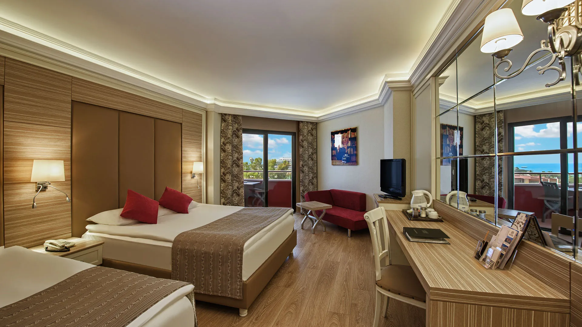 Delphin Deluxe се намира на първа линия до морето и разполага със собствен частен пясъчен и чакълест плаж, оборудван с шезлонги и чадъри. Гостите могат да се насладят на спокойствието и красотата на Средиземно море, като същевременно се възползват от разнообразните водни спортове и дейности, предлагани на плажа. Хотелът е удобно разположен на около 90 километра от летище Анталия и на около 32 километра от центъра на Алания, което осигурява лесен достъп до основните туристически атракции и забележителности в региона.