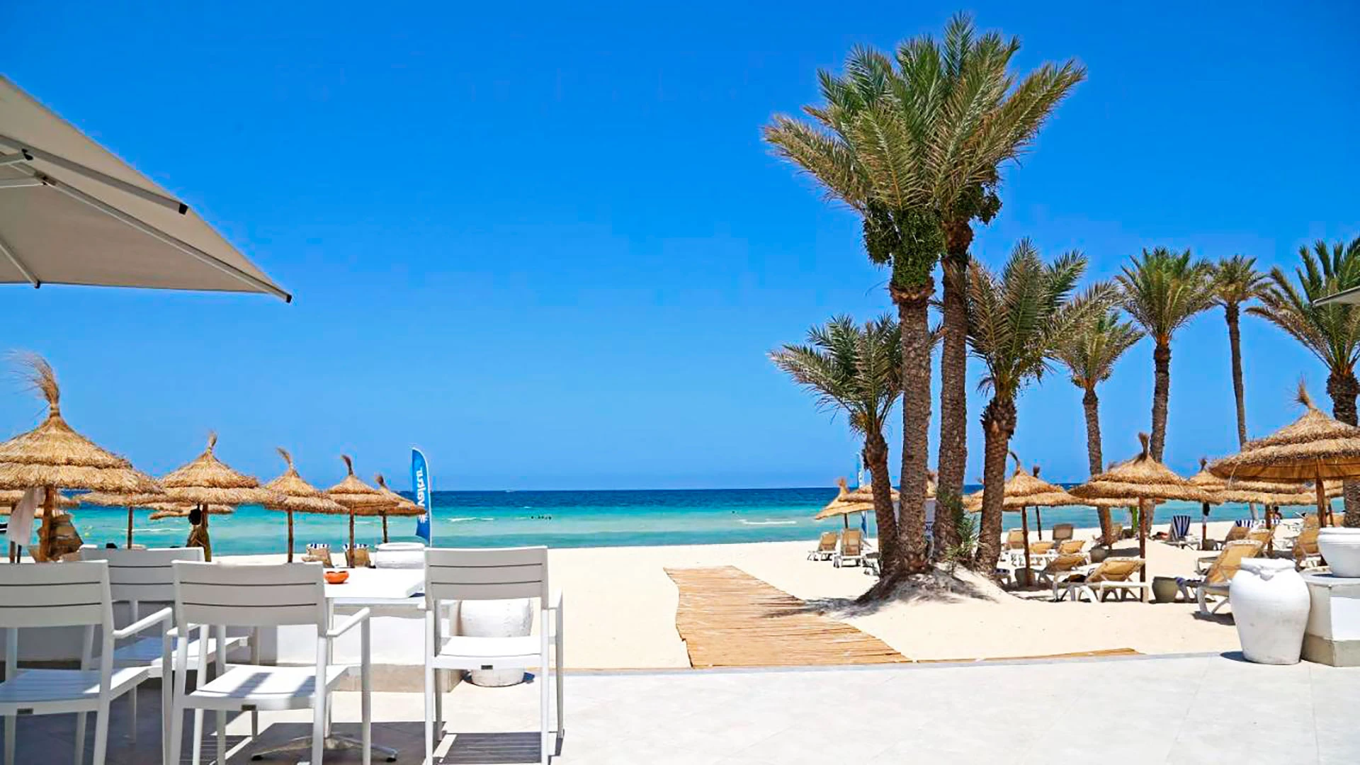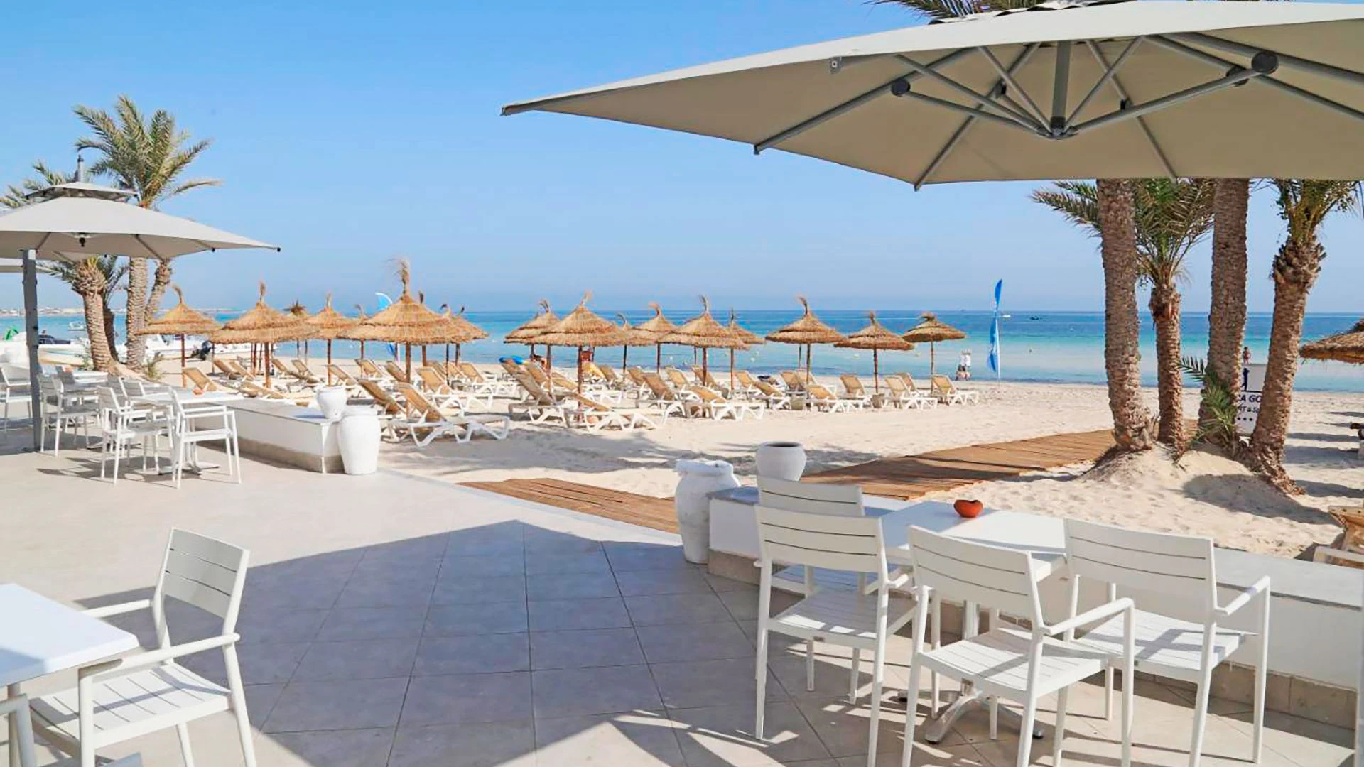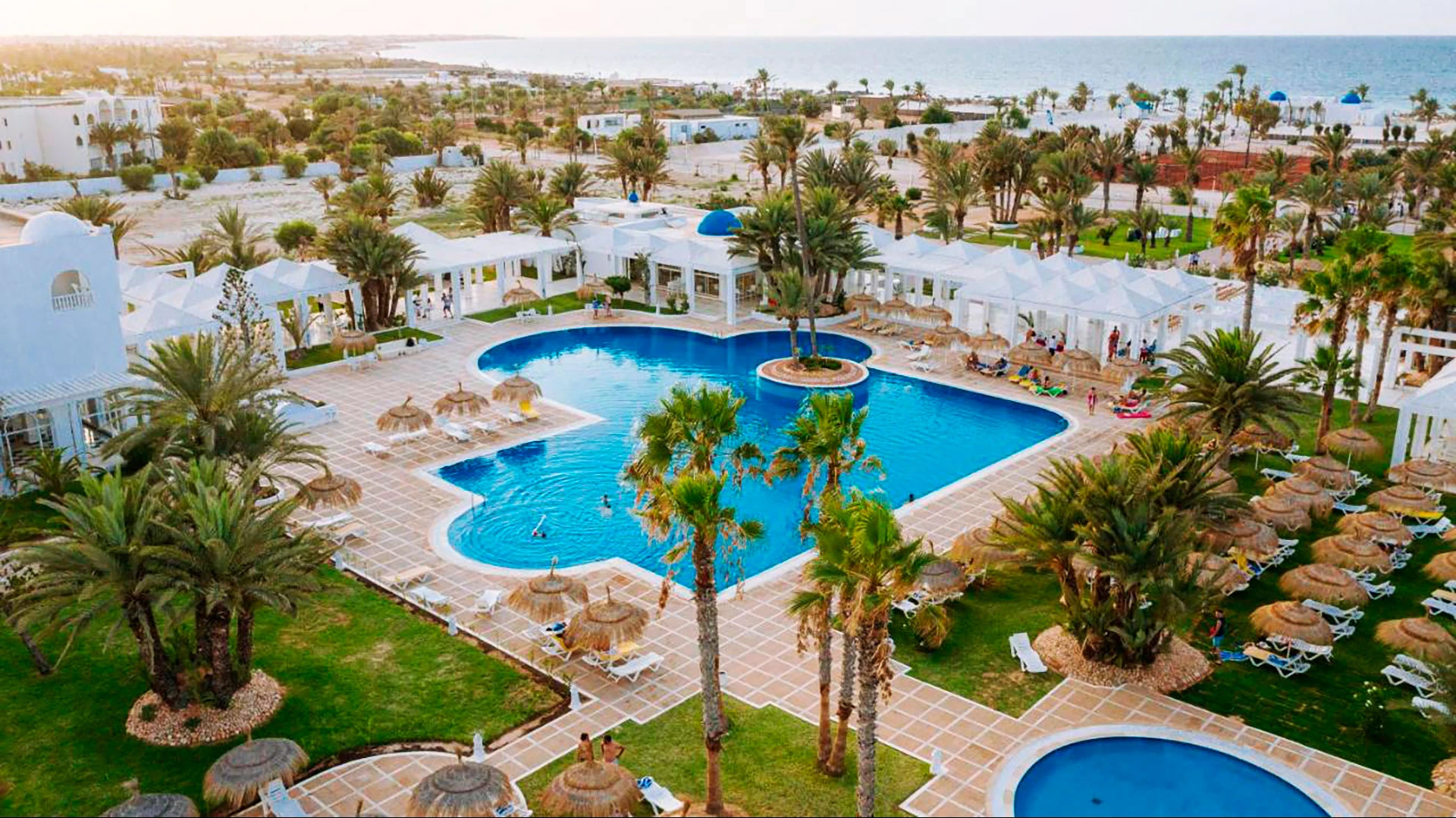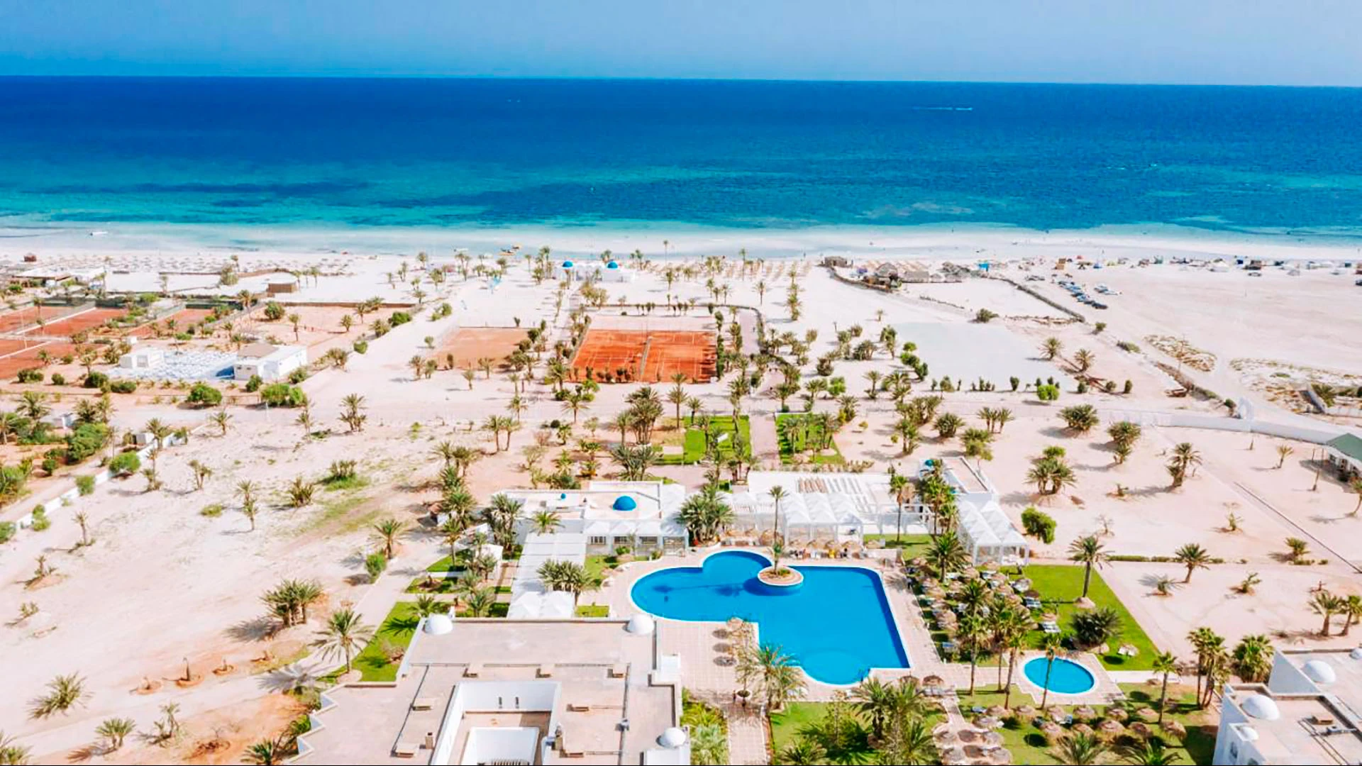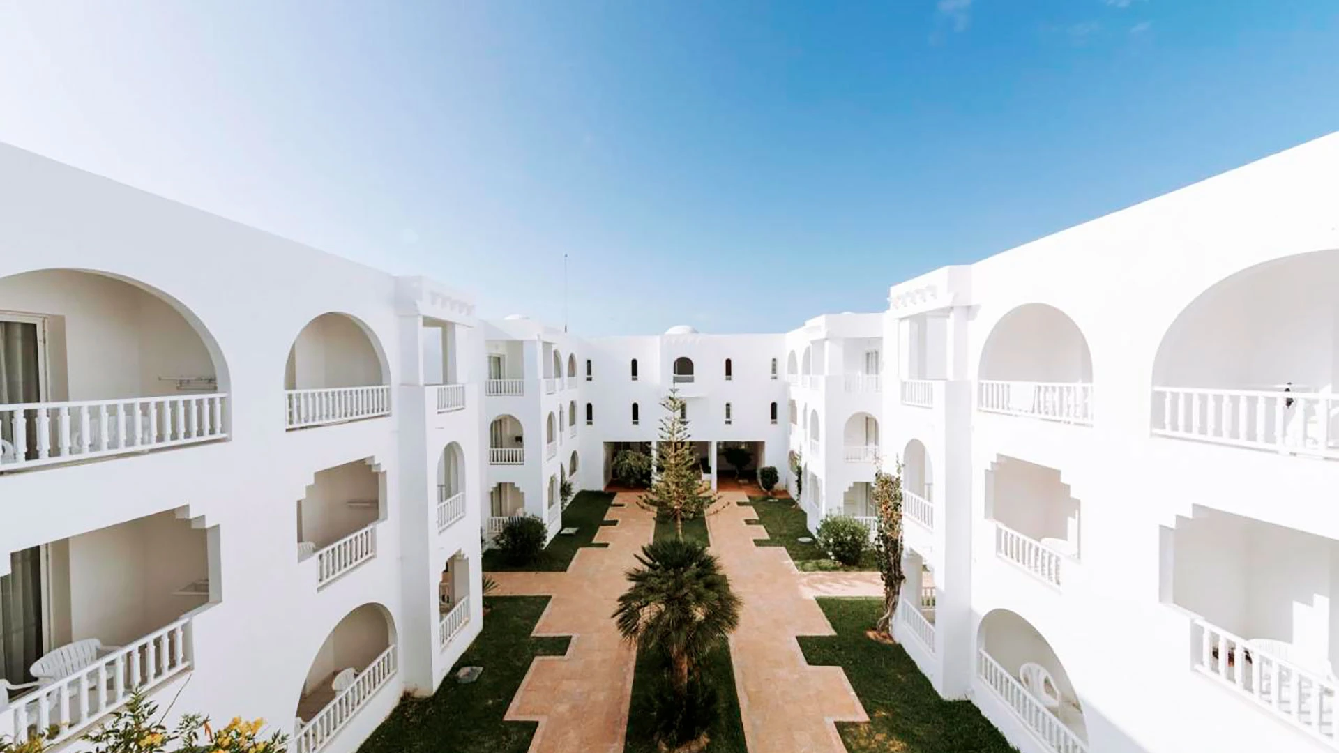Намира се на 5 км от Мидун, на 18 км от Хумт Сук и на 27 км от летището, на брега на морето, до красивия плаж с бял пясък Сиди Марез. Последната реновация на стаите е от 2019 год.