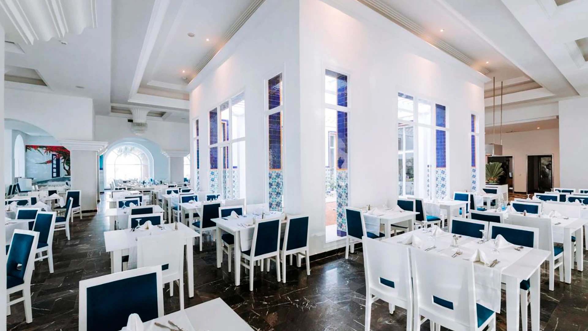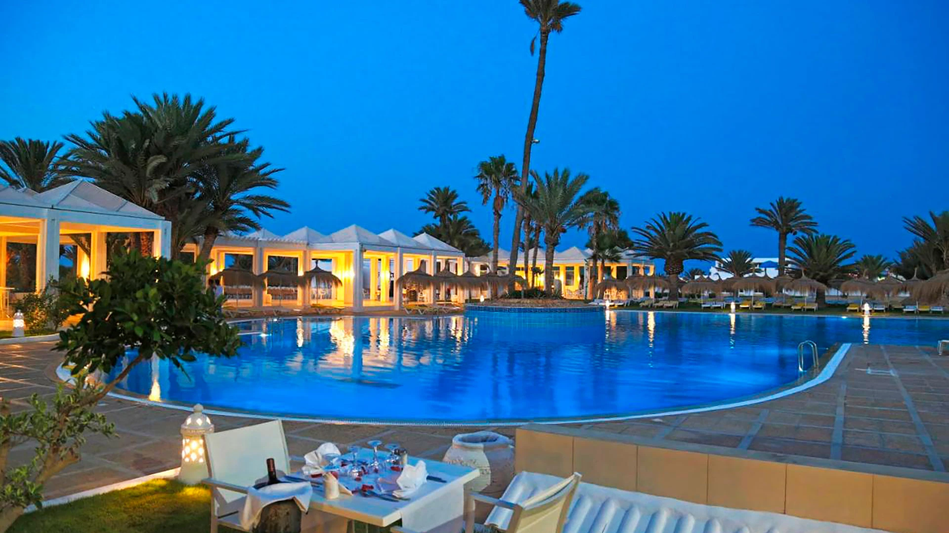 Основен ресторант El Menzel, а ла карт ресторант Il Gusto с тунизийска и средиземноморска кухня (платен, 1 безплатно посещение за престой, след предварителна резервация), а ла карт ресторант La Pergola с италианска кухня (след предврителна резервация), а ла карт ресторант на плажа Le Sporting Beach (след предварителна резервация, от юни до септември), лоби бар Blue, бар басейн Granada (май-октомври), бар на плажа Le Sporting Beach (май-октомври), диско бар Le Mirage (веднъж седмично), мавританско кафене Andalusia (наргиле - срещу заплащане), открит басейн с детска зона, закрит басейн (отопляем през зимата), СПА център, конферентна зала, магазини, банкомат.