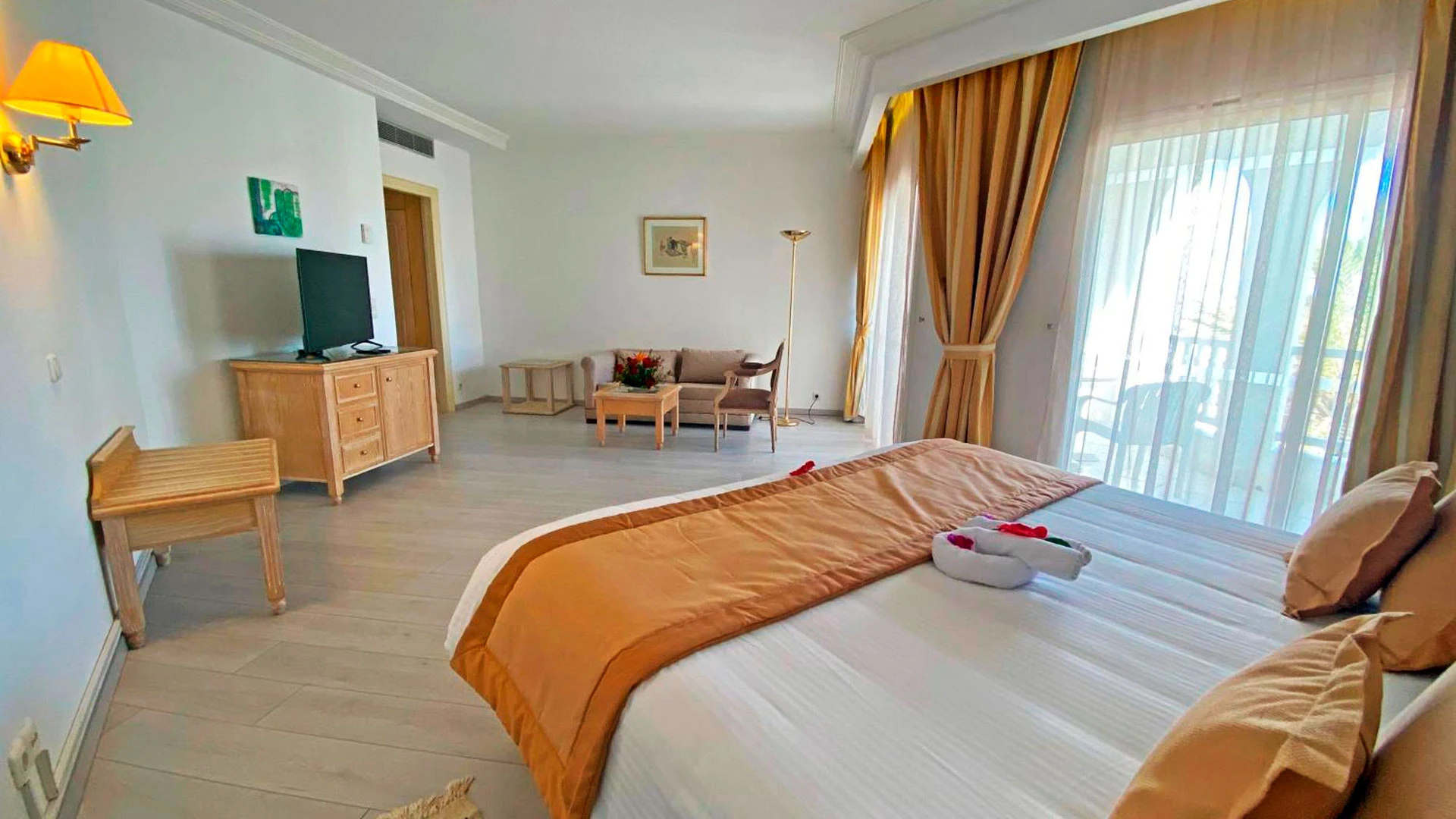 Всички стаи са оборудвани с климатик, телевизор, телефон, сешоар, минибар (зареден в деня на пристигане с бутилка вода и безалкохолна напитка), сейф, Wi-Fi, баня с душ/вана, балкон/тераса, тоалетни принадлежности. Почистване на стаите - всеки ден. Като допълнително легло се предоставя разтегателен диван.