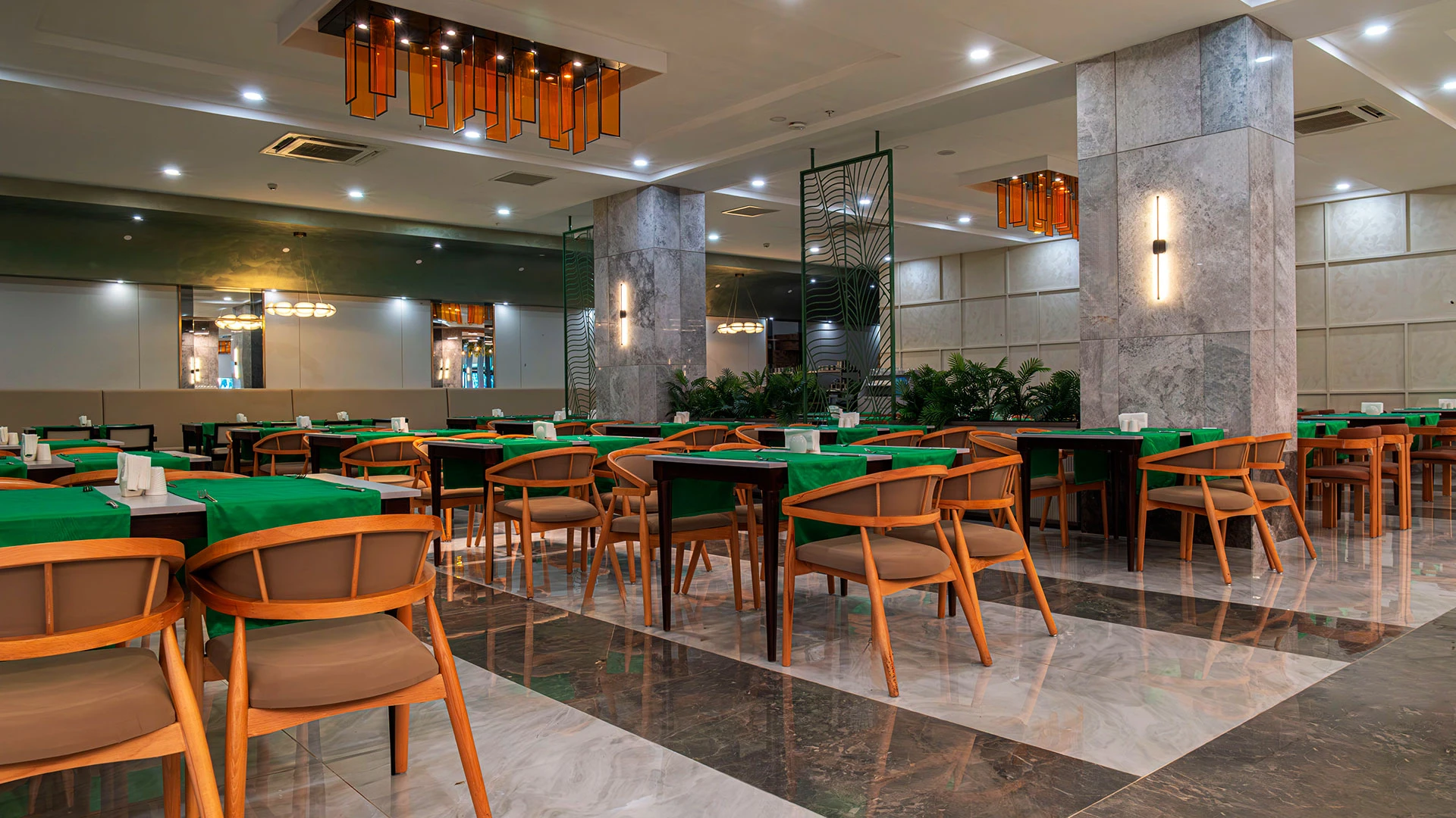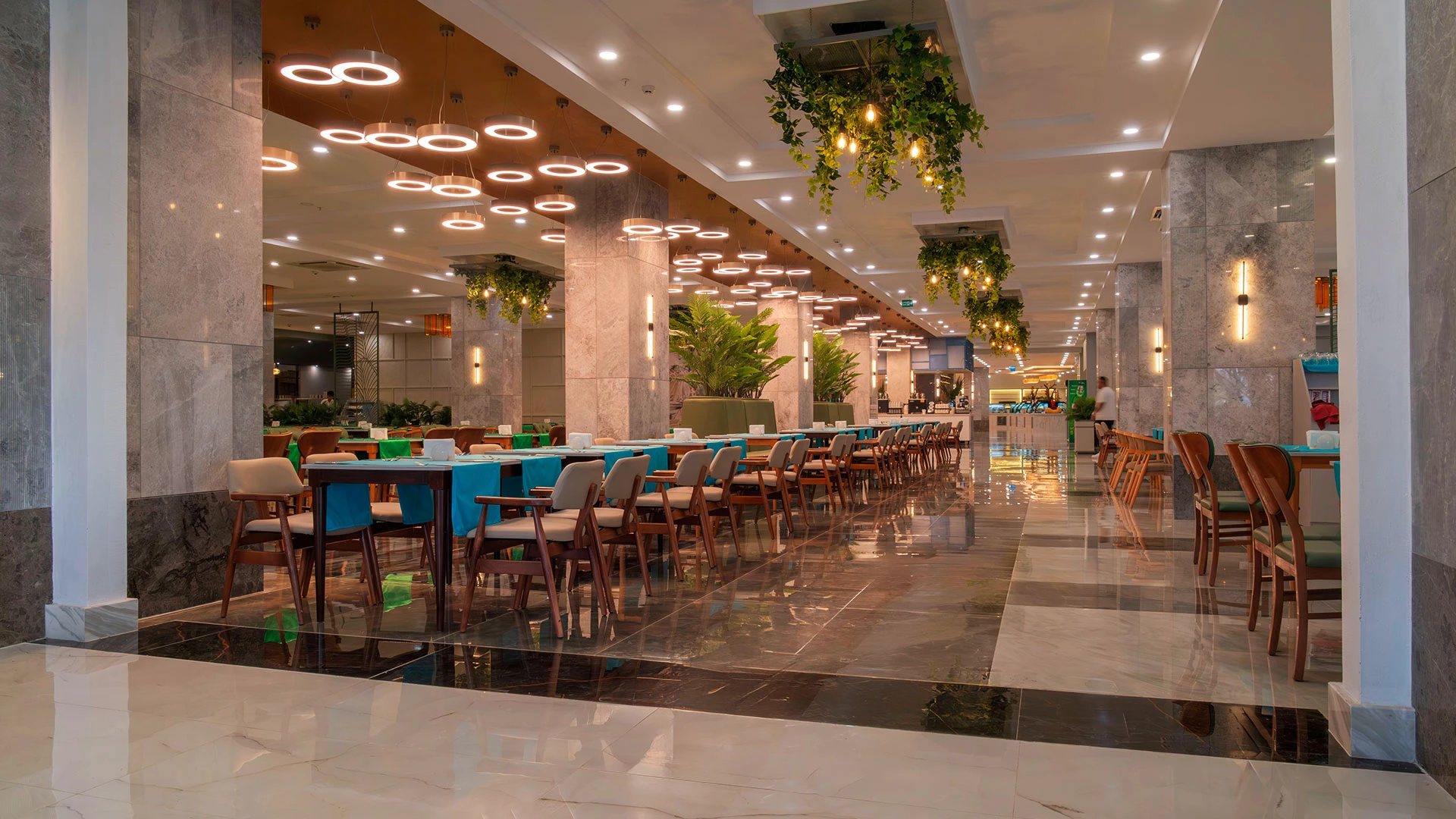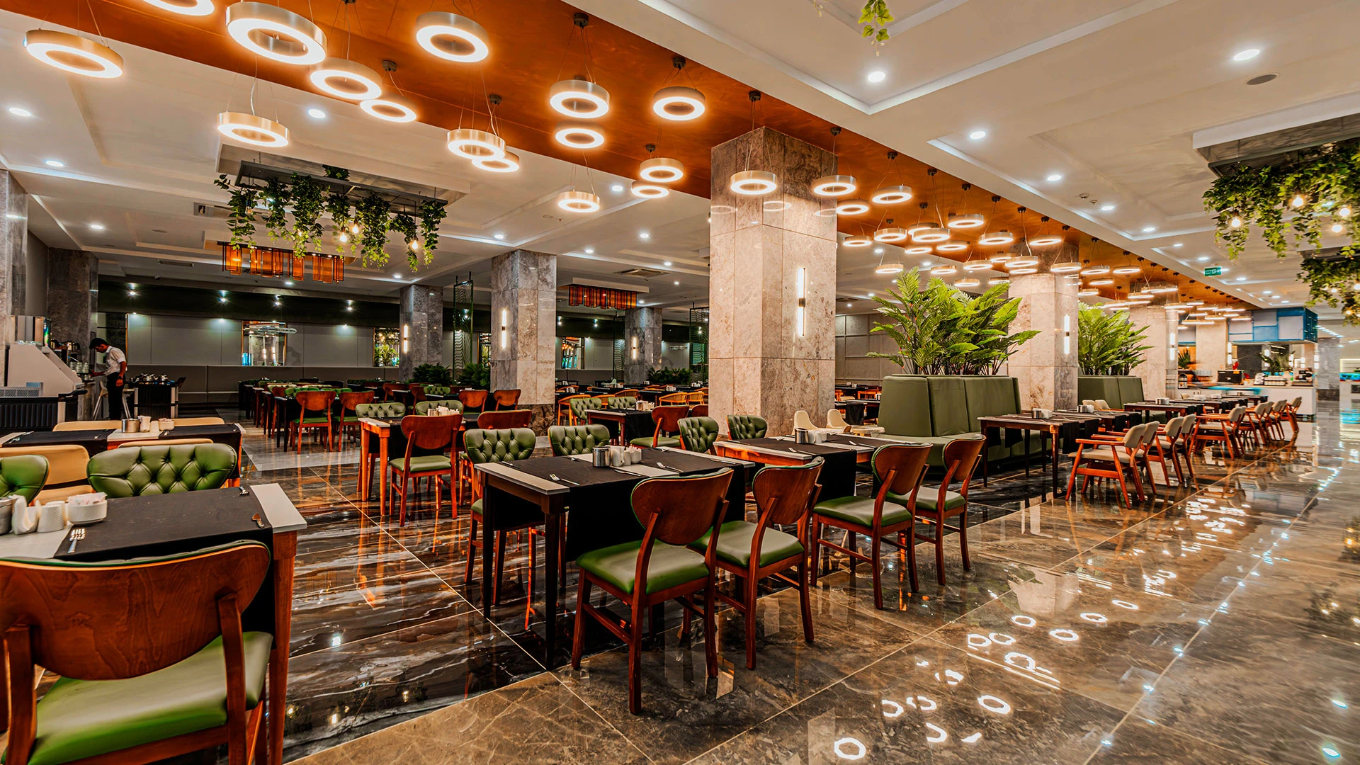 Храненето включва богато разнообразие от закуски – шведска маса, континентална или английска/ирландска, както и ресторант с международна кухня. На разположение са също барове и възможности за освежаващи напитки през целия ден.