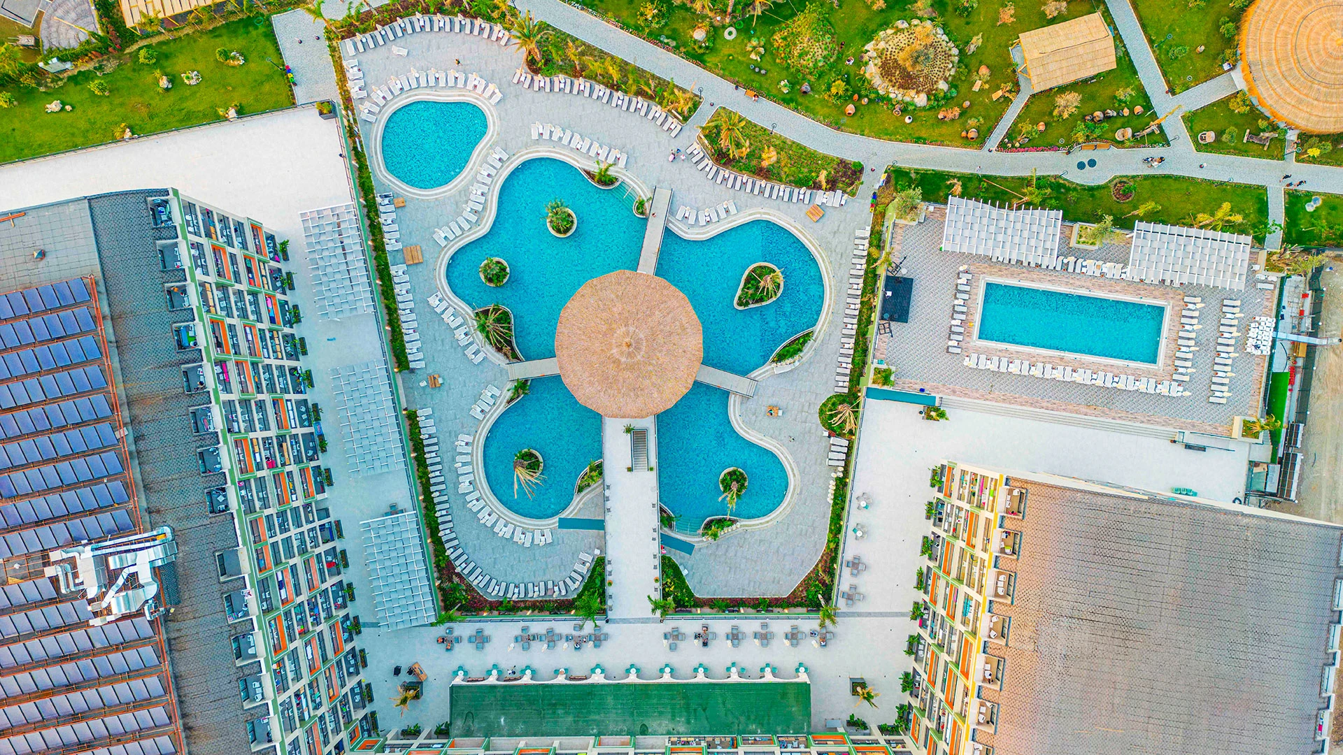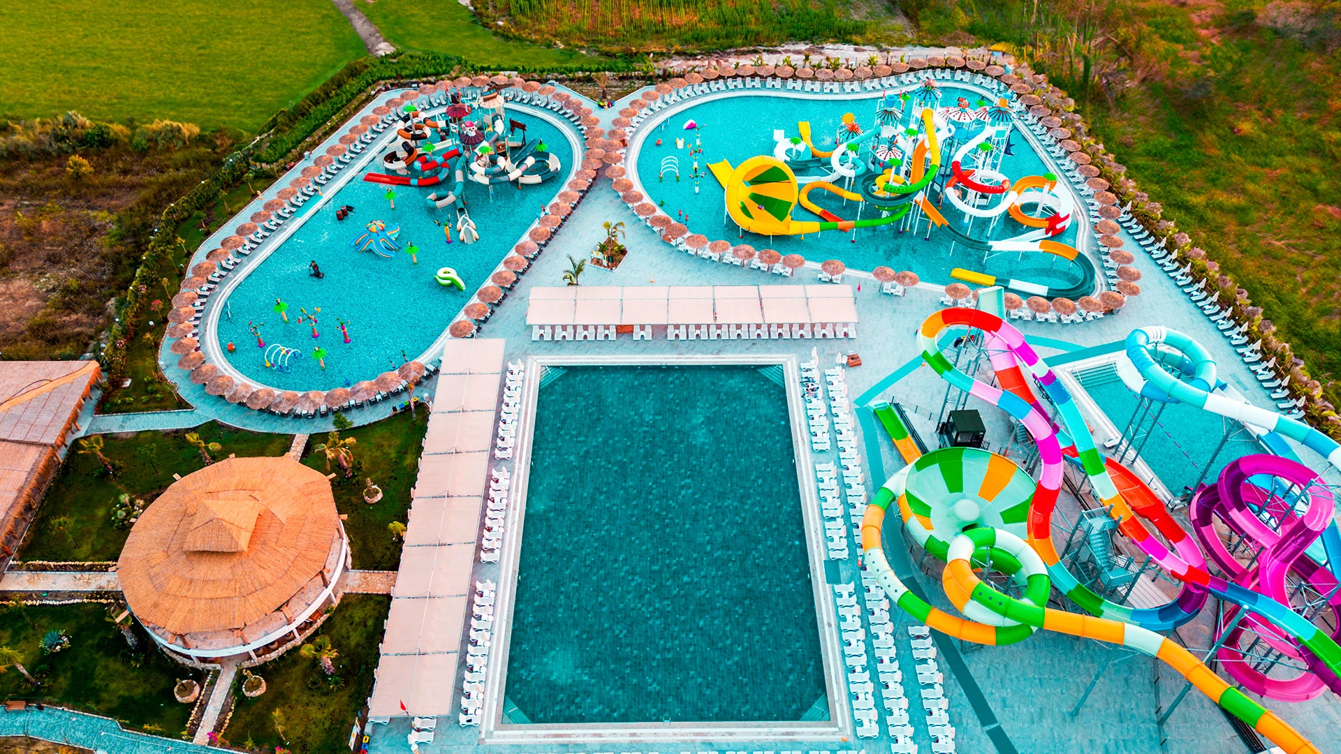 Комплексът разполага със сезонен открит басейн, впечатляващ аквапарк с водни пързалки и просторни зелени площи. Гостите могат да се насладят на разнообразни активности през деня и вечерни развлечения, а за децата е осигурен детски клуб с интересни занимания.