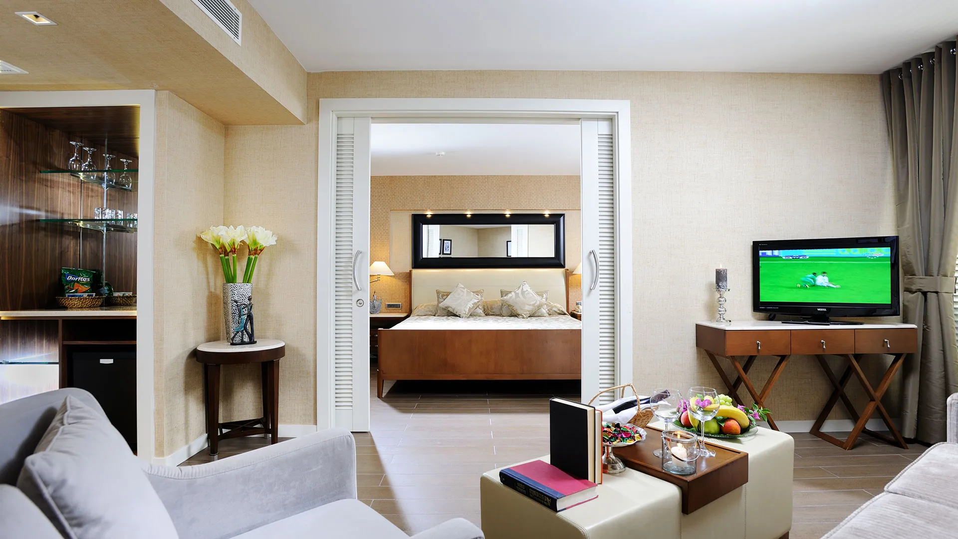 Настаняването в Elegance Hotels International Marmaris включва разнообразие от стилно обзаведени стаи и апартаменти, които предоставят всички съвременни удобства за максимален комфорт. Всяка стая е оборудвана с климатик, телевизор с плосък екран, минибар, сейф и безплатен Wi-Fi. Балконите и терасите предлагат спиращи дъха гледки към морето, басейните или красиво поддържаните градини, създавайки атмосфера на спокойствие и релакс.