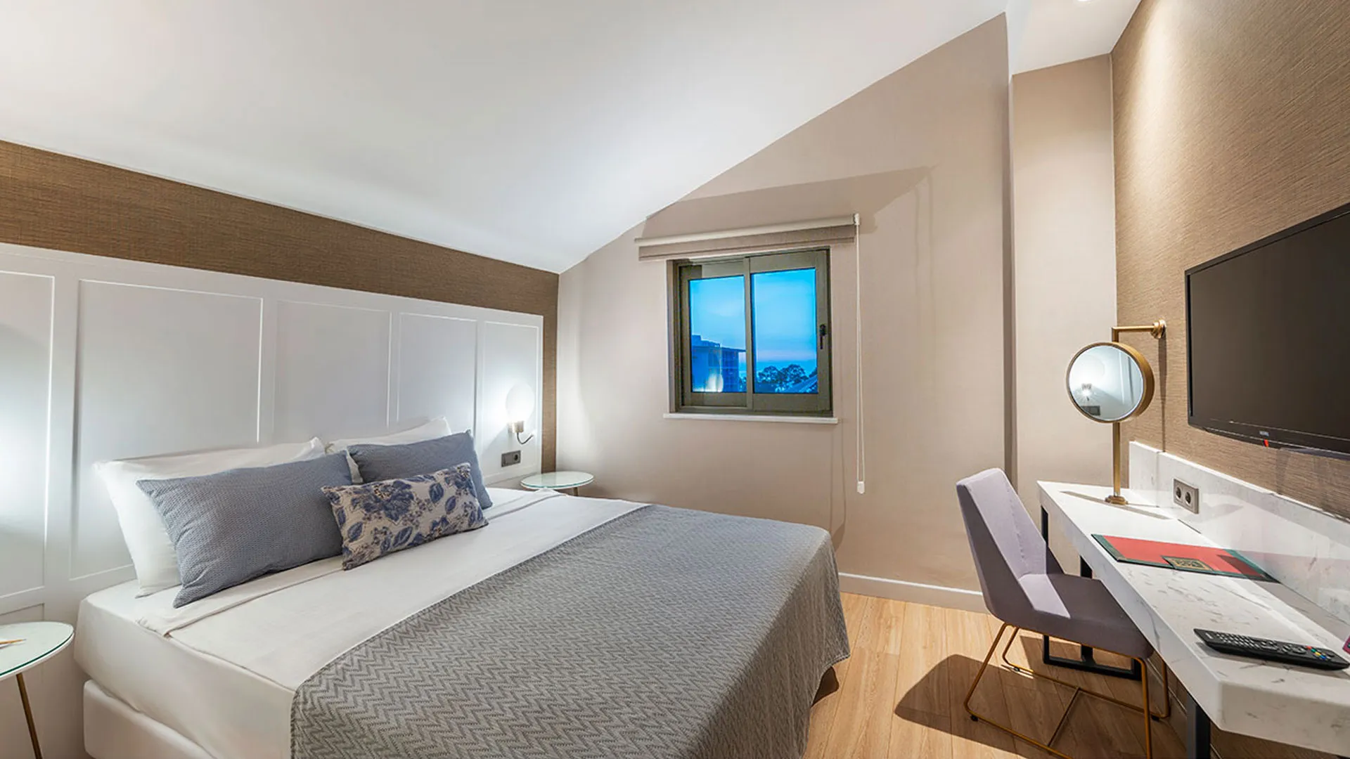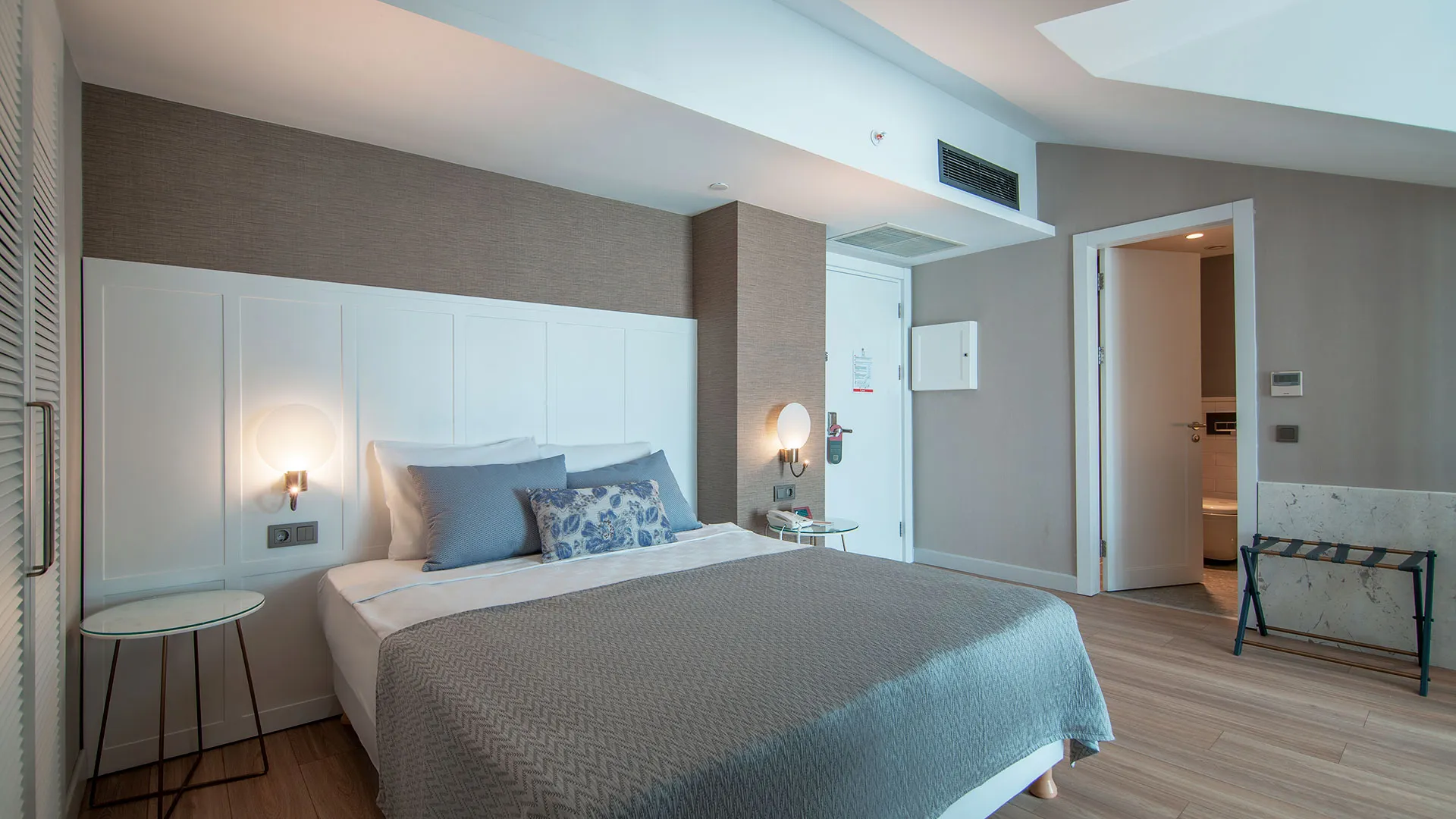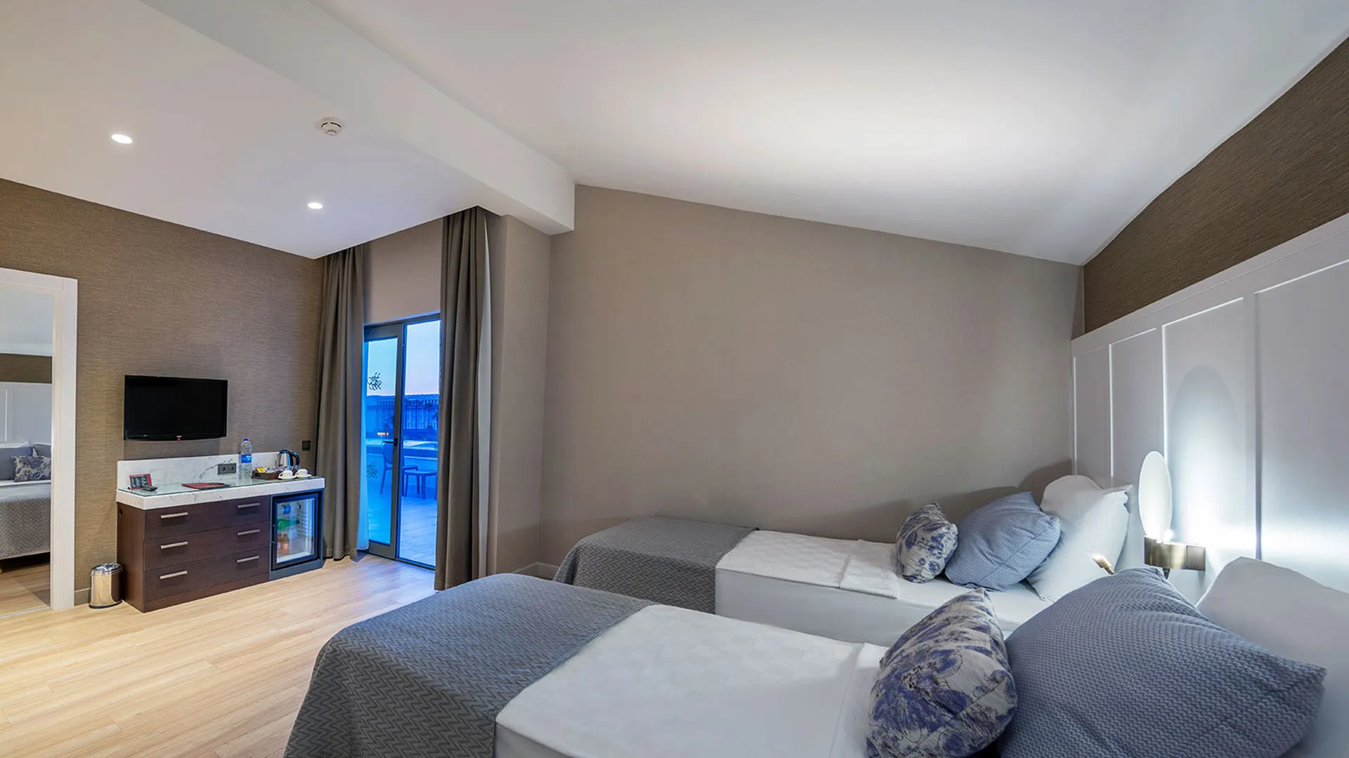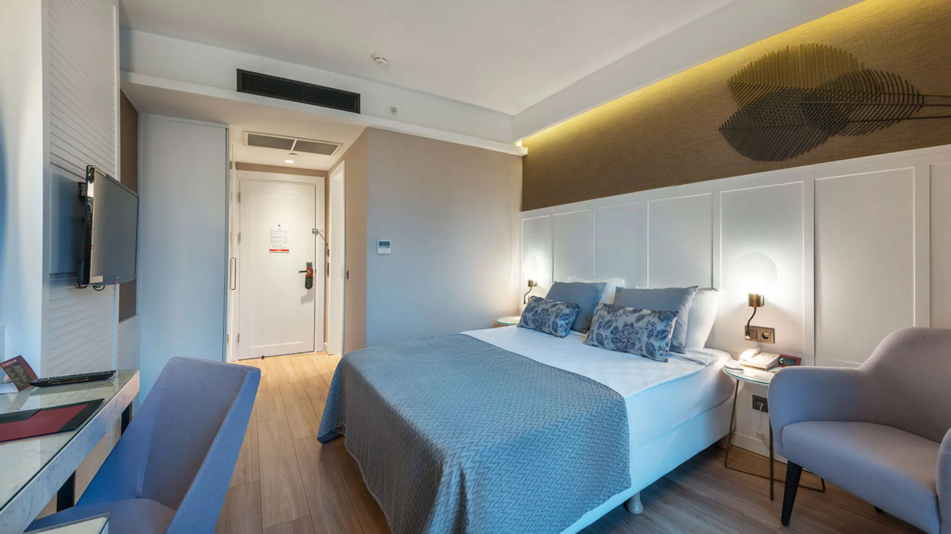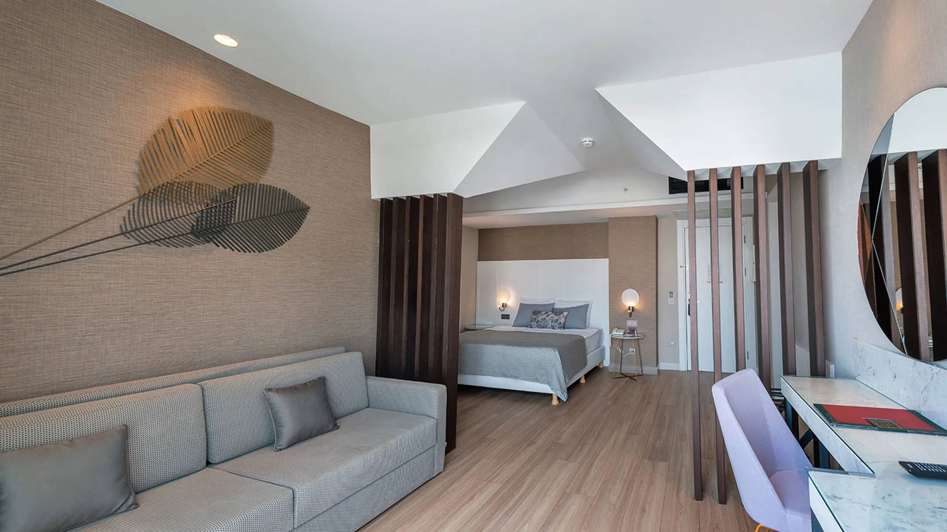 Хотелът разполага с модерно обзаведени стаи и апартаменти, оборудвани с всичко необходимо за удобство и релаксация на гостите. Всеки от тях предлага уютна обстановка и прекрасна гледка към морето или градините на хотела.