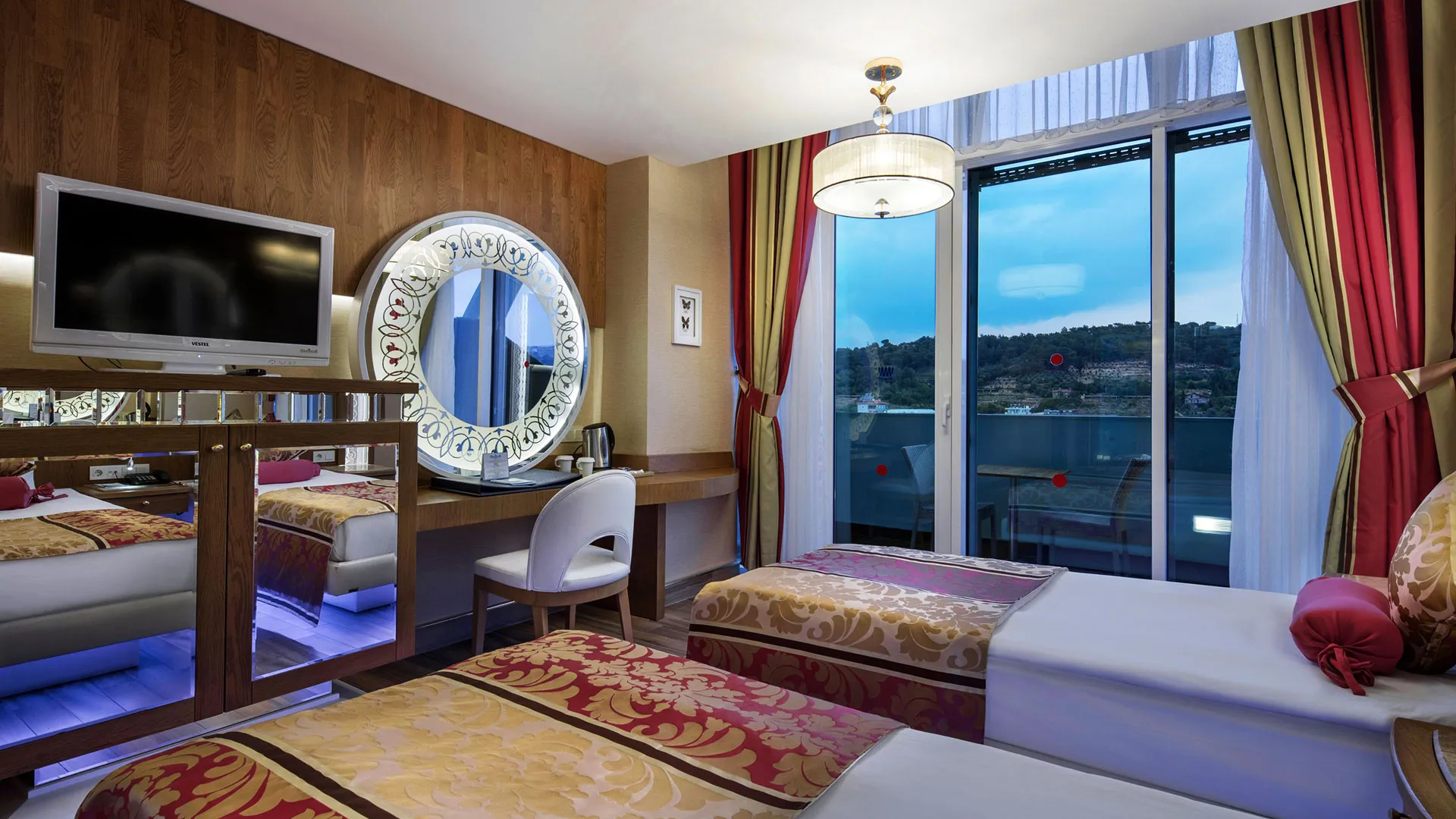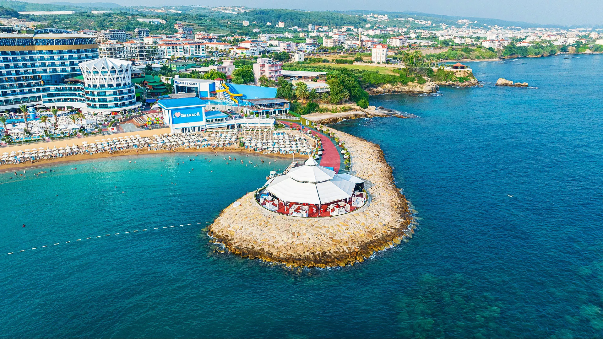 Не пропускайте възможността да посетите водопада Манавгат, разположен само на 30 километра от хотела, или да се отправите към центъра на град Алания, което е само на 30 минути с кола. Летището на Анталия е на удобно разстояние от два часа с кола.