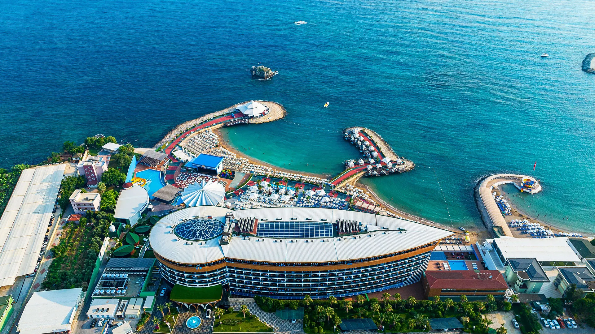 В ресторанта на Granada Luxury Okurcalar може да се насладите на богат избор от турска и интернационална кухня, докато снек-барът до басейна предлага разнообразие от аламинути и леки закуски за всяко настроение.