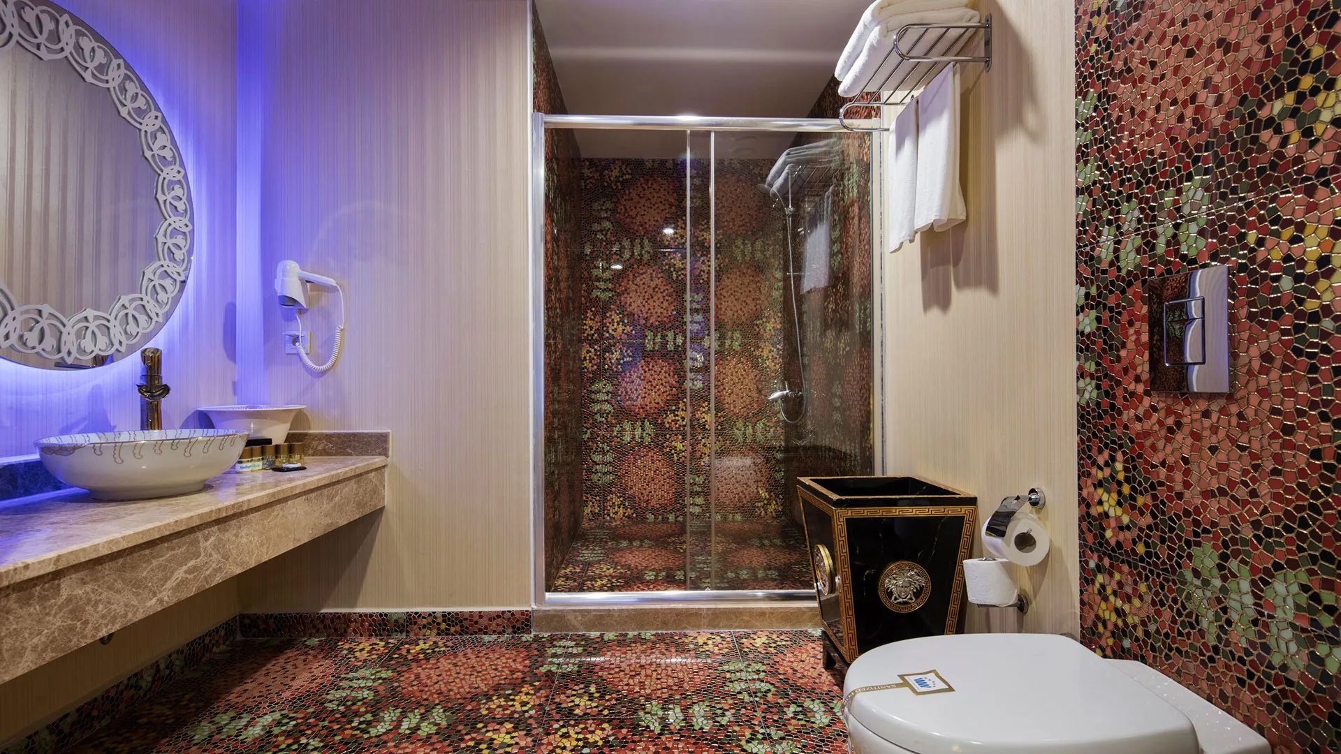 Климатизираните стаи са уютни и стилно обзаведени, като всяка от тях е оборудвана със сателитна телевизия за разнообразие от програми и минибар за ваше удобство. За допълнително удоволствие, хотелът предлага развлекателни шоу програми и танцови изпълнения за незабравими моменти.