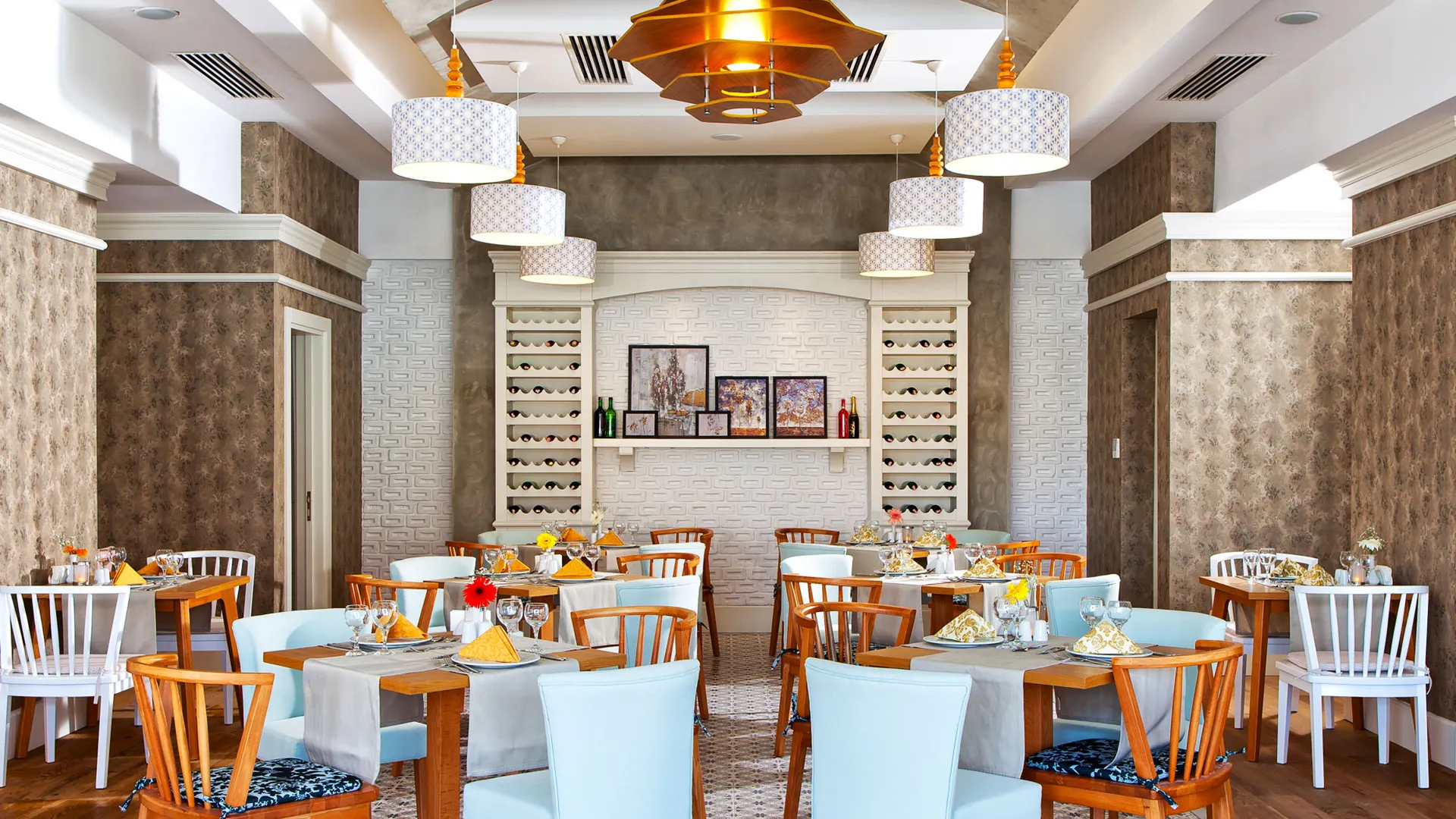 Храната е важна част от престоя, затова в хотела се сервират закуска, обяд и вечеря на шведска маса с разнообразни турски и международни ястия. През целия ден се предлагат различни питиета, сладолед, кафе и сладкиши, а в а ла карт ресторантите можете да опитате риба, китайска или италианска кухня, както и ястия на барбекю.