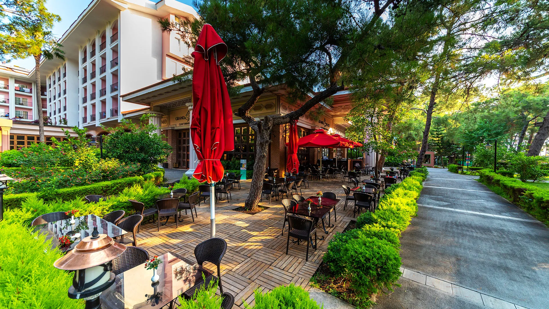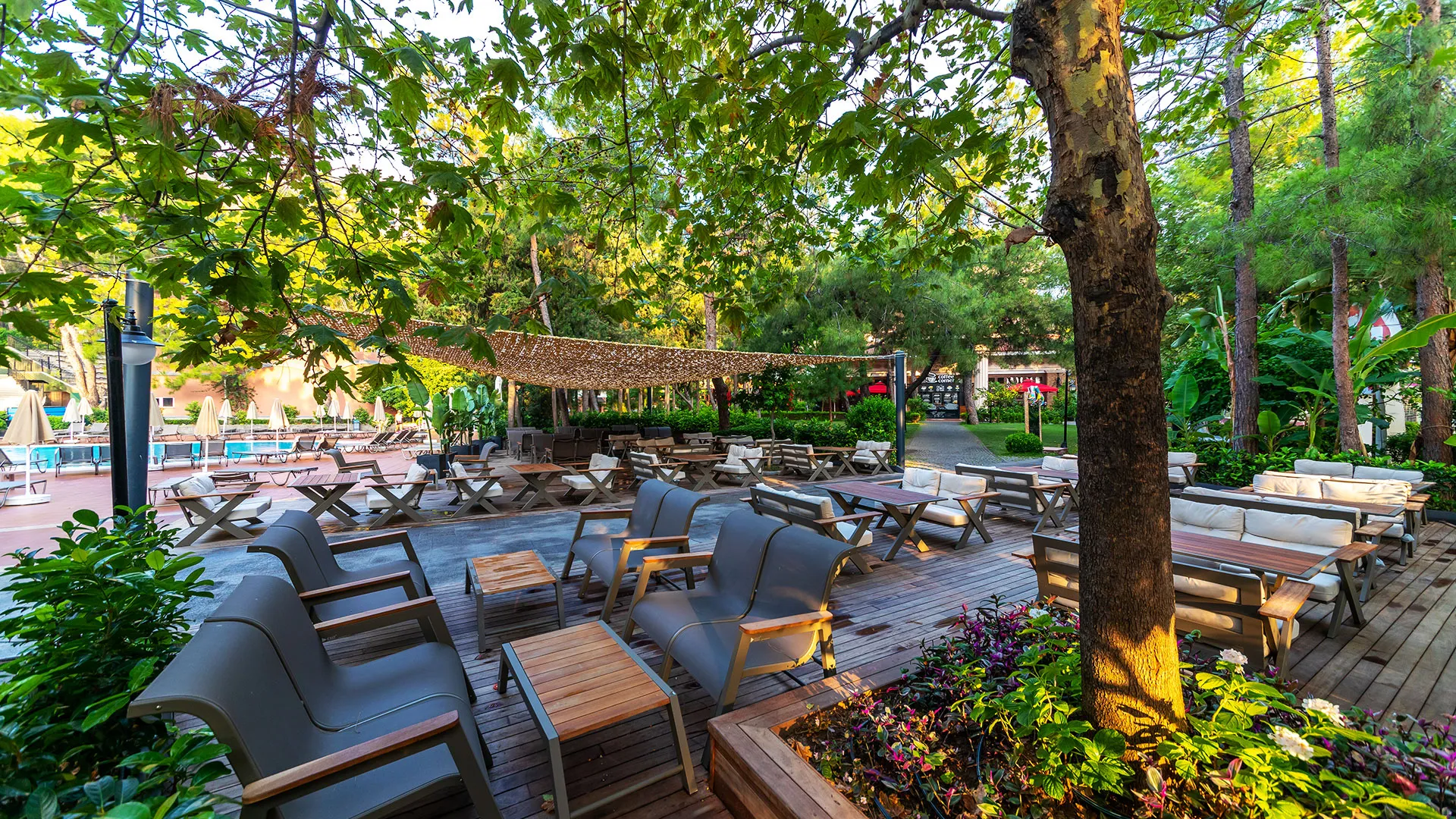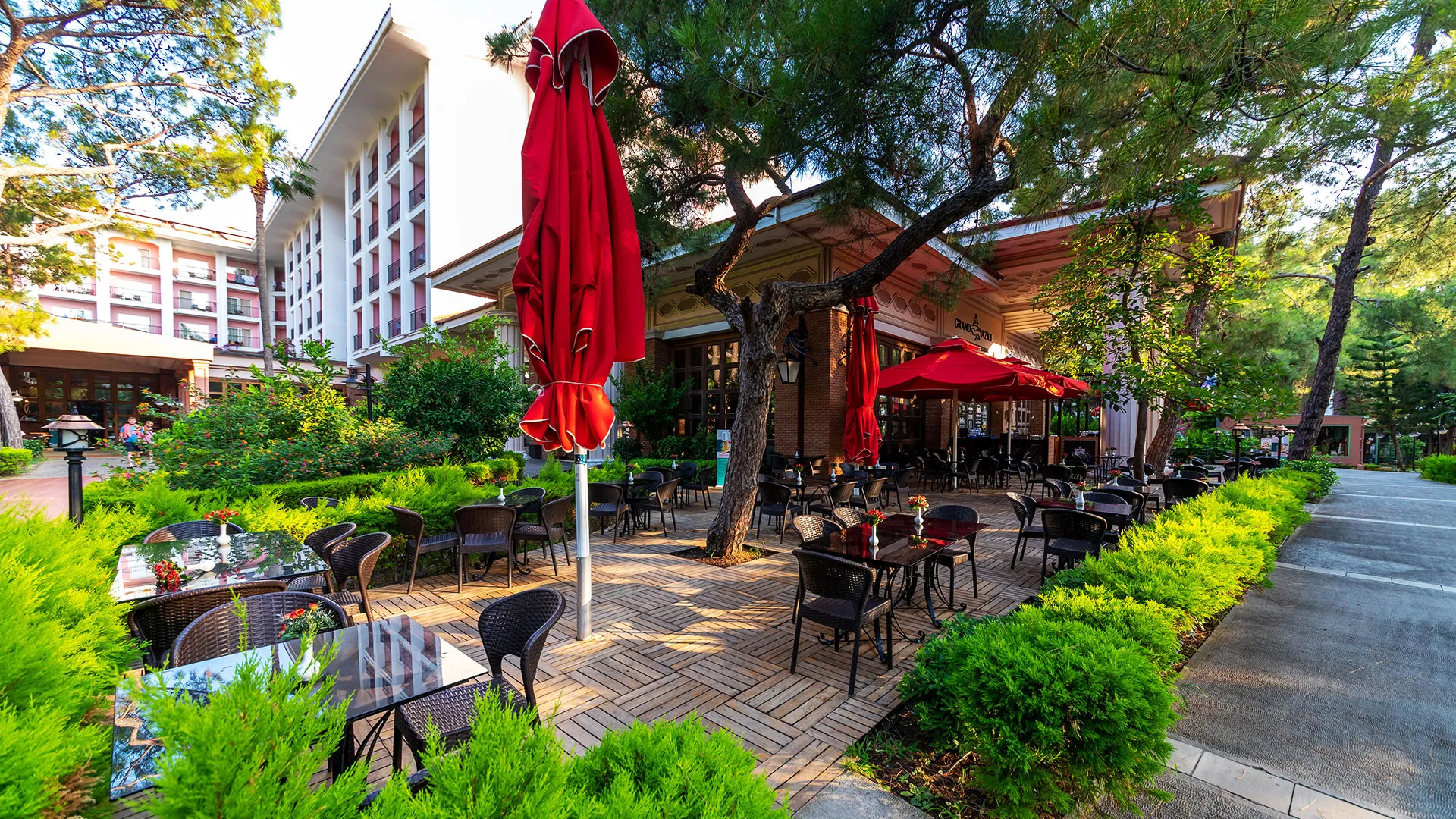 Ресторантите на хотела предлагат разнообразни кухни, включително турска, италианска и морска храна. Храната се сервира на шведска маса в основния ресторант, а гостите могат да се насладят на ястията си в открития ресторант с изглед към морето. Хотелът разполага с още четири бара и кафенета, където гостите могат да се насладят на различни напитки.